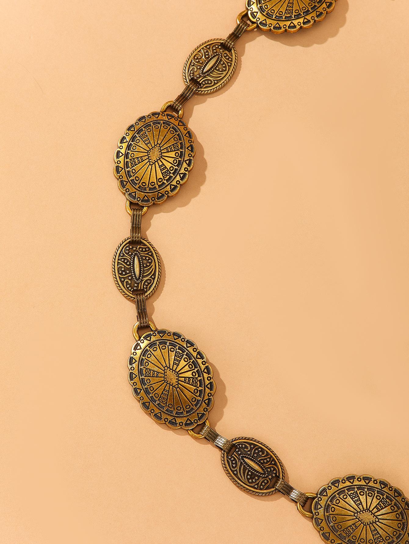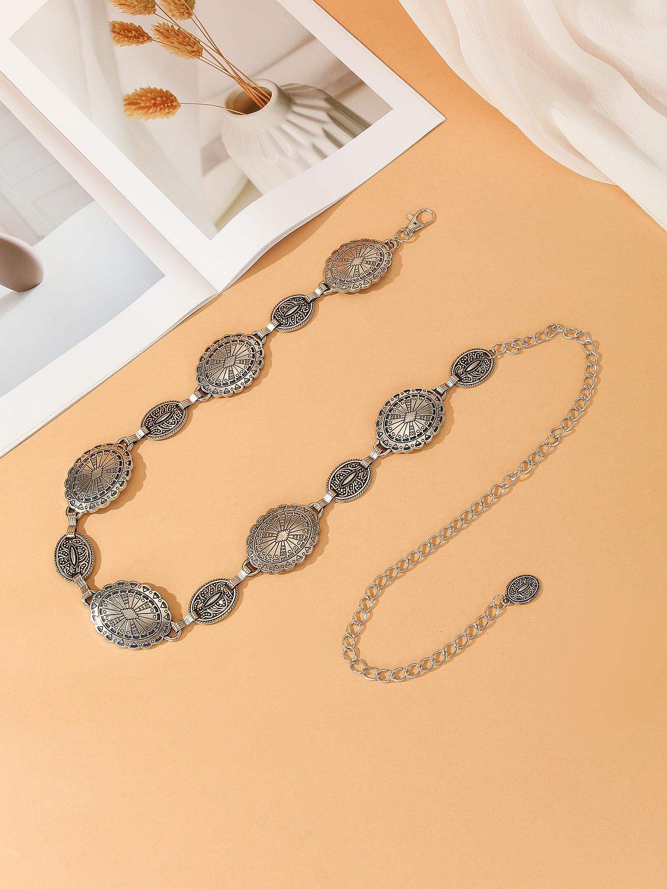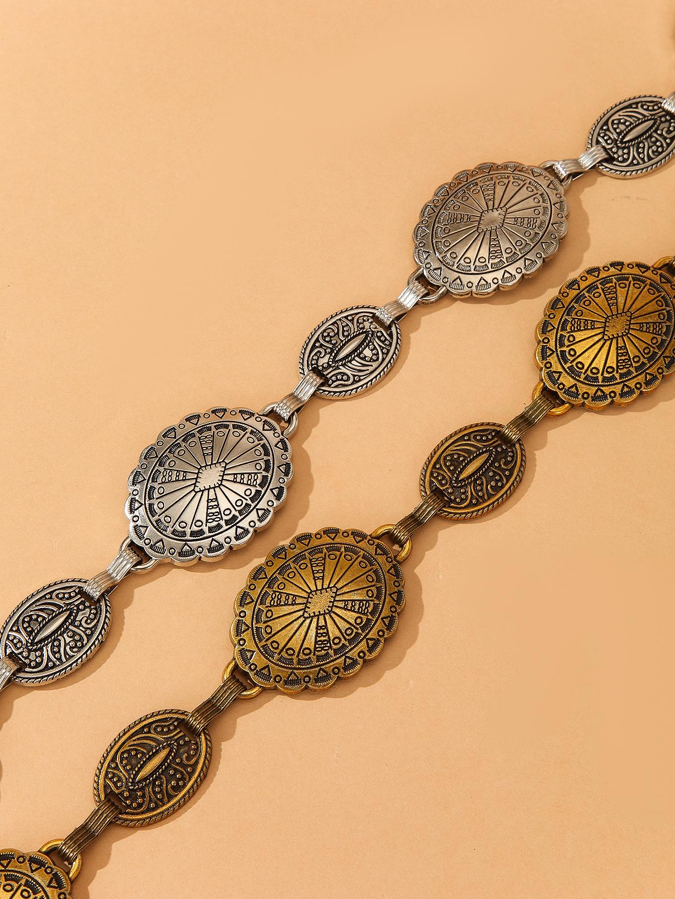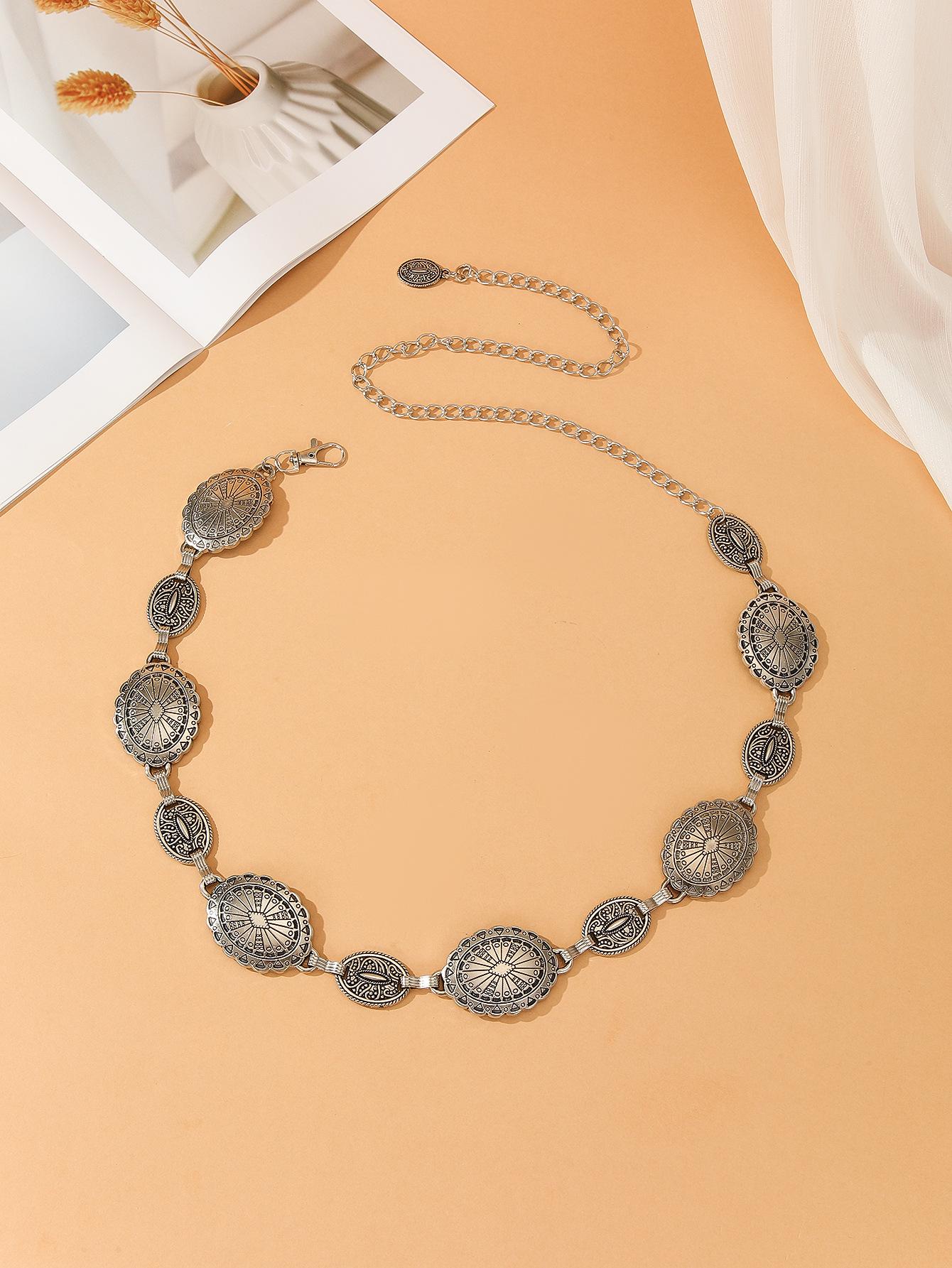 Cinturón de metal estilo retro con cadena de cintura de estilo europeo y americano, popular y étnico, ideal para combinar con vestidos decorativos.