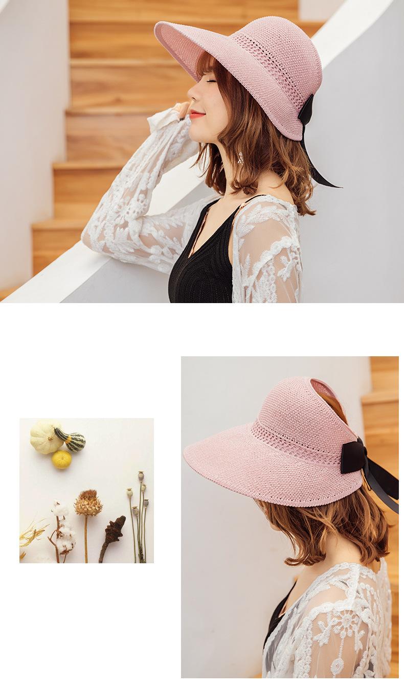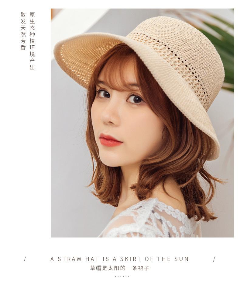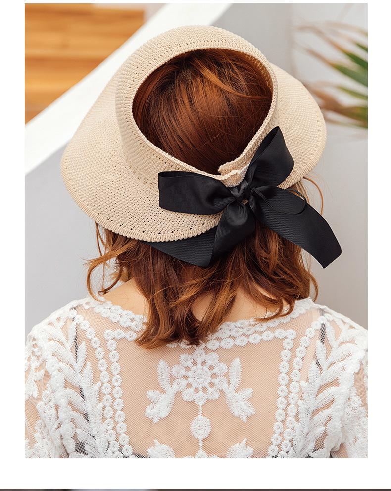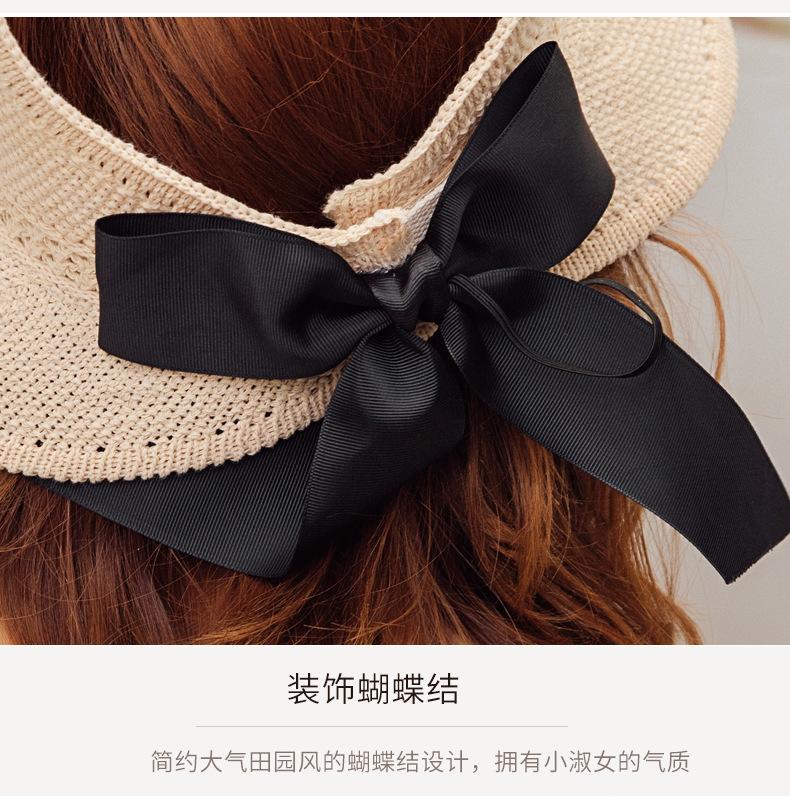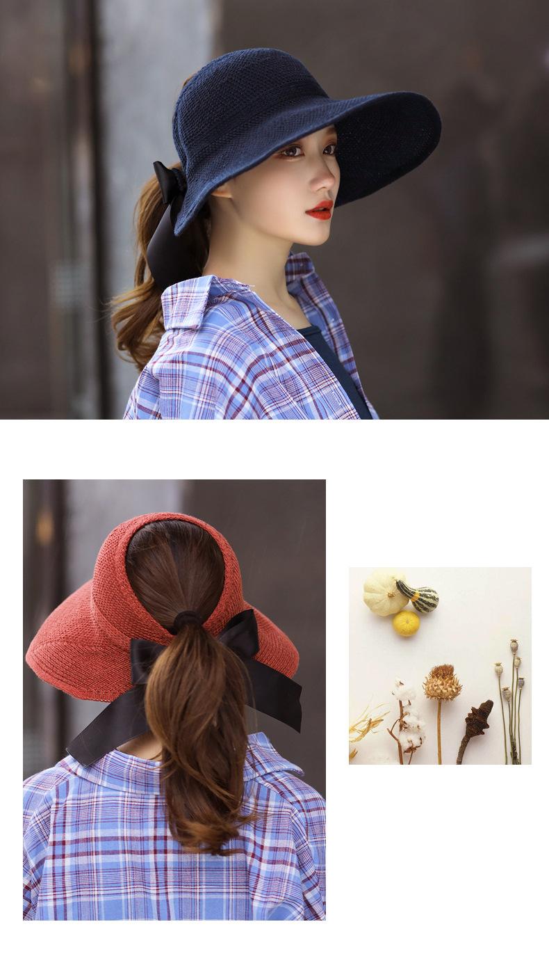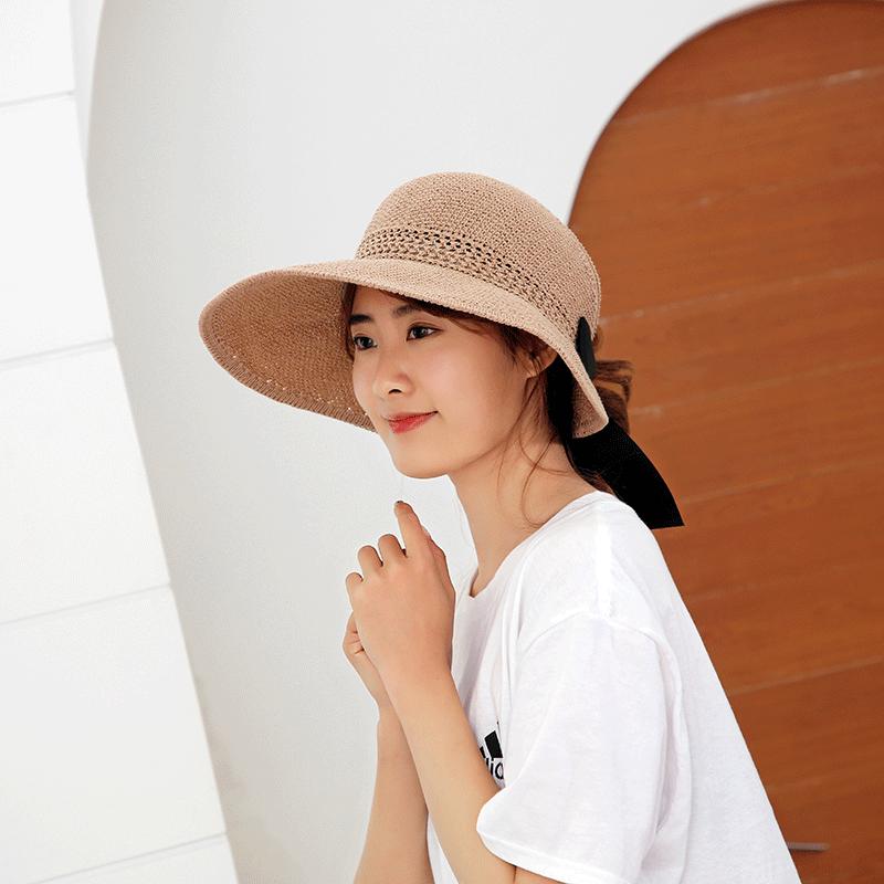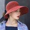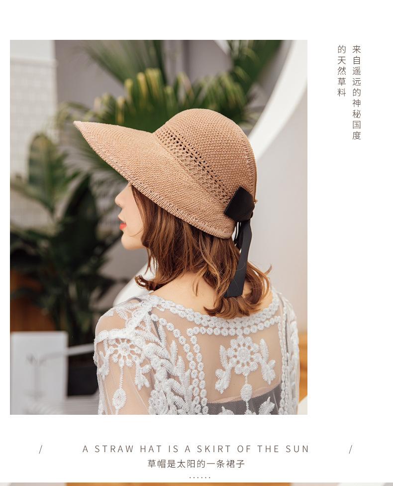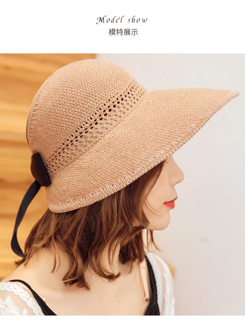 Sombrero de Paja Plegable de Verano de Gran Venta Estilo Coreano Protección Solar para Exteriores Sombrero de Copa Vacío Sombrero de Sol de Verano para Mujer Estilo Coreano con Lazo