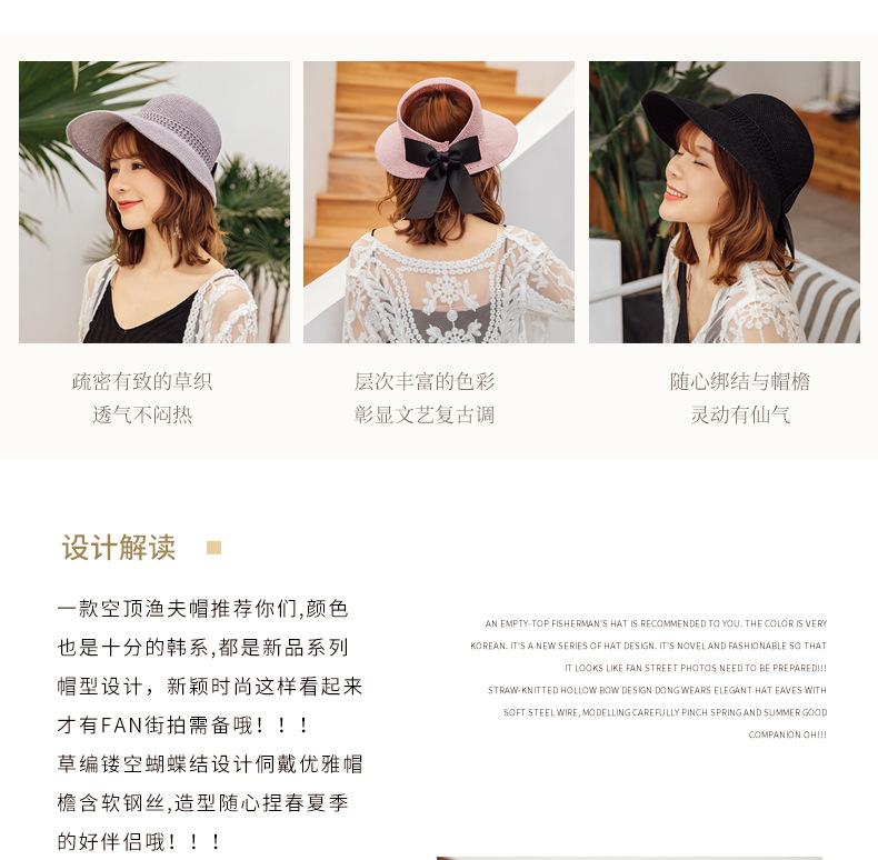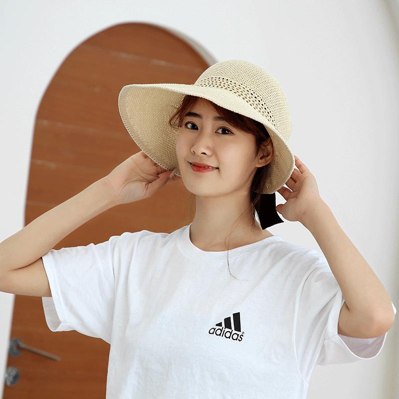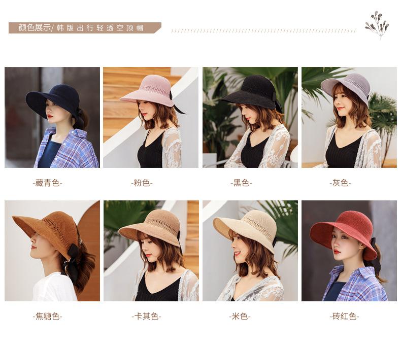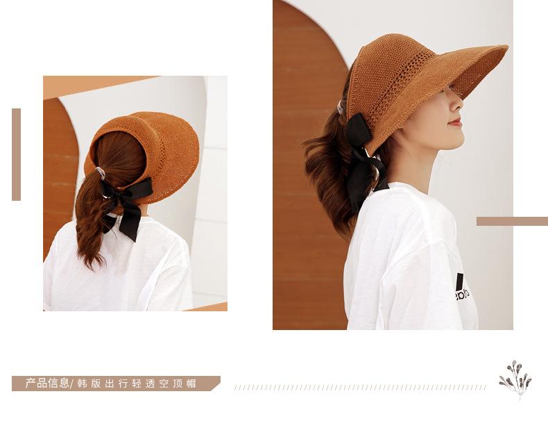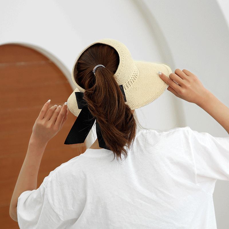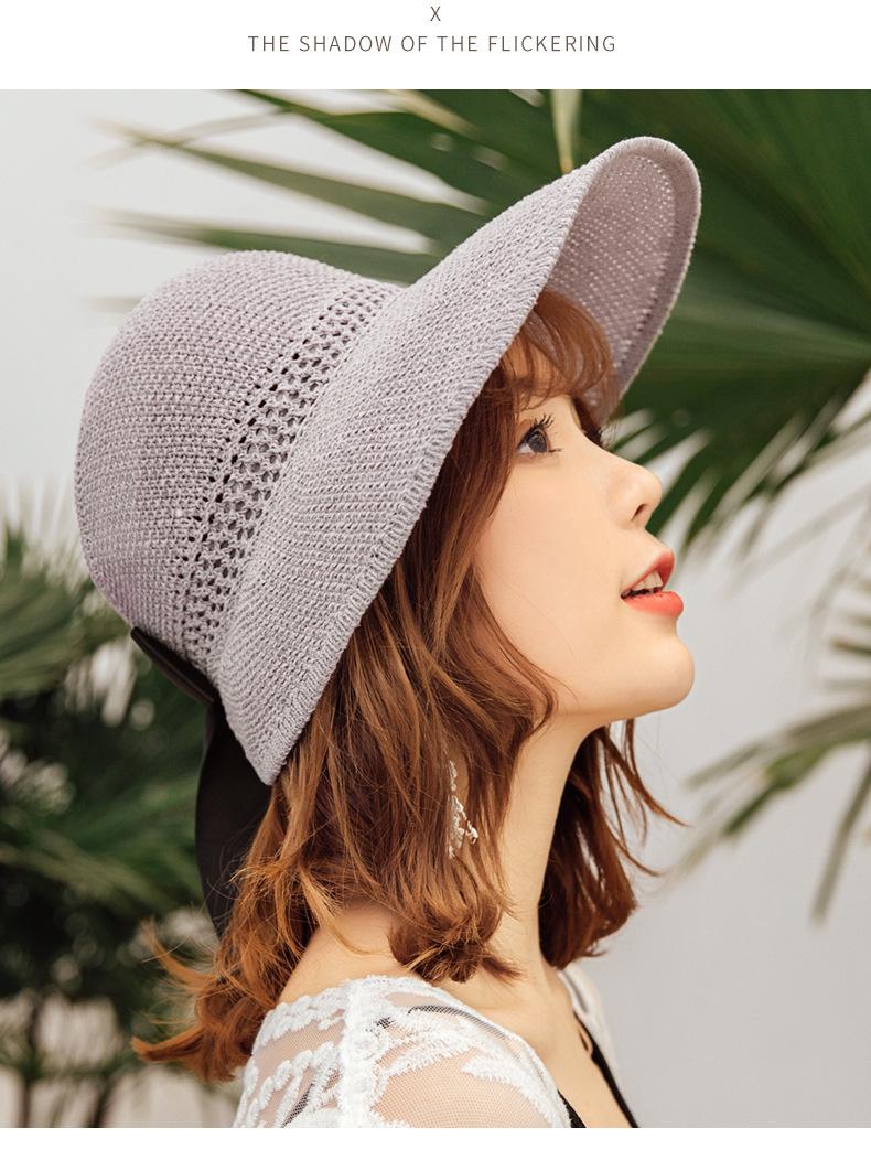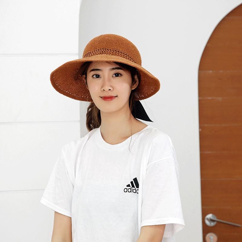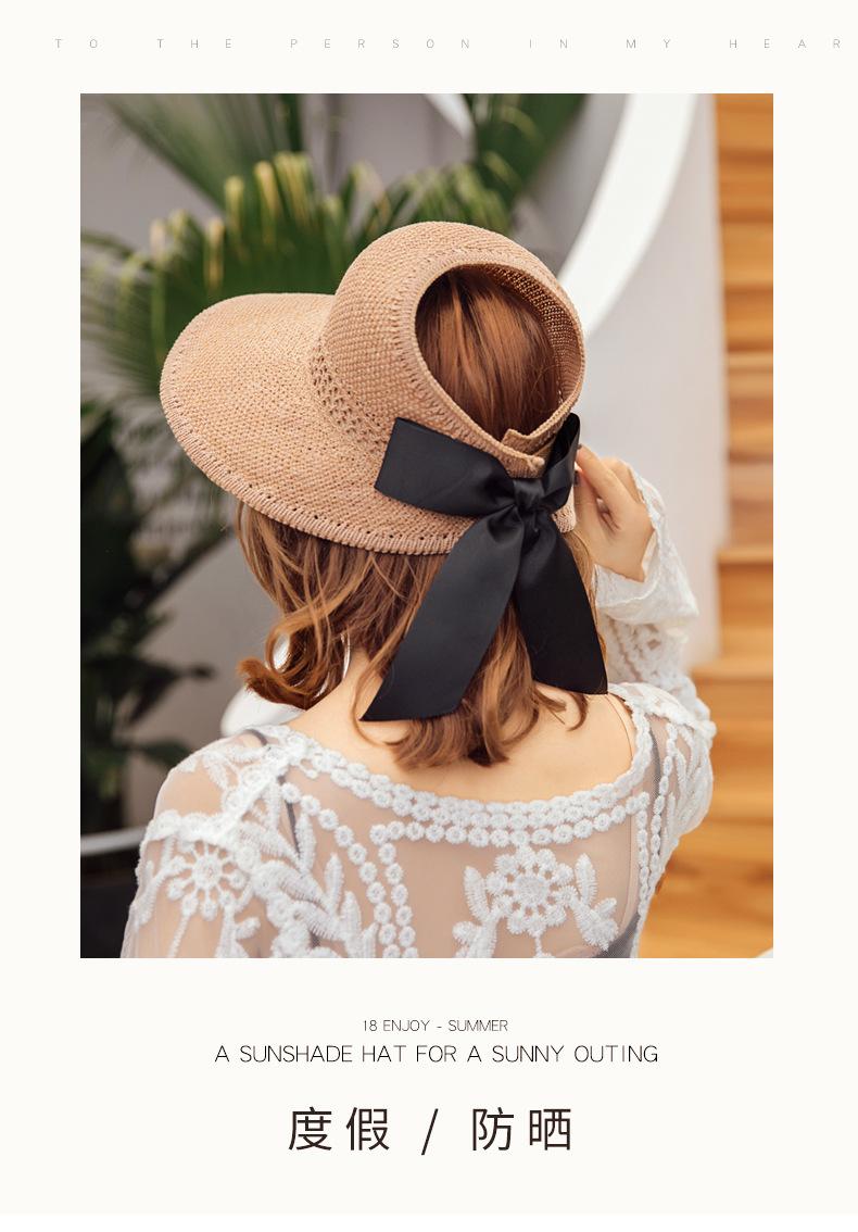 Sombrero de Paja Plegable de Verano de Gran Venta Estilo Coreano Protección Solar para Exteriores Sombrero de Copa Vacío Sombrero de Sol de Verano para Mujer Estilo Coreano con Lazo