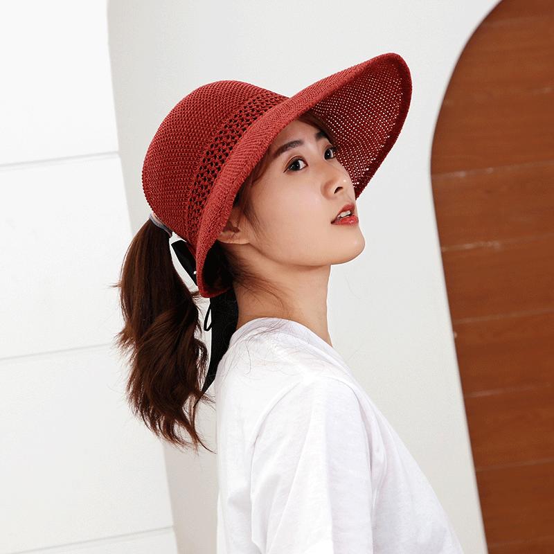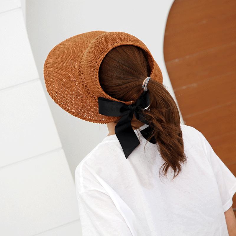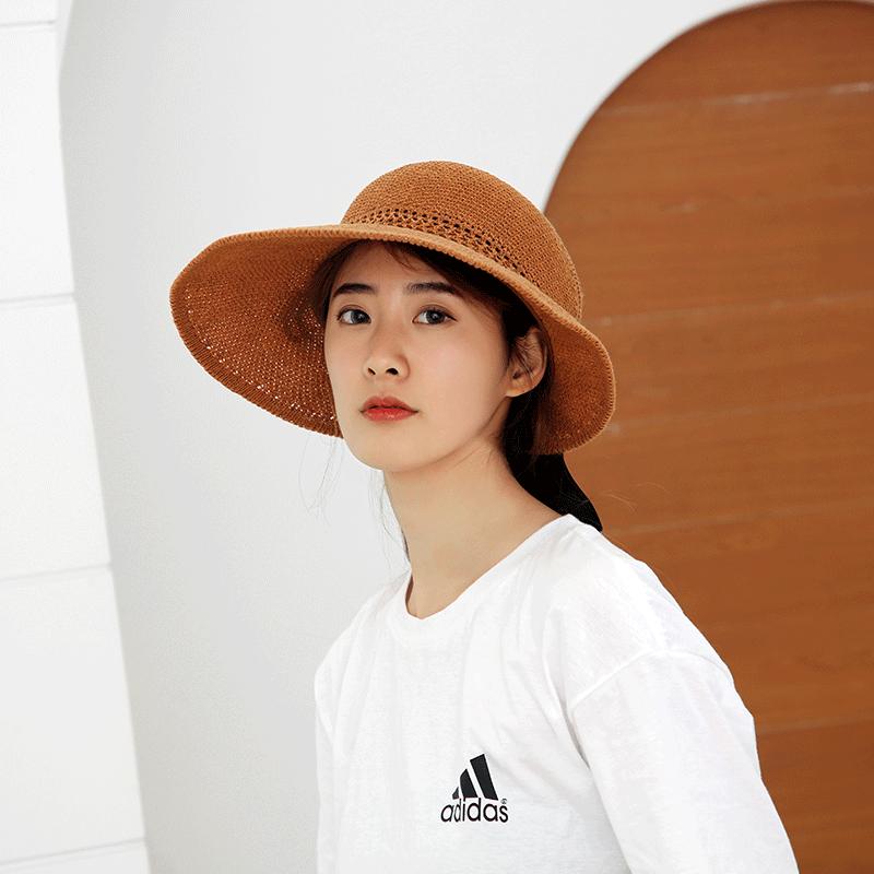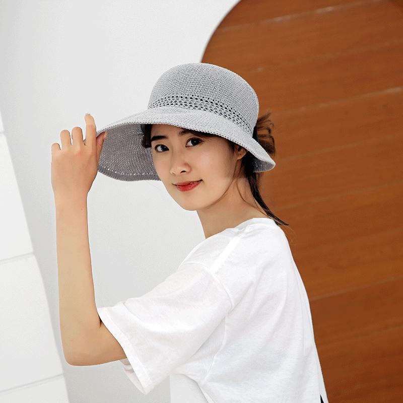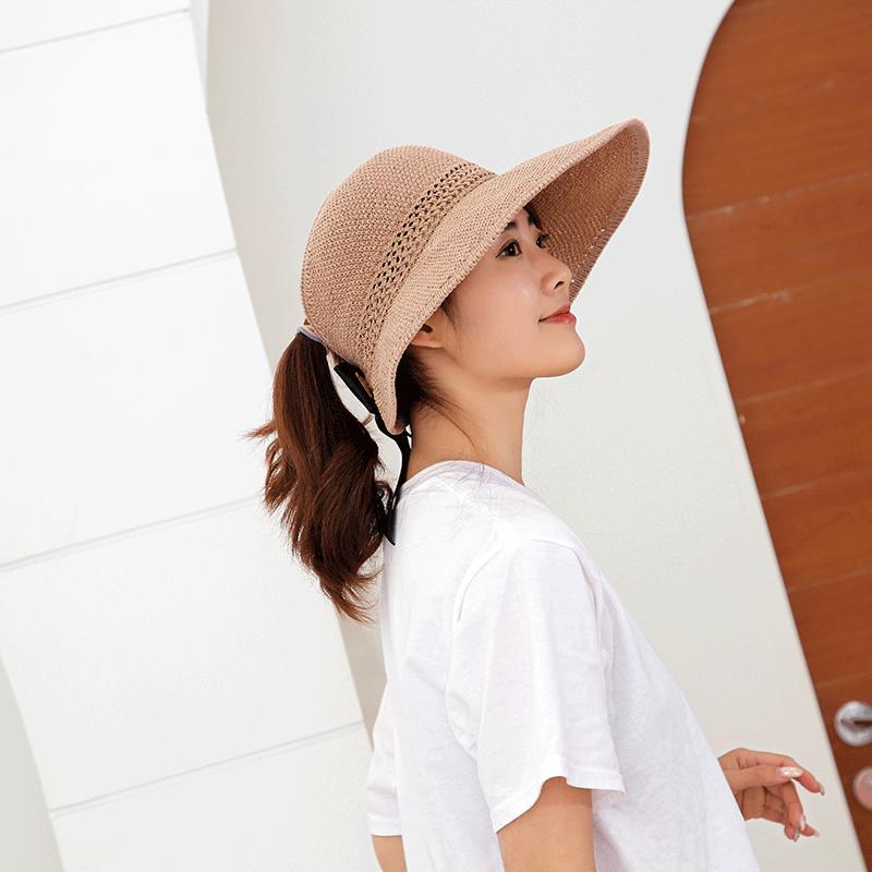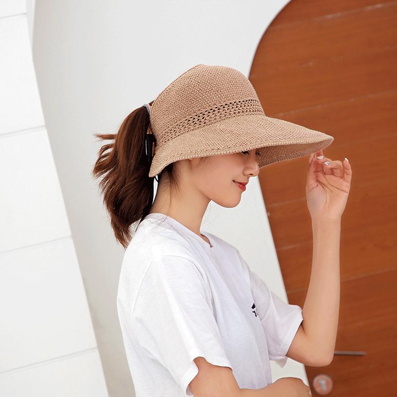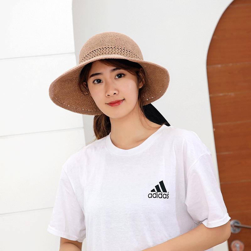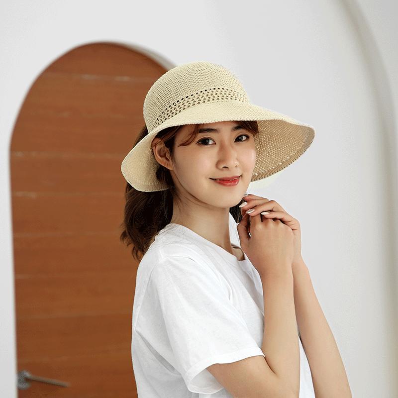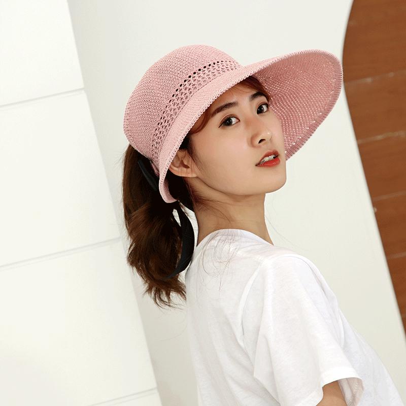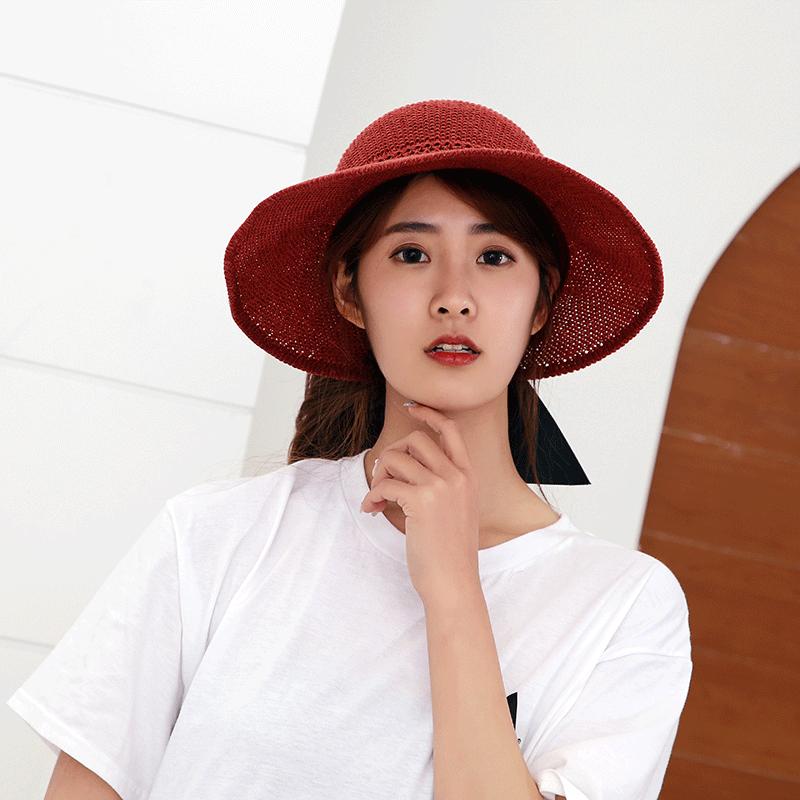 Sombrero de Paja Plegable de Verano de Gran Venta Estilo Coreano Protección Solar para Exteriores Sombrero de Copa Vacío Sombrero de Sol de Verano para Mujer Estilo Coreano con Lazo