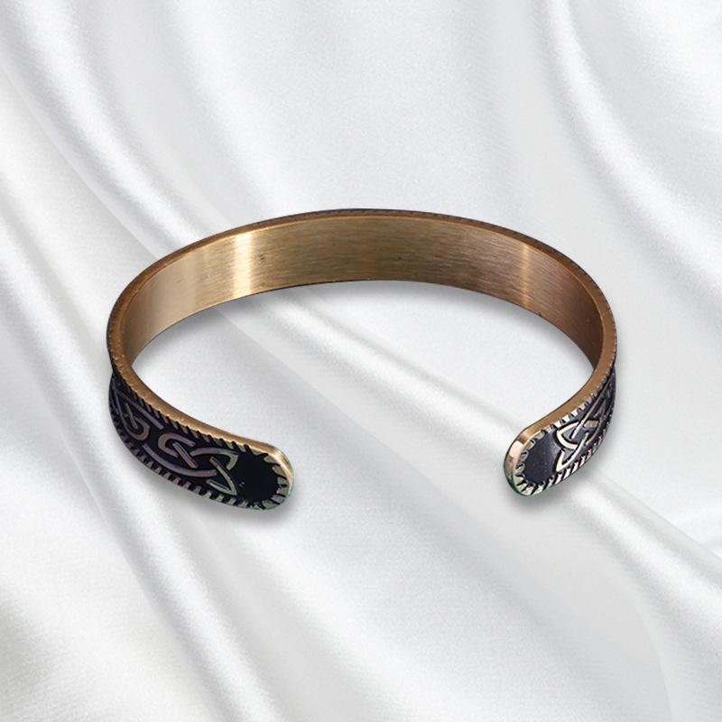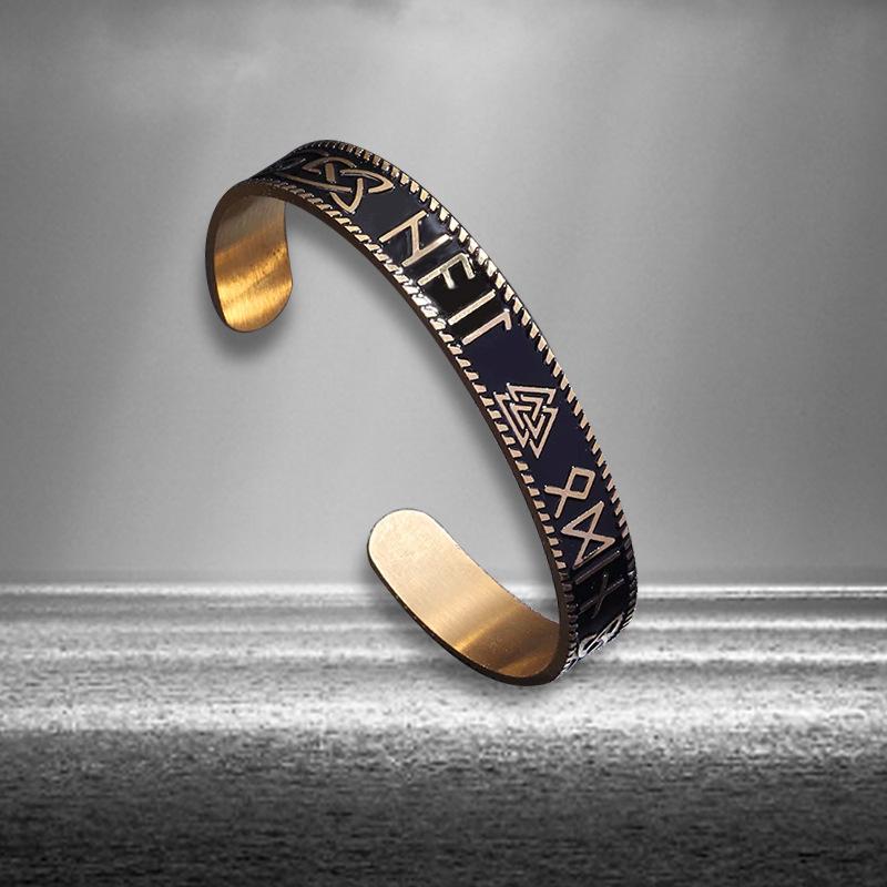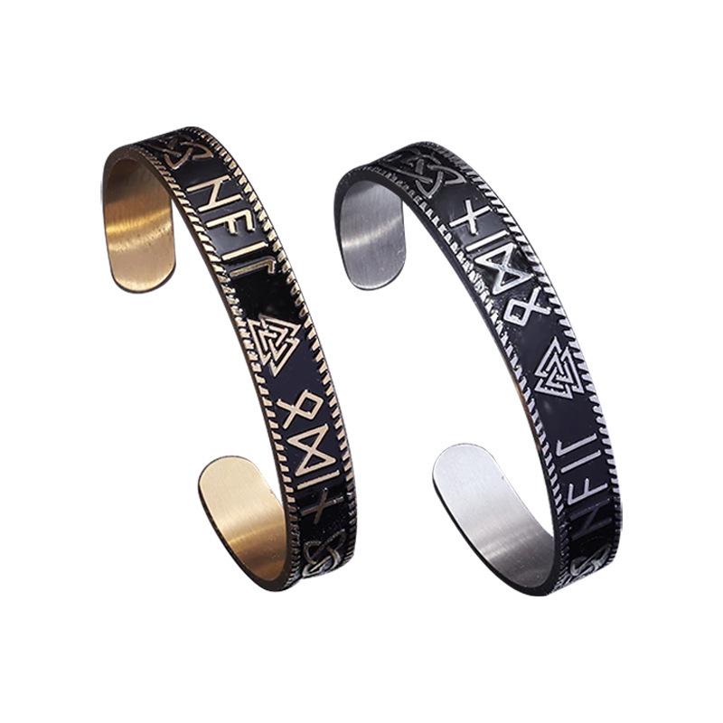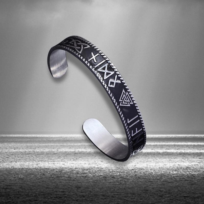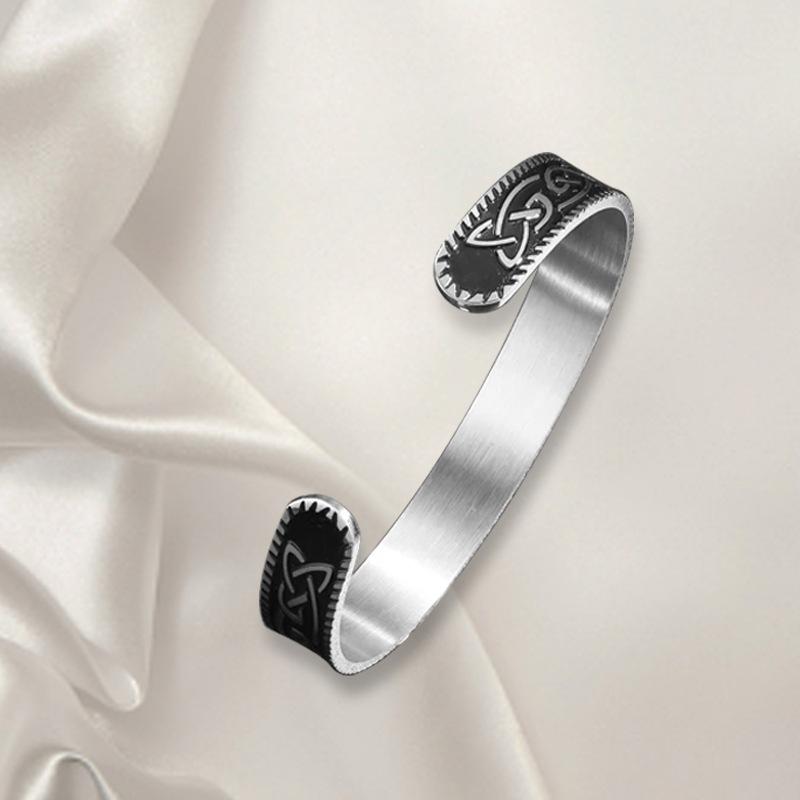 Pulsera Abierta para Hombre Retro de Acero Inoxidable Vikingo Runas Nudo Triquetra C Acero Titanio Venta Directa de Fábrica