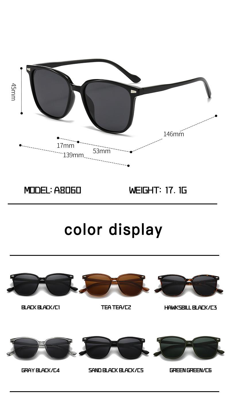 Caja de Moda Metal Arroz Uña Gafas de Sol Polarizadas para Mujer Sentido de Alta Gama Ins Gafas de Sol Anti-UV para Hombre Estilo Coreano A8060