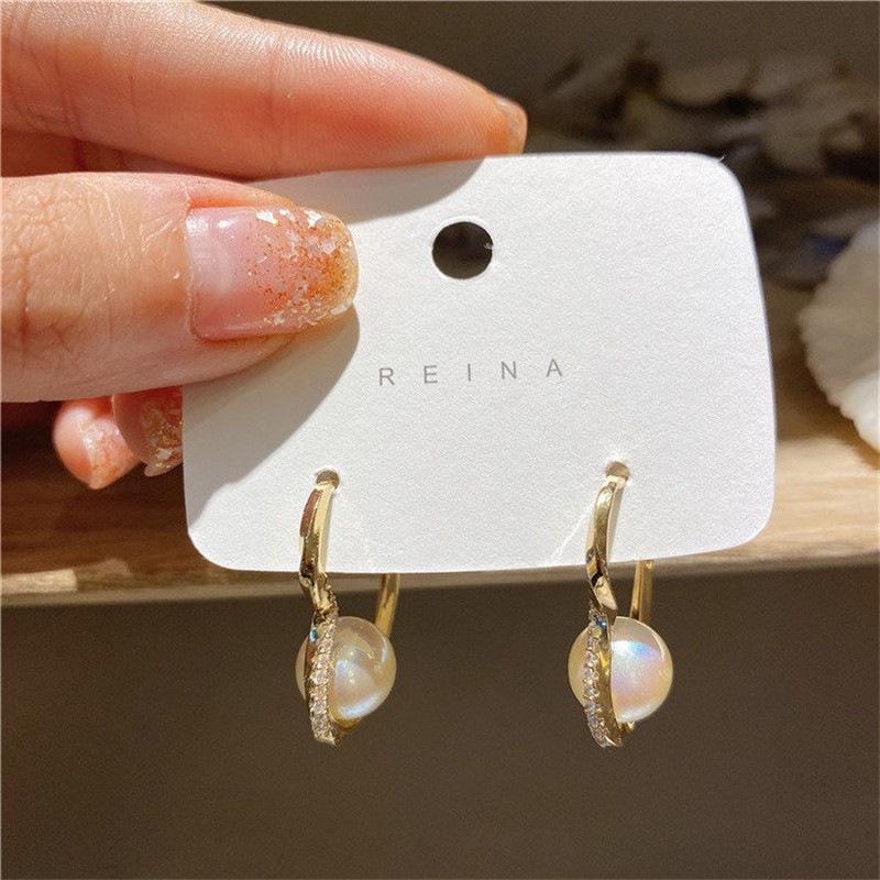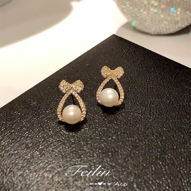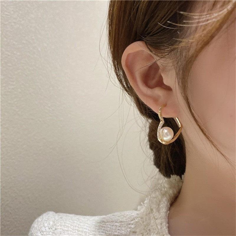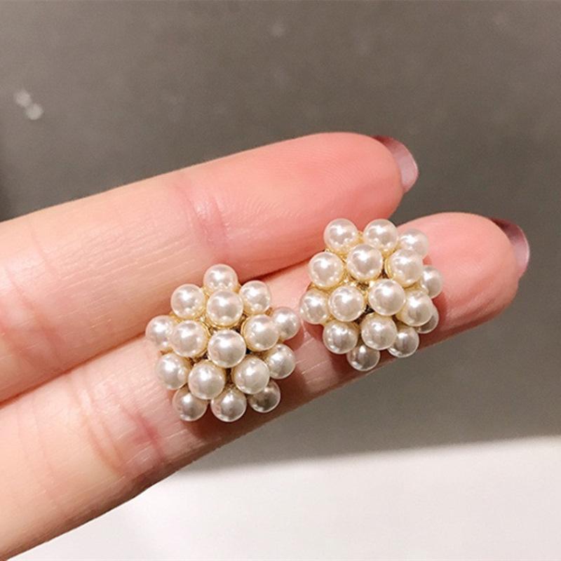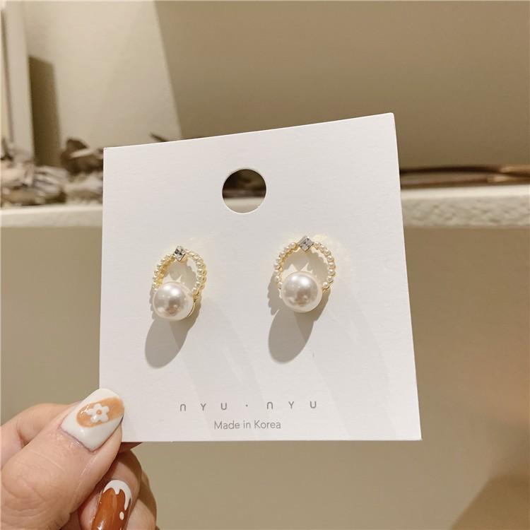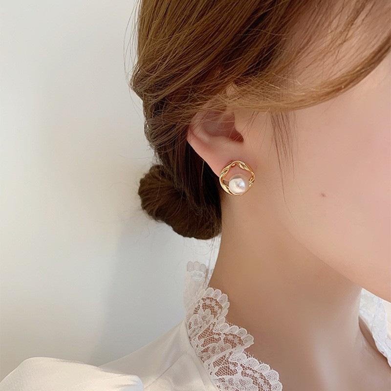 Pendientes de perlas con diseño de nicho de aguja de plata s925 de Dongdaemun, de Corea del Sur, a la moda, sencillos, retro, combinables, ligeros y de lujo.