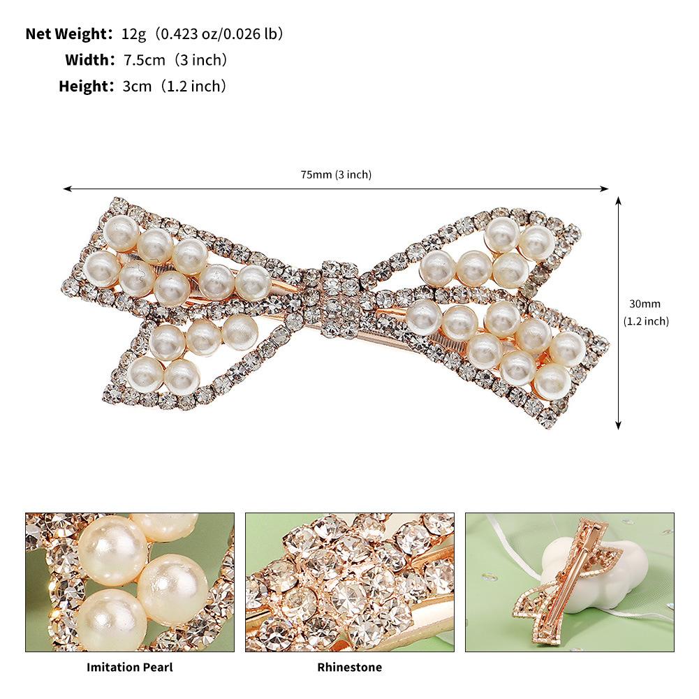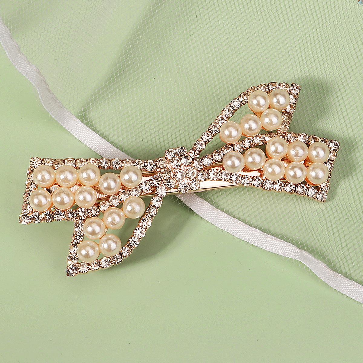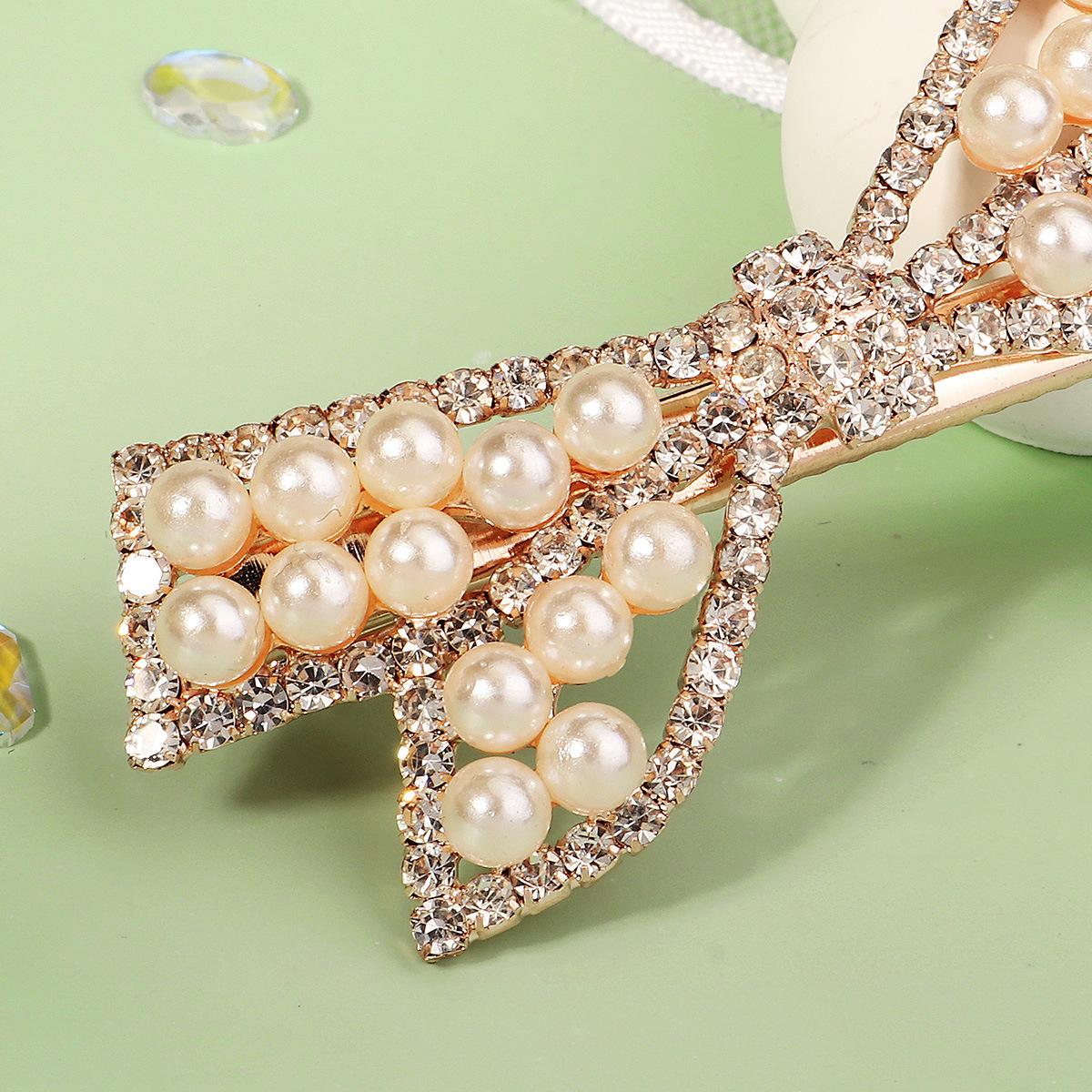 Pinza Coreana Nueva de Metal para el Cabello para Uso Diario Versátil Lazo Flequillo Lateral Dulce con Incrustaciones de Diamantes Perla Pinza de Pico de Pato para Mujer