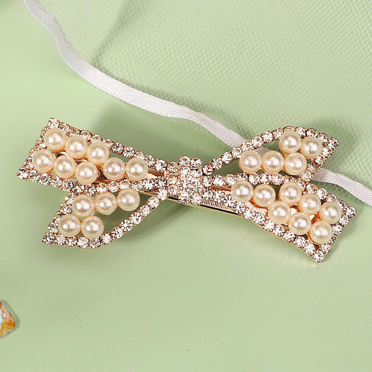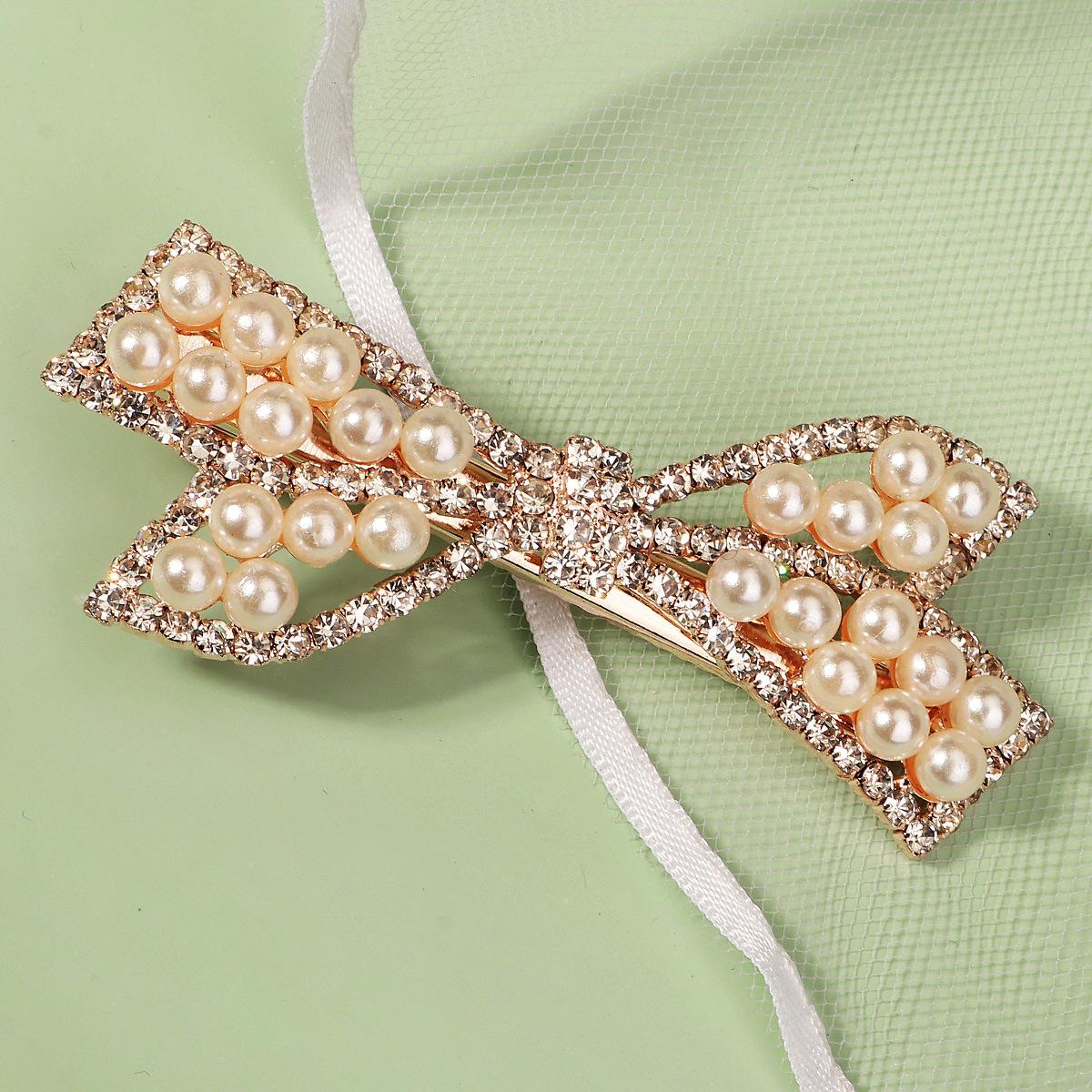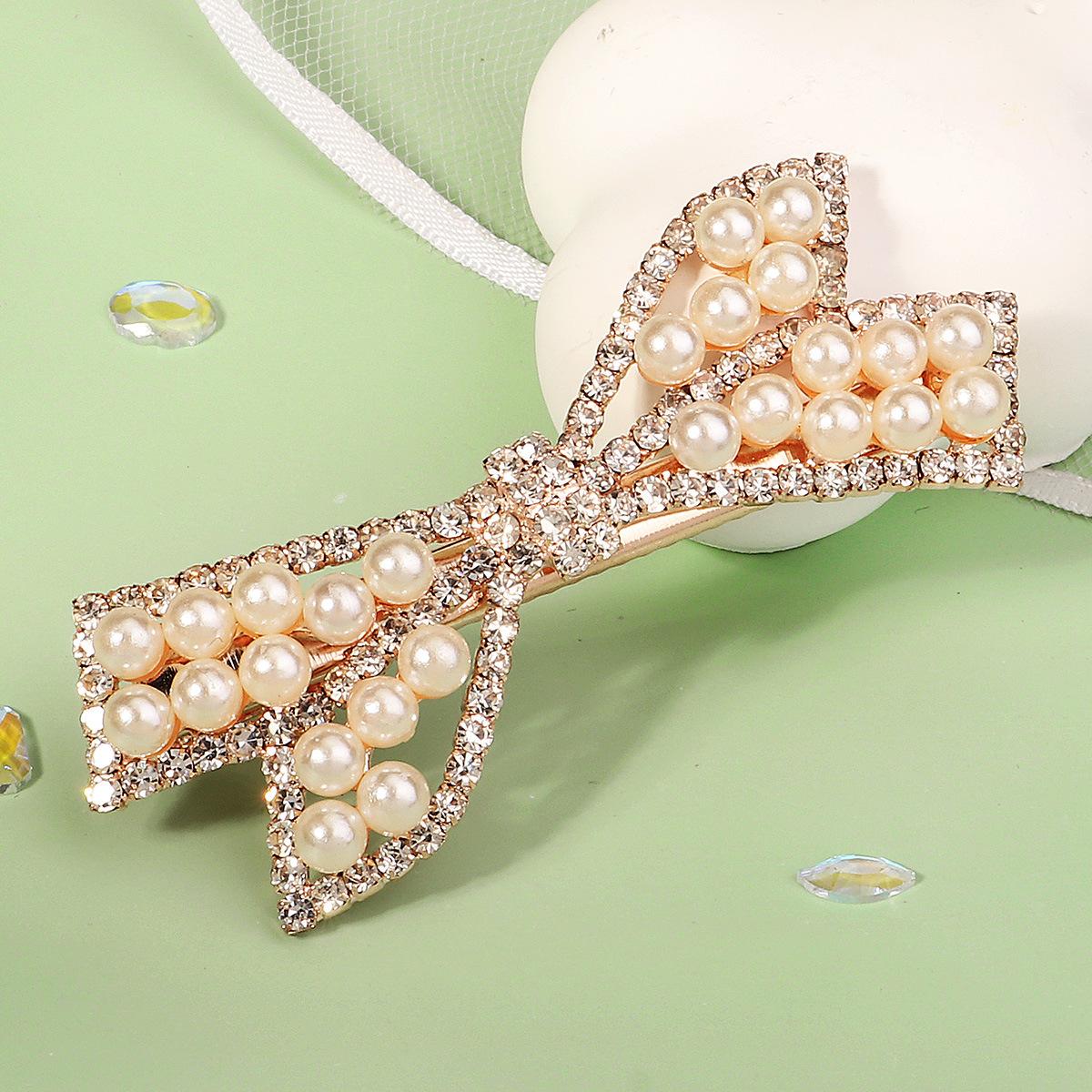 Pinza Coreana Nueva de Metal para el Cabello para Uso Diario Versátil Lazo Flequillo Lateral Dulce con Incrustaciones de Diamantes Perla Pinza de Pico de Pato para Mujer