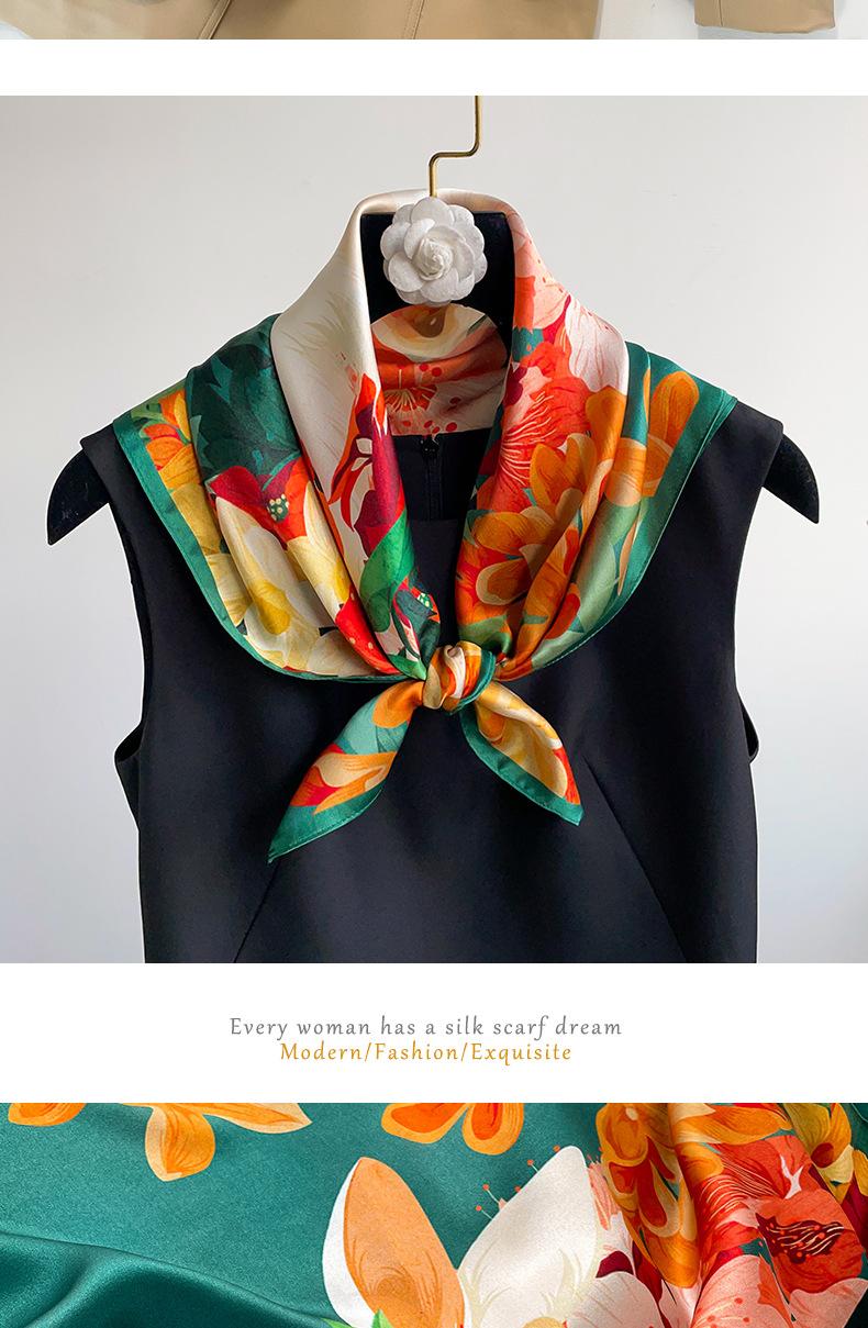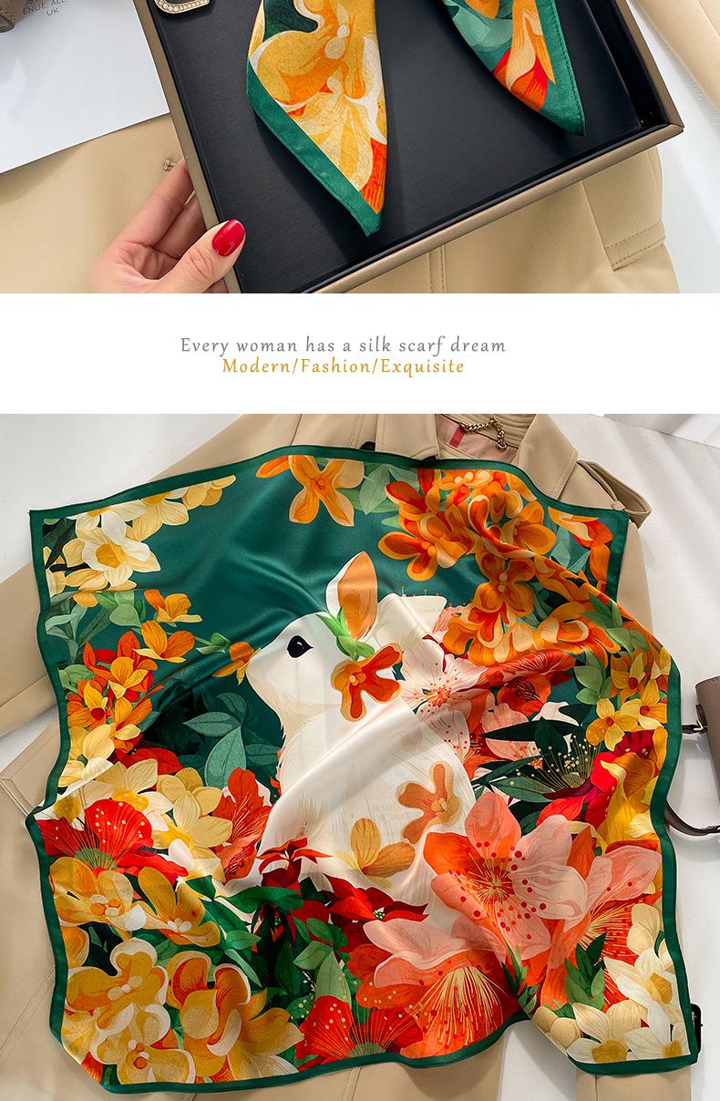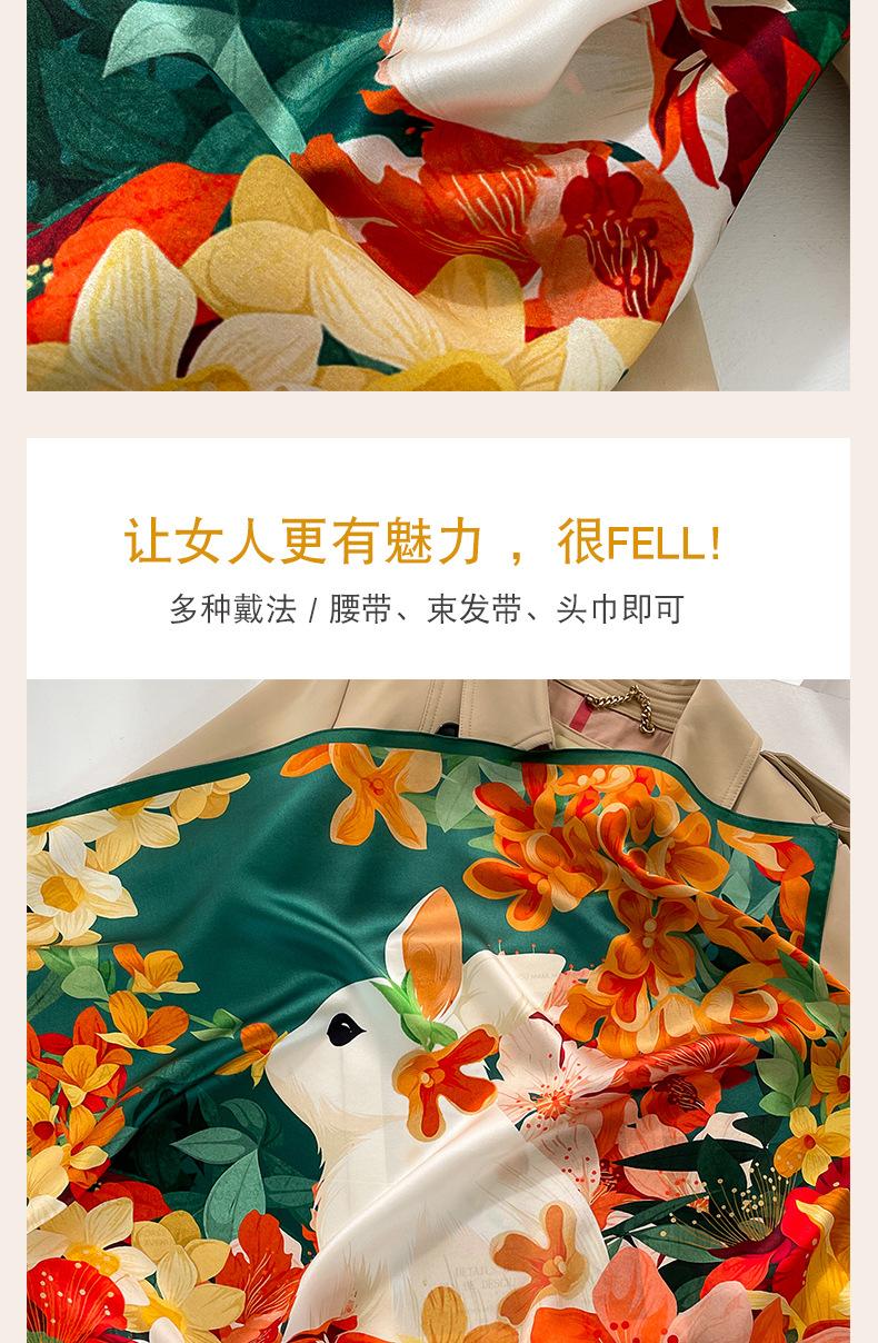Bufanda de Seda Verde Roja para Mujer Bufanda Cuadrada Grande Rojo Chino Madre Primavera y Otoño Estilo Occidental Moda Benmingnian Año del Conejo Chal