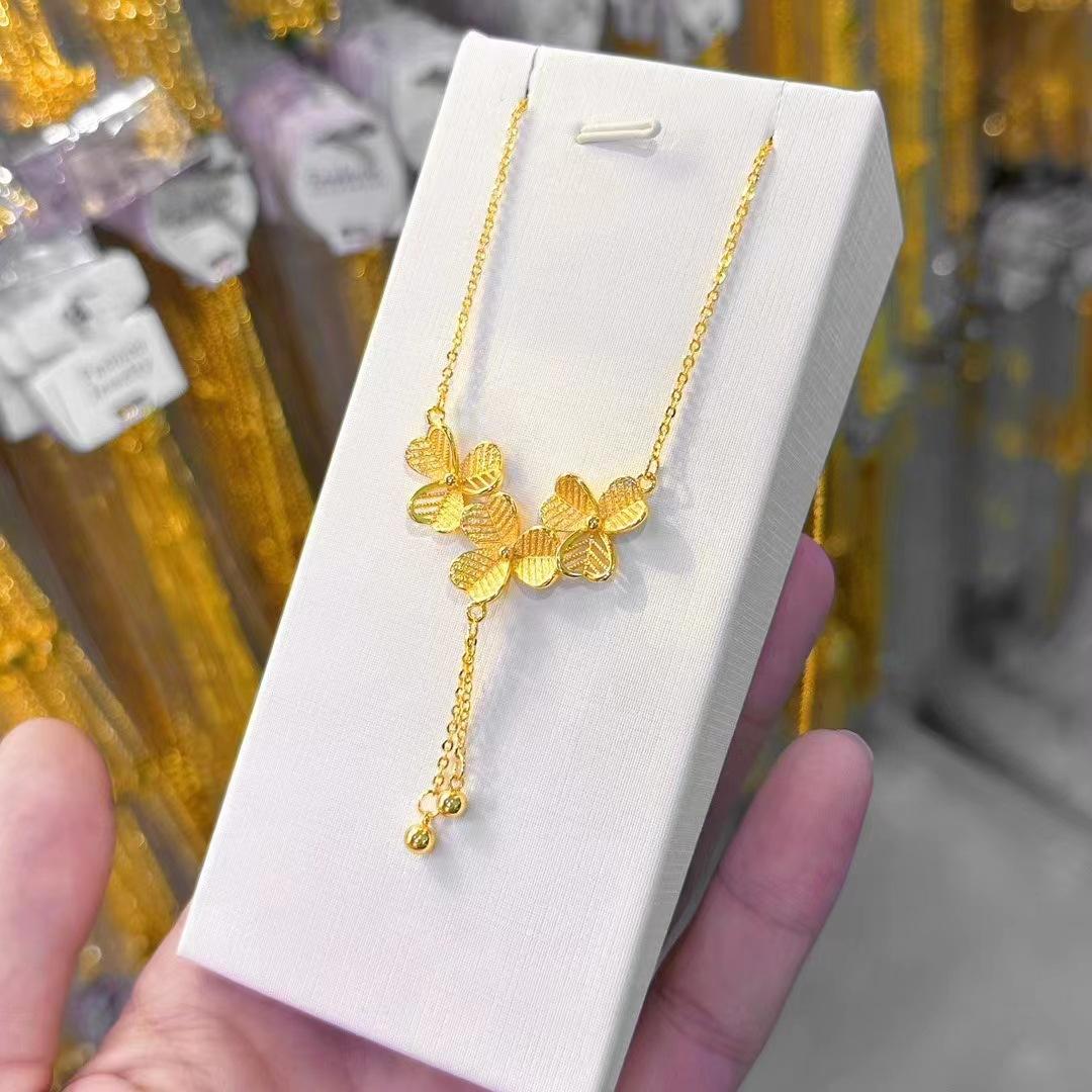 Collar de trébol de oro de Vietnam para mujer, cadena de clavícula de alta calidad, colgante de hierba de tres pétalos, cadena de una pieza, joyería