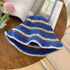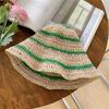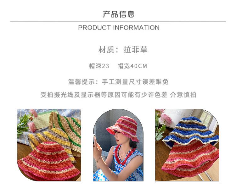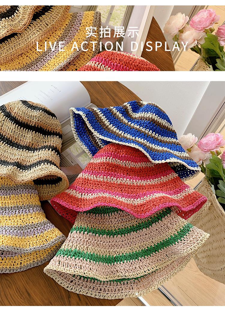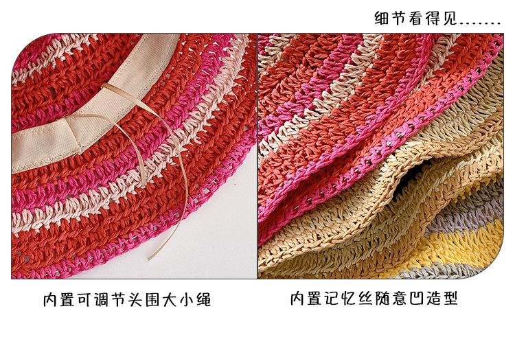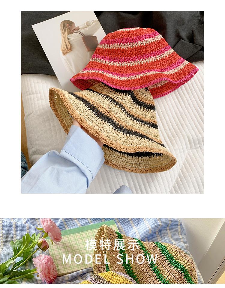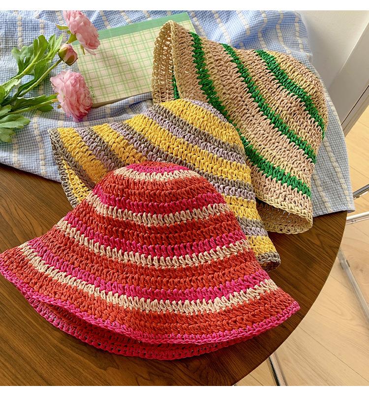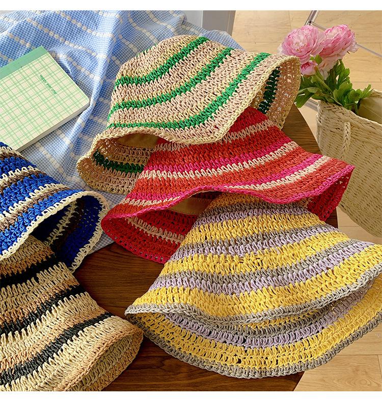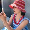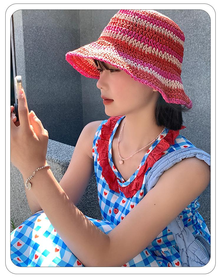 Sombrero de paja tejido rojo japonés para mujer, para verano, viajes, gran alero, sombrilla, protector solar, sombrero de pescador, sombrero de lavabo a rayas