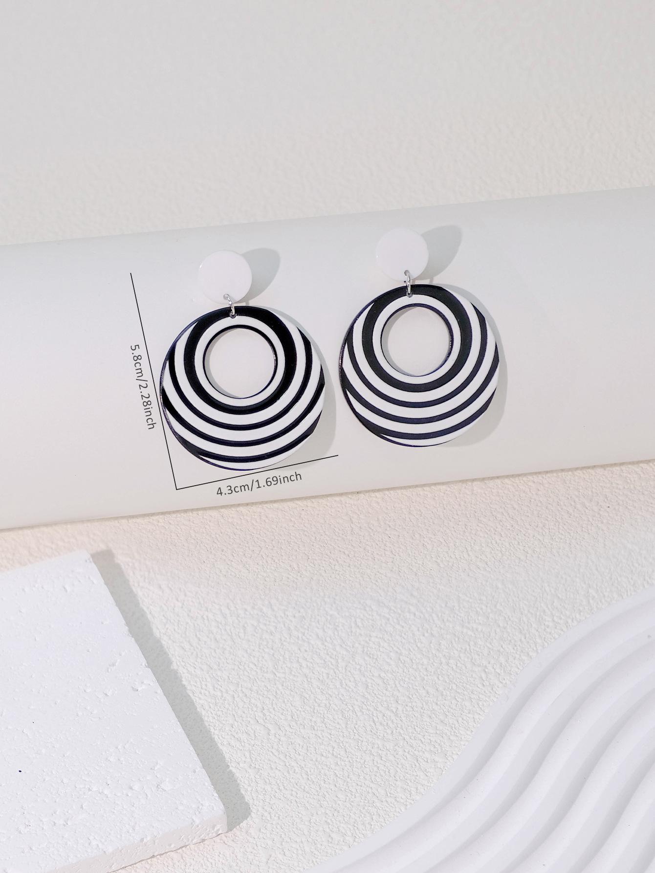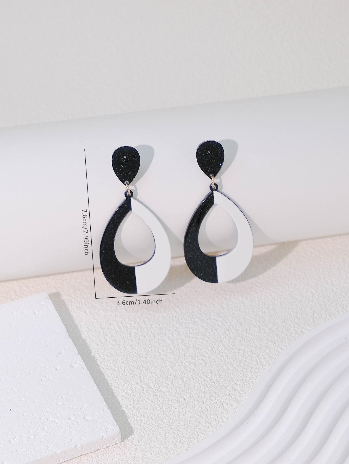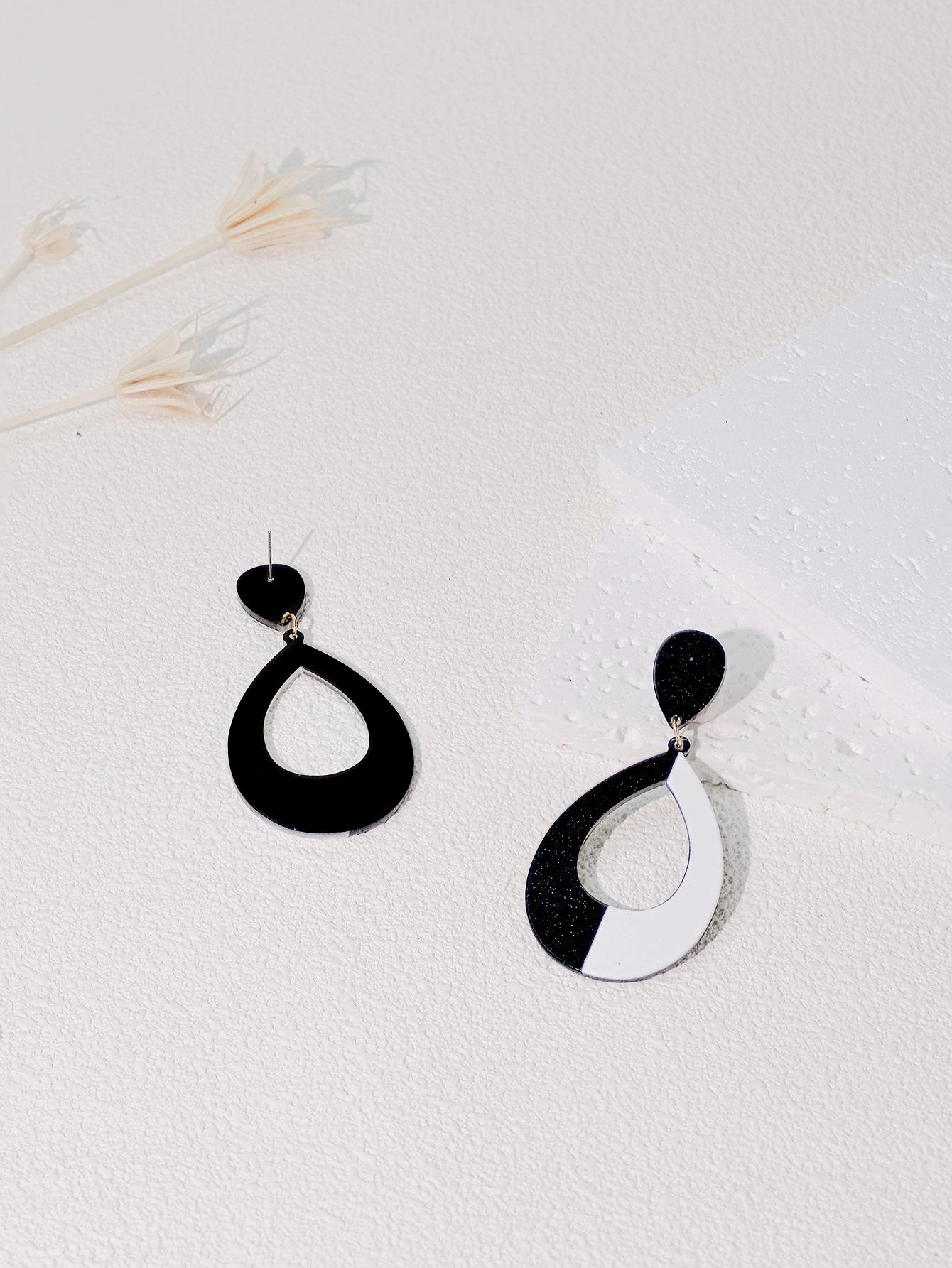Pendientes geométricos de acrílico con diseño creativo europeo y americano en blanco y negro a juego.