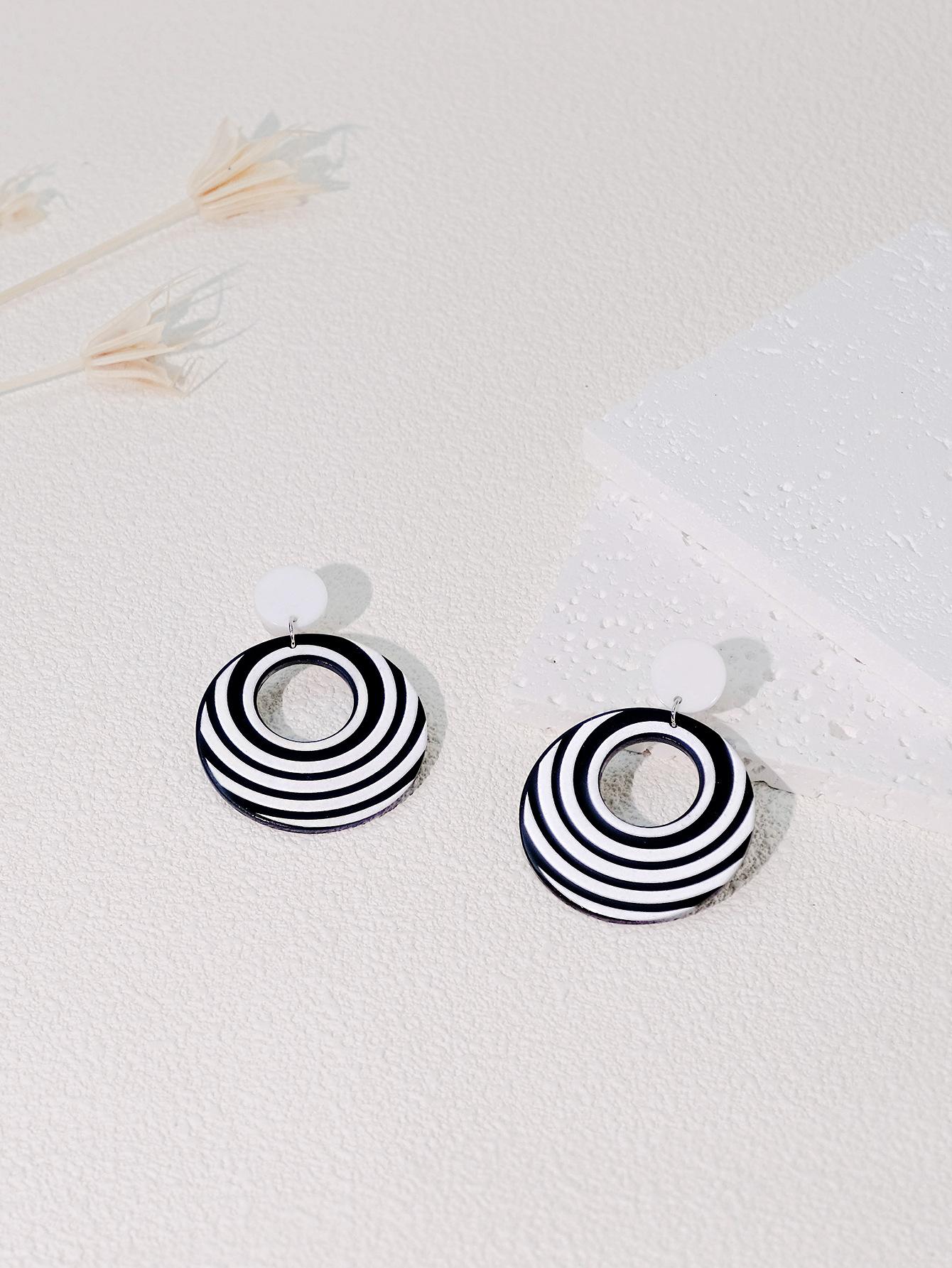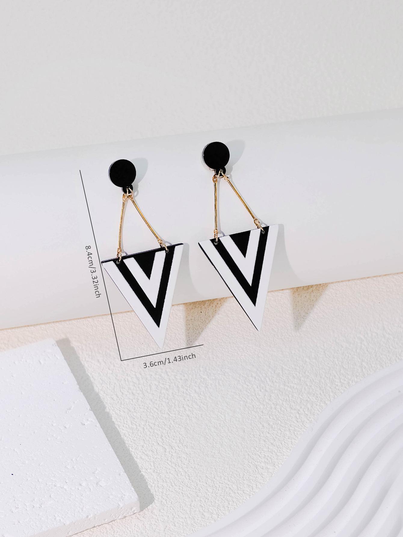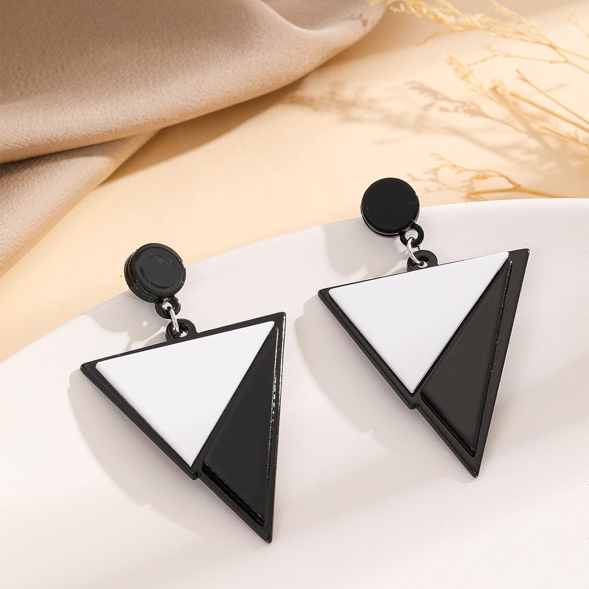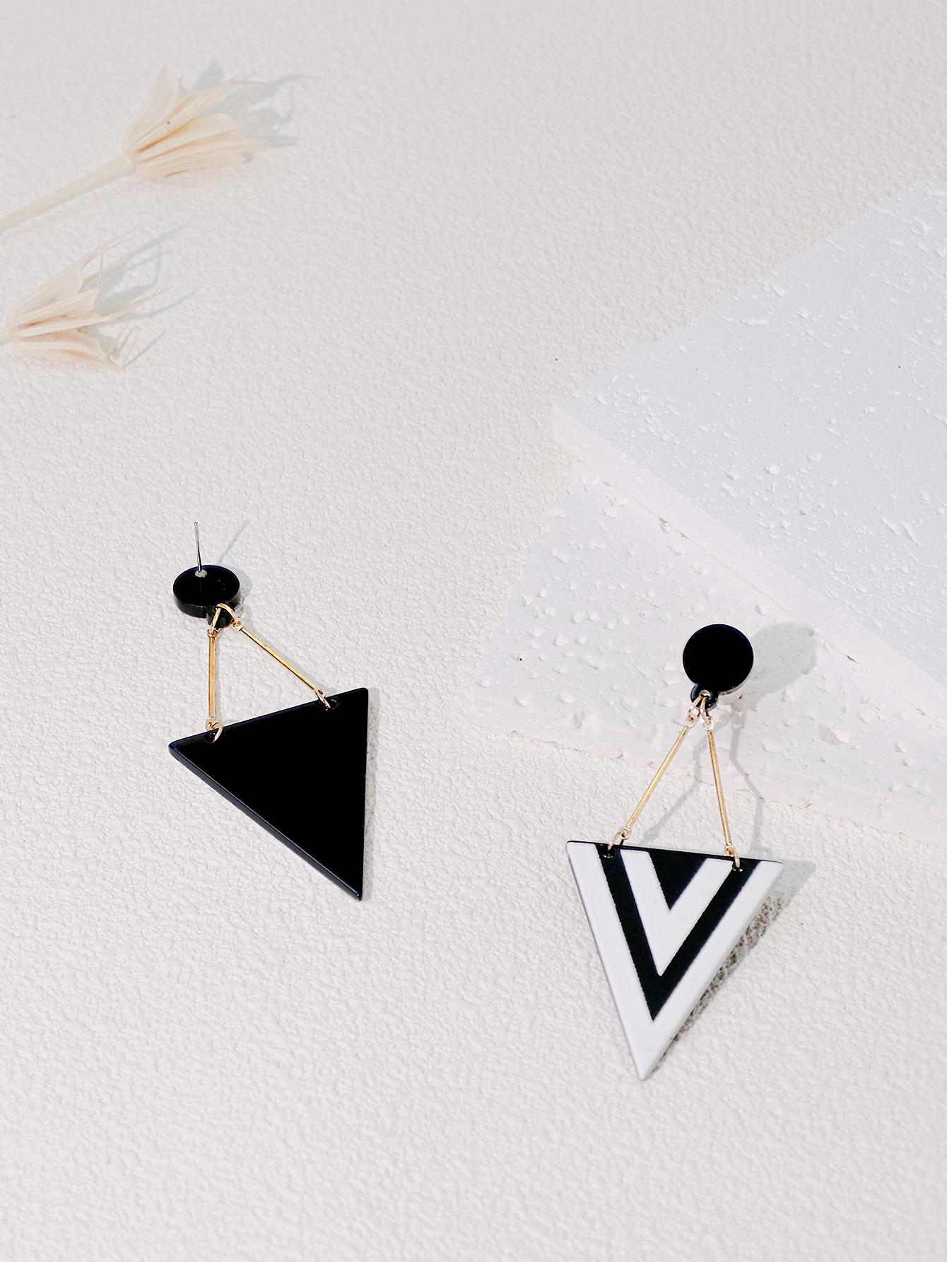 Pendientes geométricos de acrílico con diseño creativo europeo y americano en blanco y negro a juego.