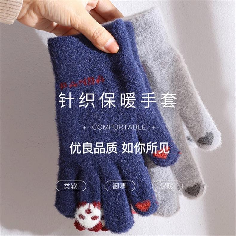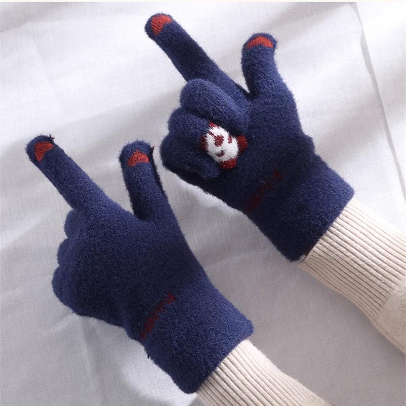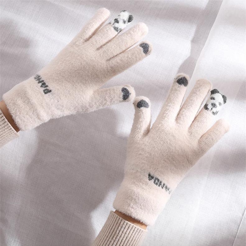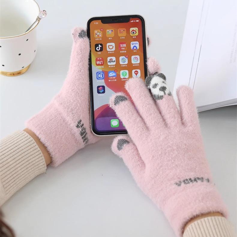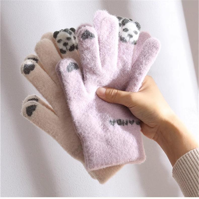 Guantes de invierno con pantalla táctil de dibujos animados para ciclismo, gruesos, resistentes al viento, cálidos, de punto, con cinco dedos, bonitos guantes de lana con diseño de panda, venta al por mayor