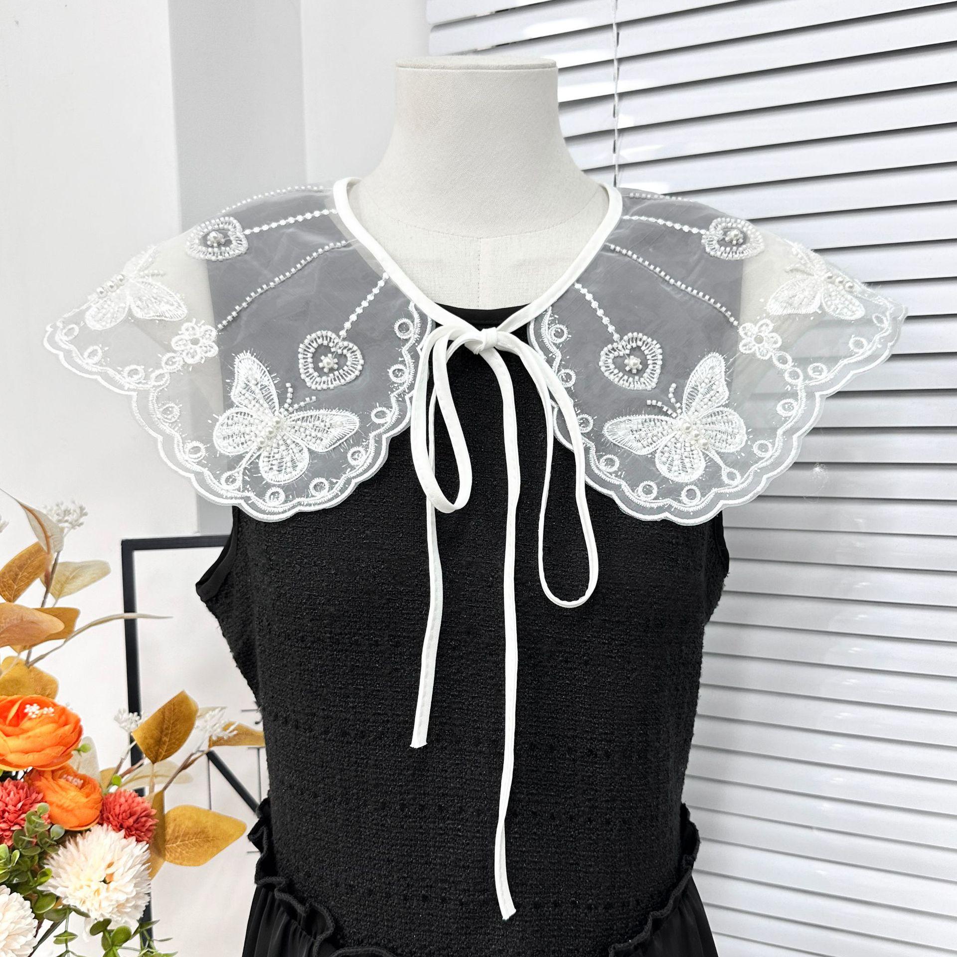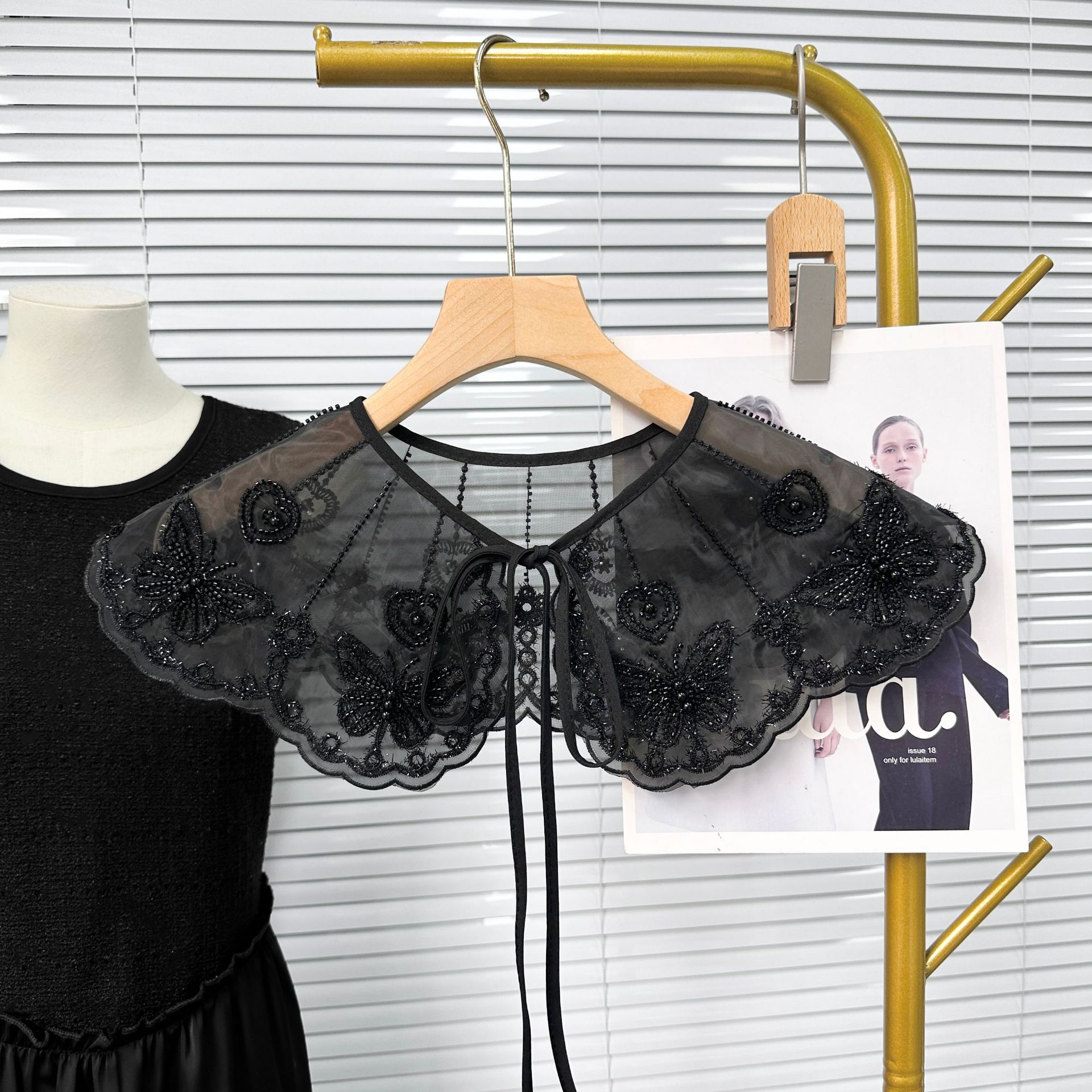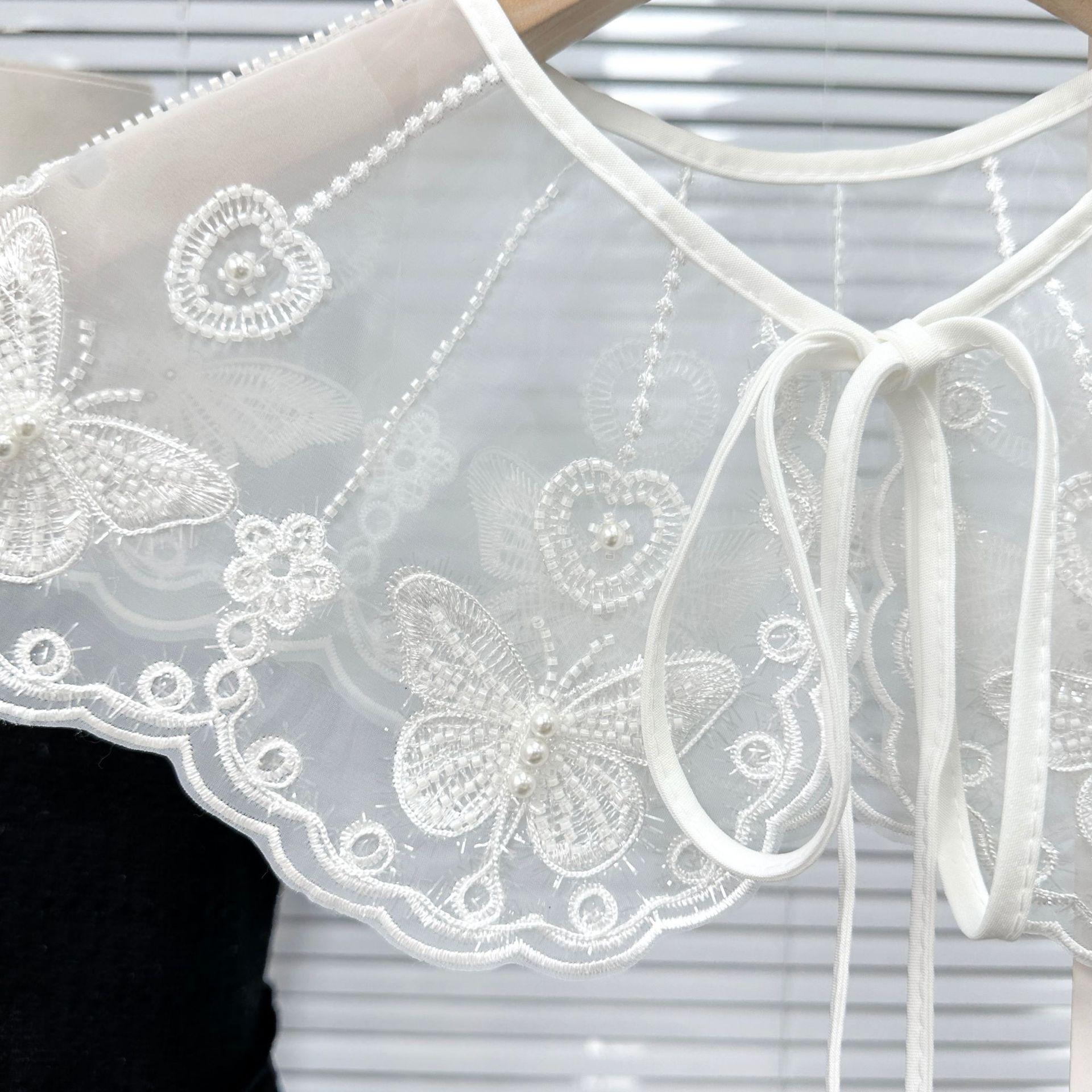 Popular Suministro Transfronterizo de Comercio Electrónico de Nuevo Chal de Cuello Falso con Cuentas de Mariposa Bordada de Organza