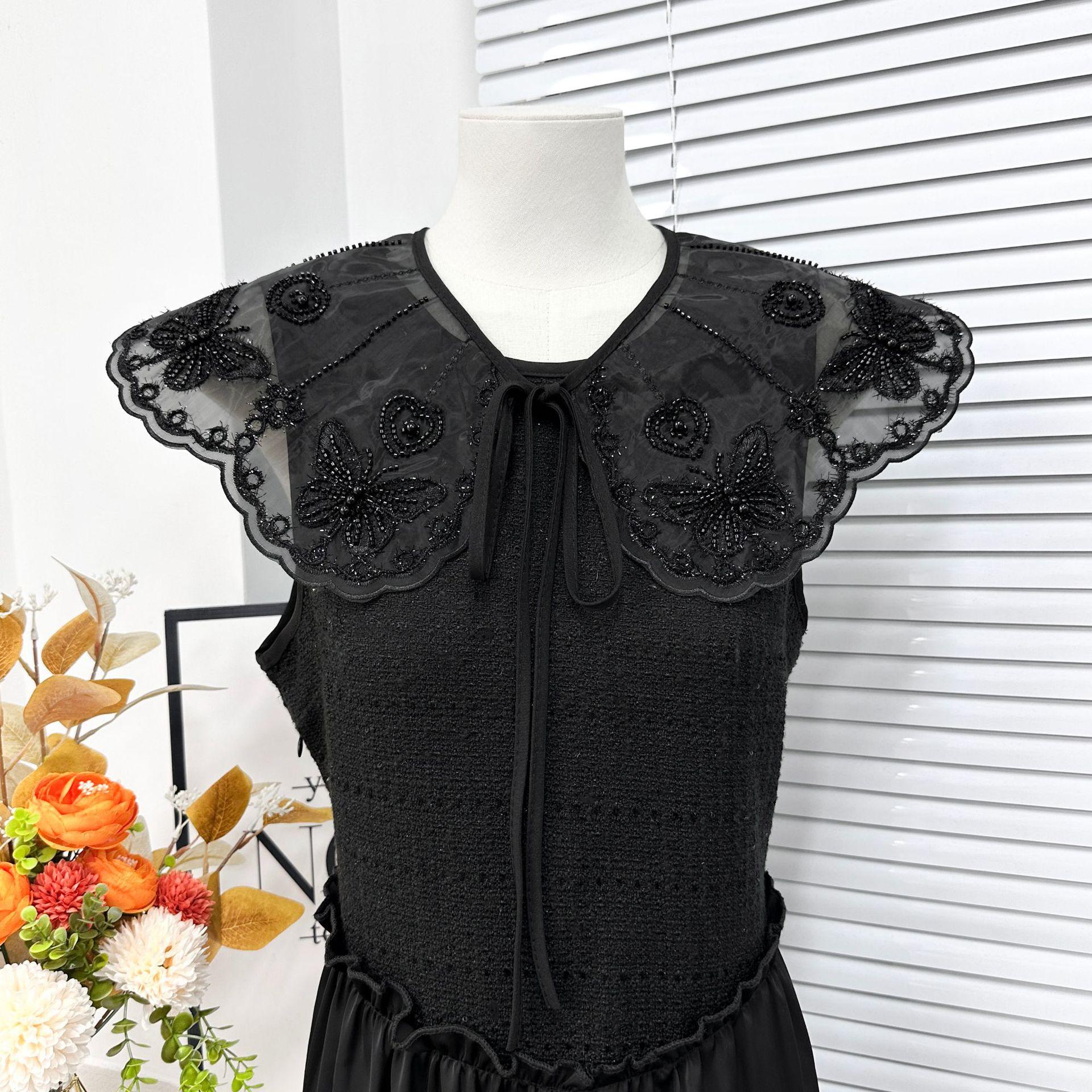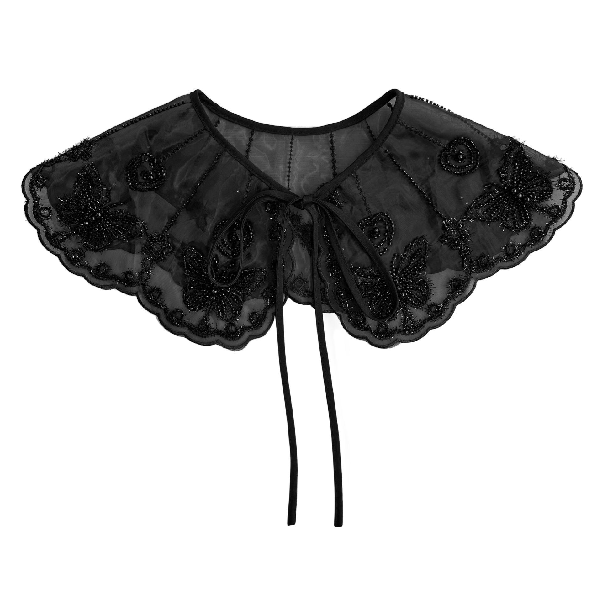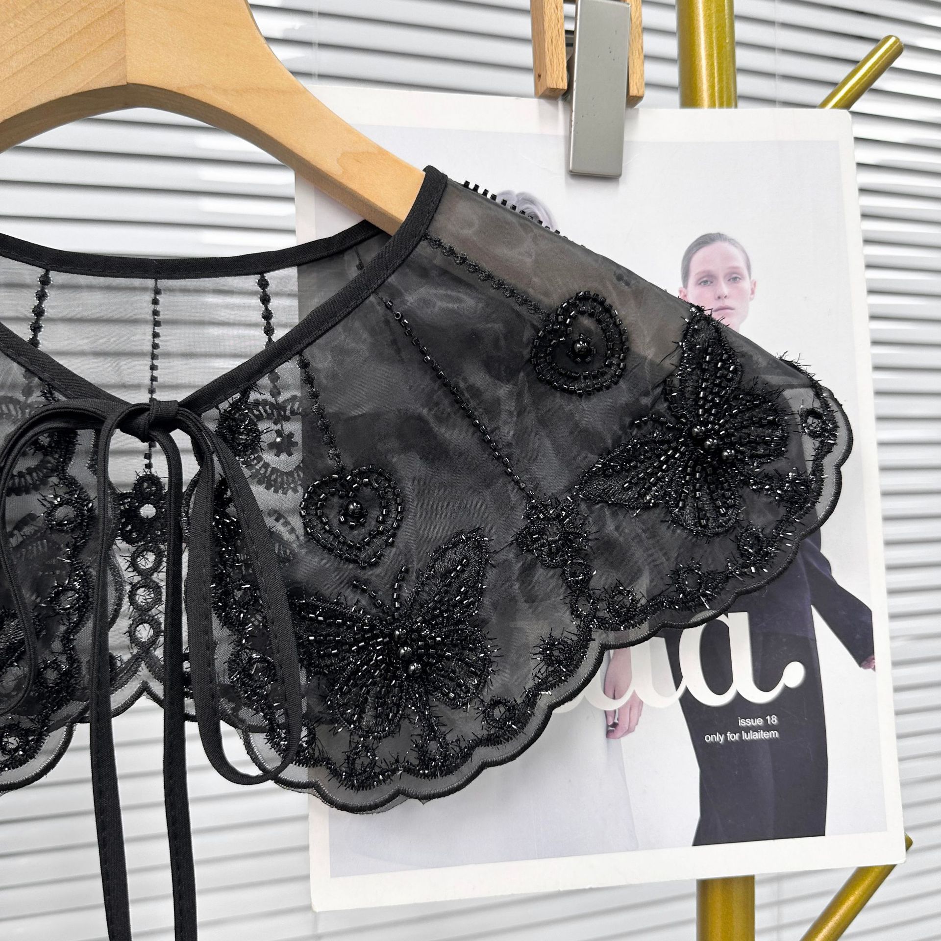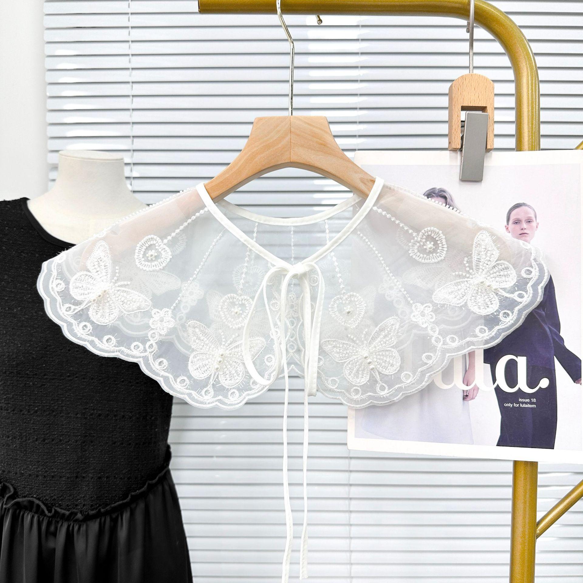 Popular Suministro Transfronterizo de Comercio Electrónico de Nuevo Chal de Cuello Falso con Cuentas de Mariposa Bordada de Organza
