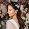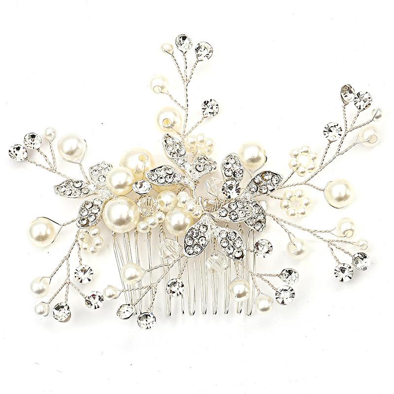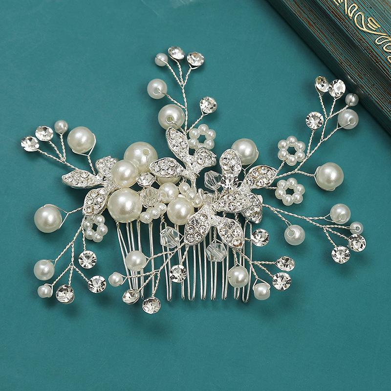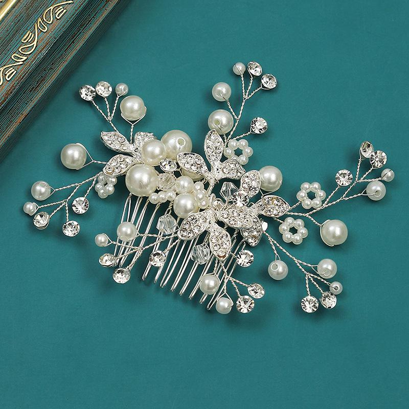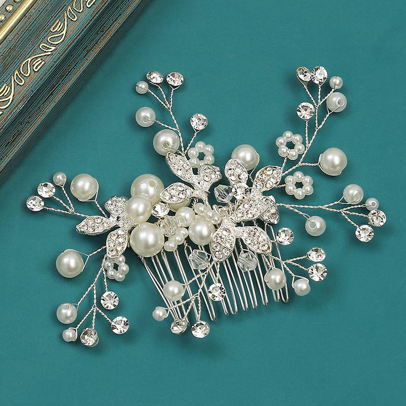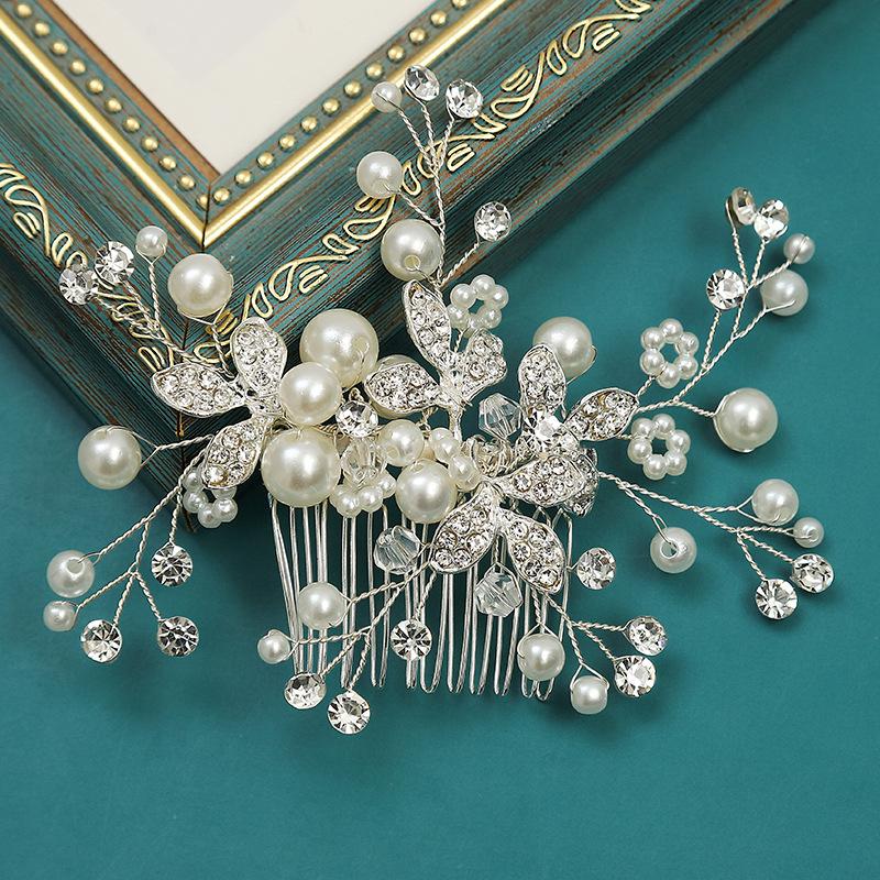 Tocado de novia transfronterizo europeo y americano tejido a mano con inserto de aleación de diamantes de imitación y perlas, accesorios para el cabello de estilo antiguo, peine para recogido de boda para mujer