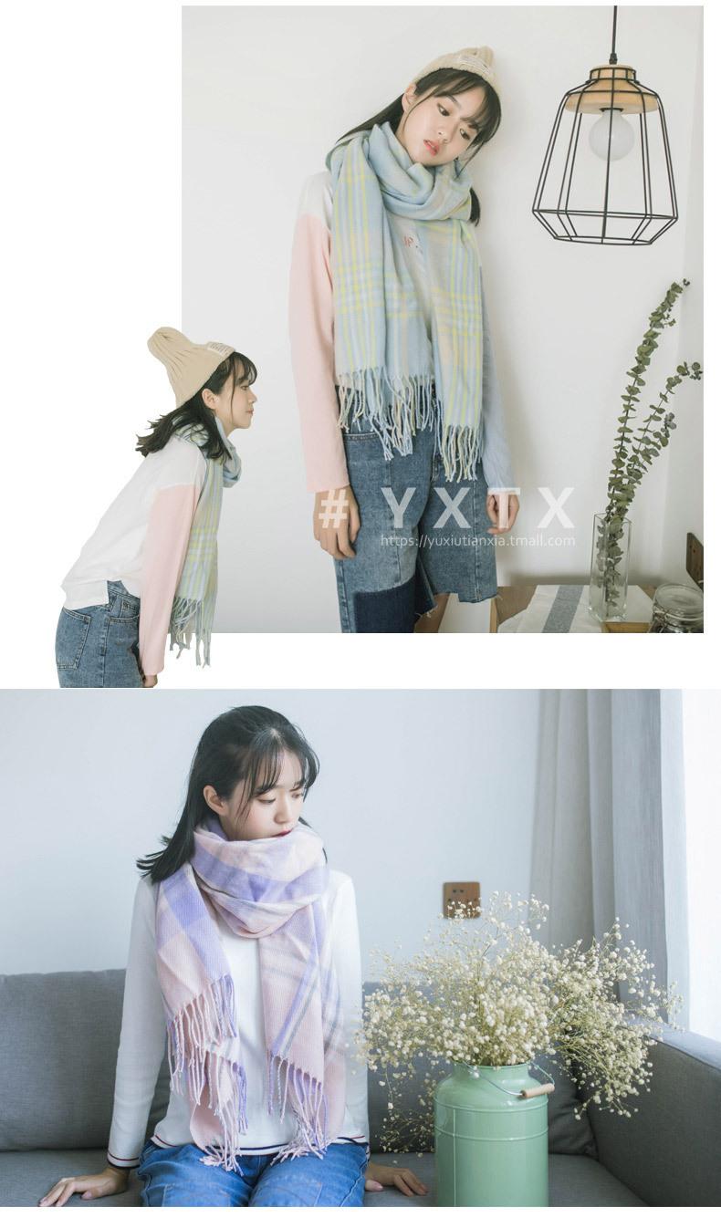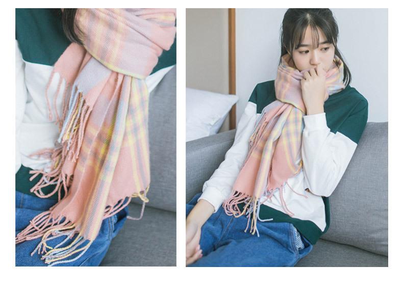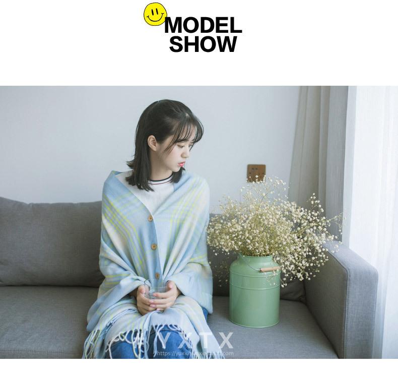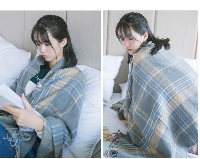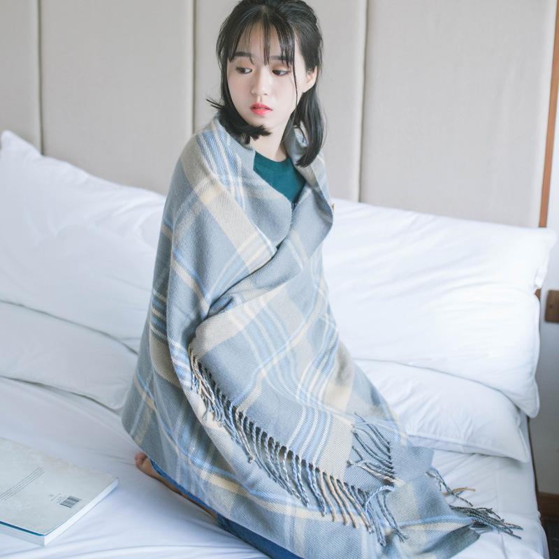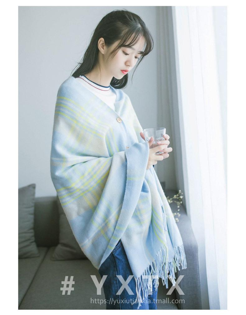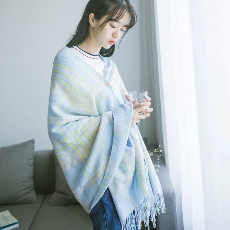 Nuevo chal japonés con botones para otoño e invierno, bufanda a cuadros con borlas, chal de estilo coreano a la moda para estudiantes.