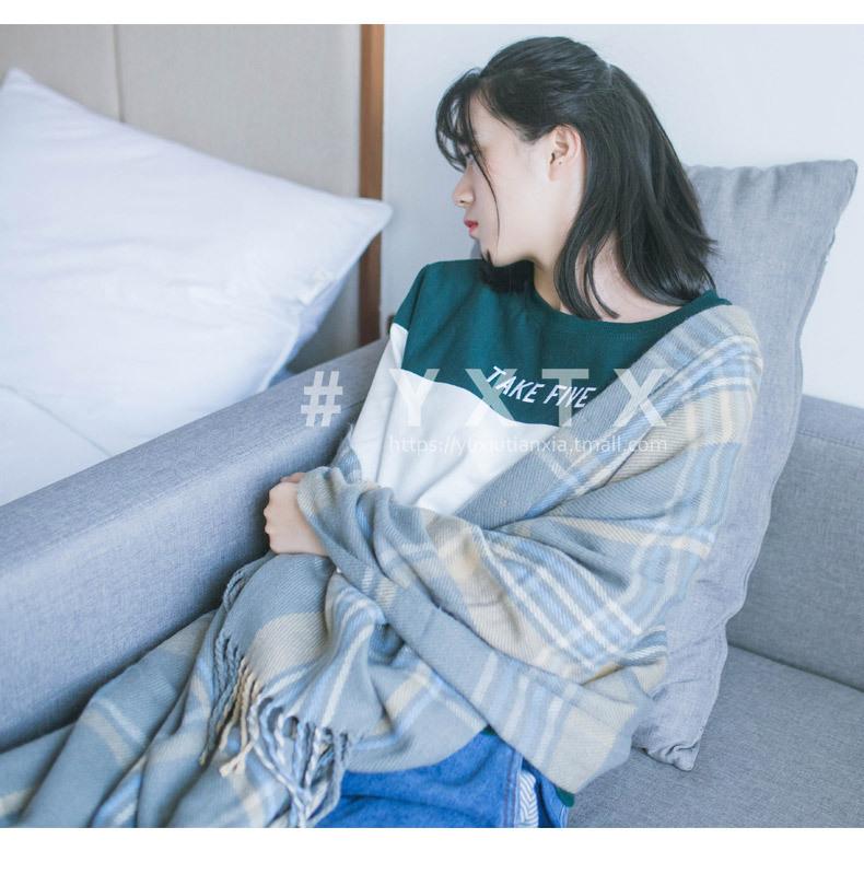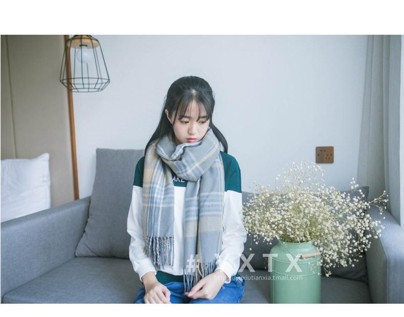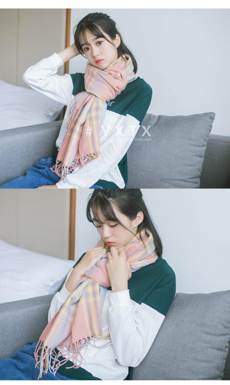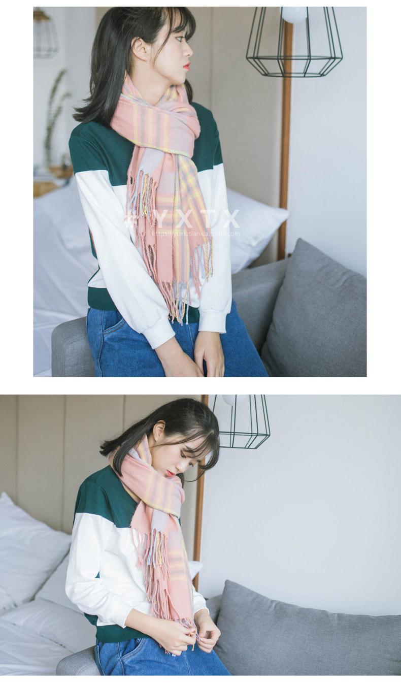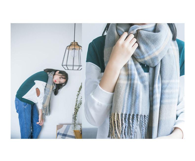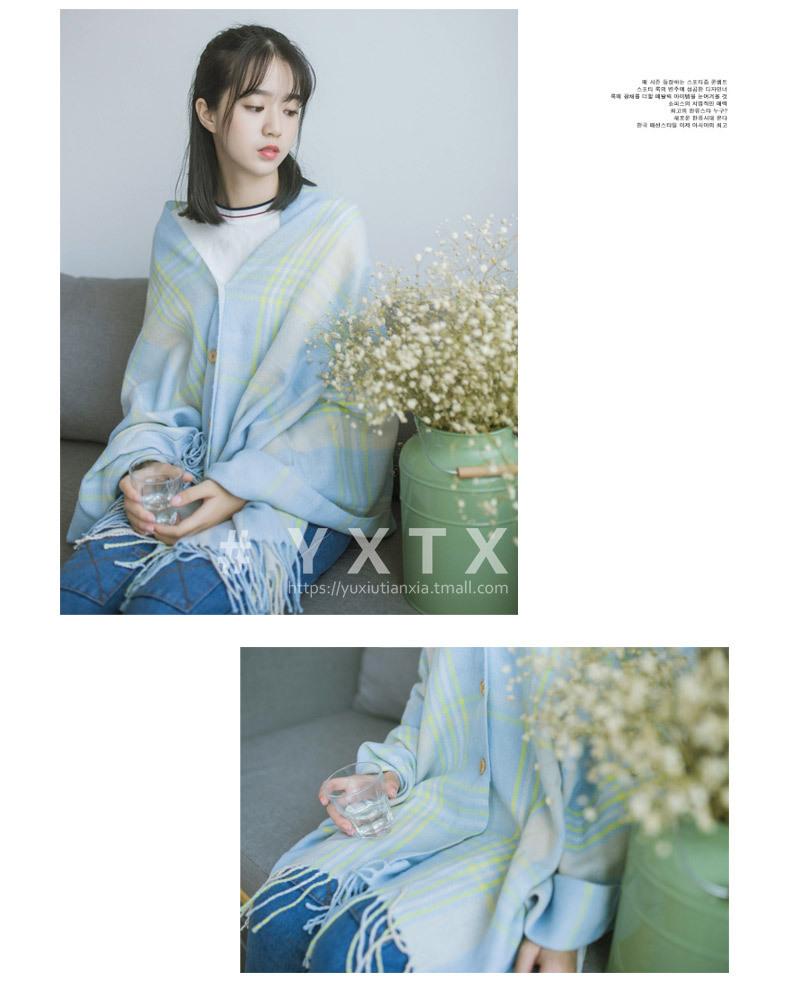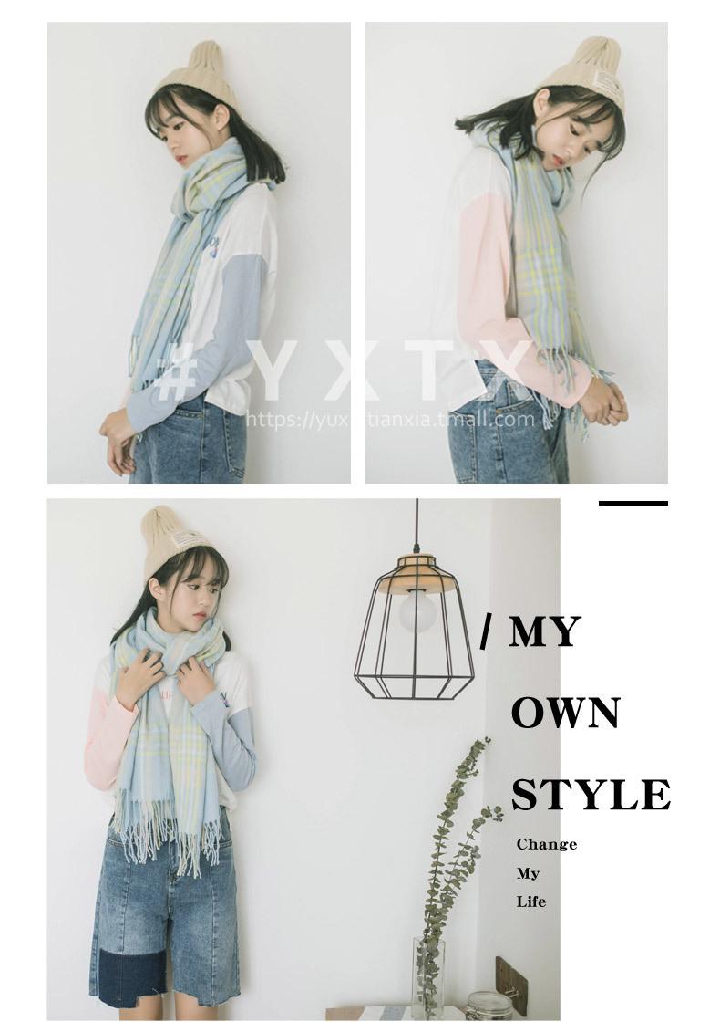 Nuevo chal japonés con botones para otoño e invierno, bufanda a cuadros con borlas, chal de estilo coreano a la moda para estudiantes.