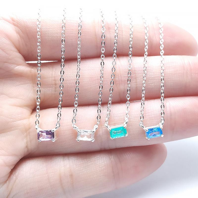 Collar de plata de ley S925 con forma de tesoro cuadrado de color caramelo, collar de circonita cuadrada fresca y dulce, regalo de confesión cuadrado colorido