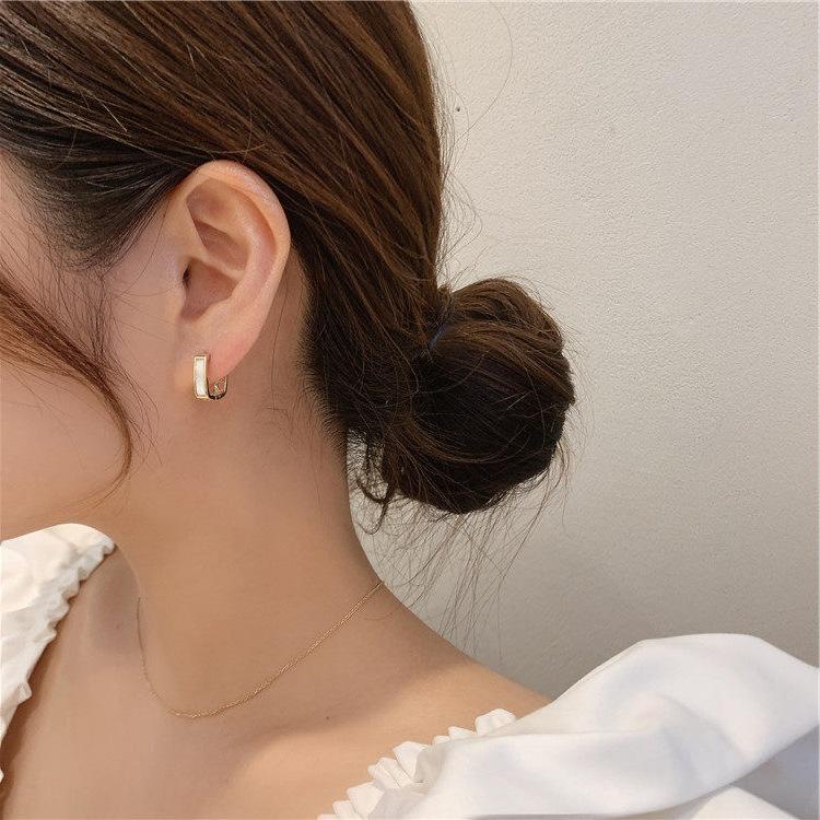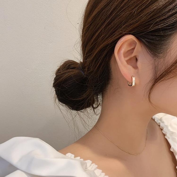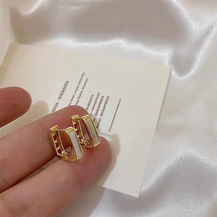 Compra Arete de Metal con Concha Geométrica Cuadrada de Estilo Frío para Mujer Estilo Coreano Simple Combinable Elegante Moda Aretes al por mayor en Joom.pro
