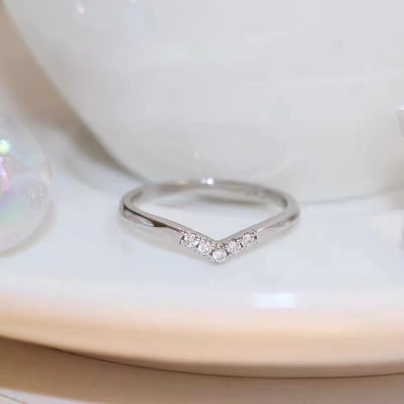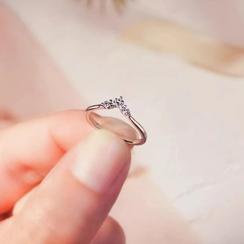 Anillo Japonés y Coreano de Nueva Moda en Forma de V Anillo para Mujer Estilo Frío Lujo Ligero Combinación con Todo Corona Diamante Anillo de Dedo