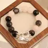 Colgante de Obsidiana de Color Natural Doble Pixiu Círculo de la Fortuna Hebilla de Seguridad Piedra Dorada Ágata Roja Collar para Pareja para la Atracción de la Riqueza