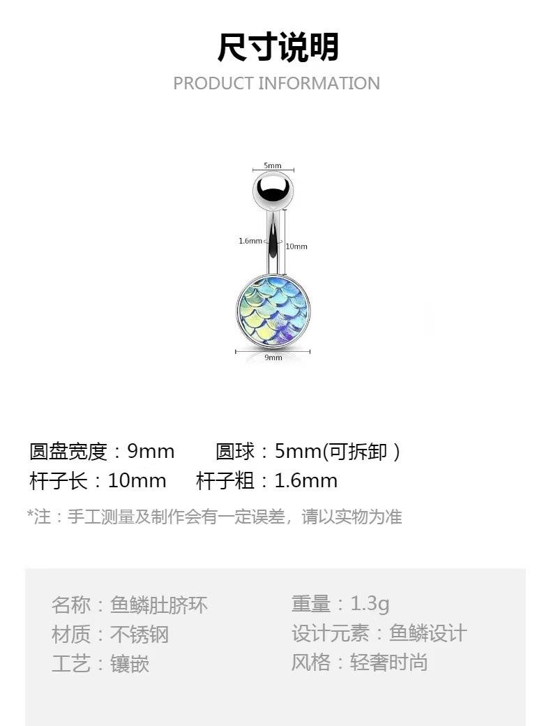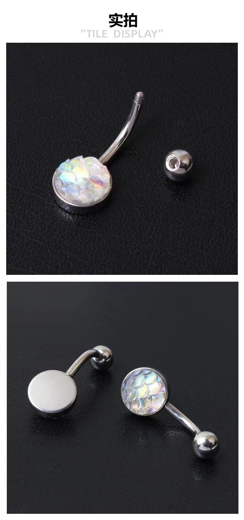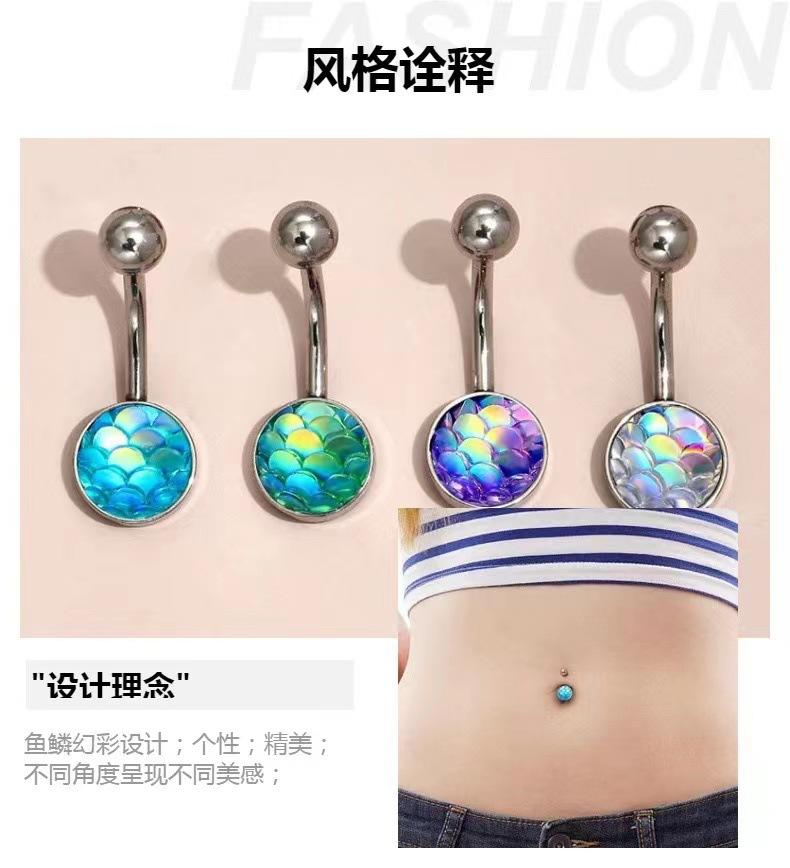 Anillo de ombligo de escamas de pez acrílico de Amazon, acero inoxidable, color mágico, para uña de ombligo, joyería de perforación de comercio exterior europeo y americano