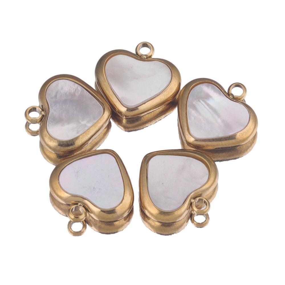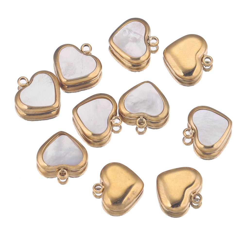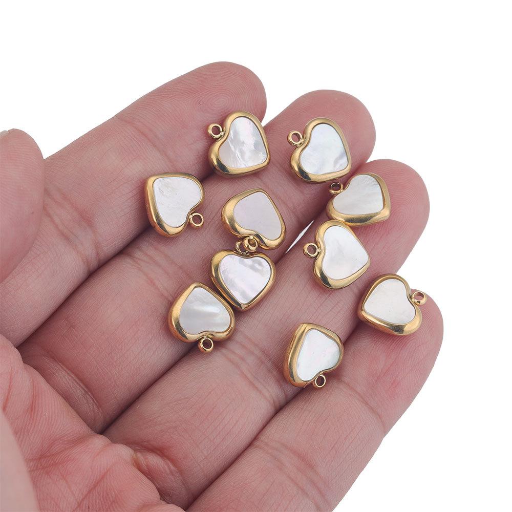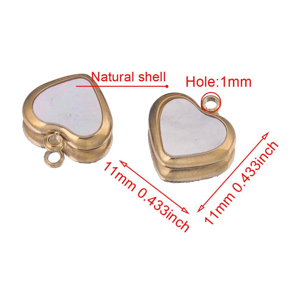 Colgante pequeño de acero inoxidable con forma de corazón de melocotón de concha natural de 11 mm, collar, pendientes, colgante de conexión, joyería artesanal, accesorios hechos a mano