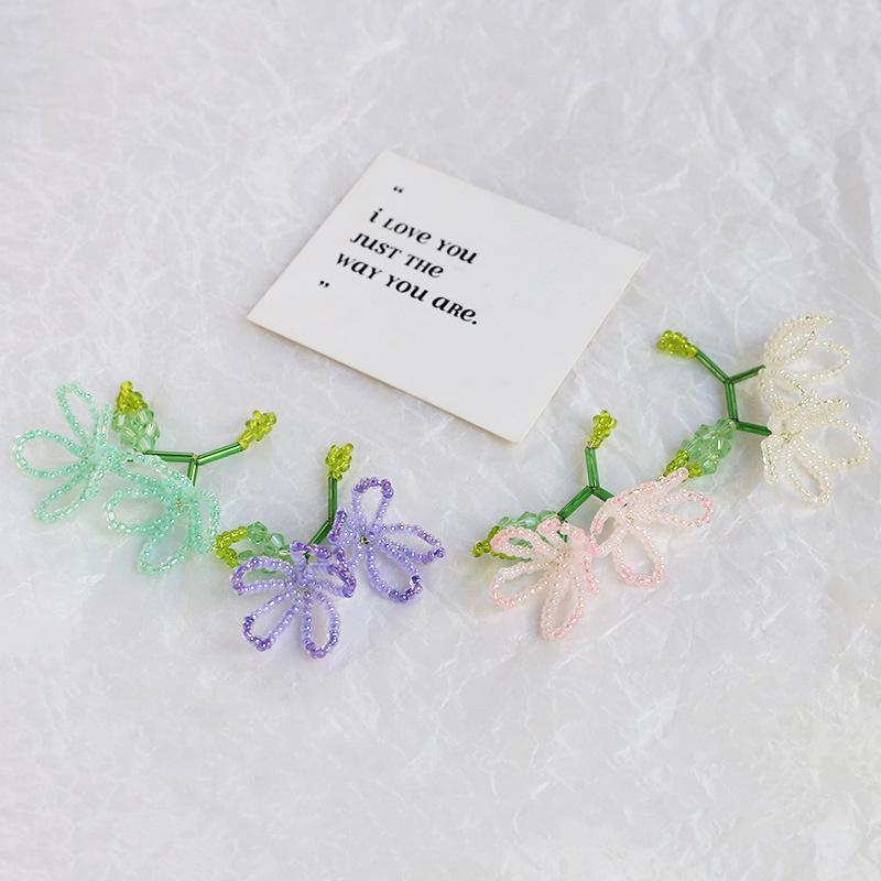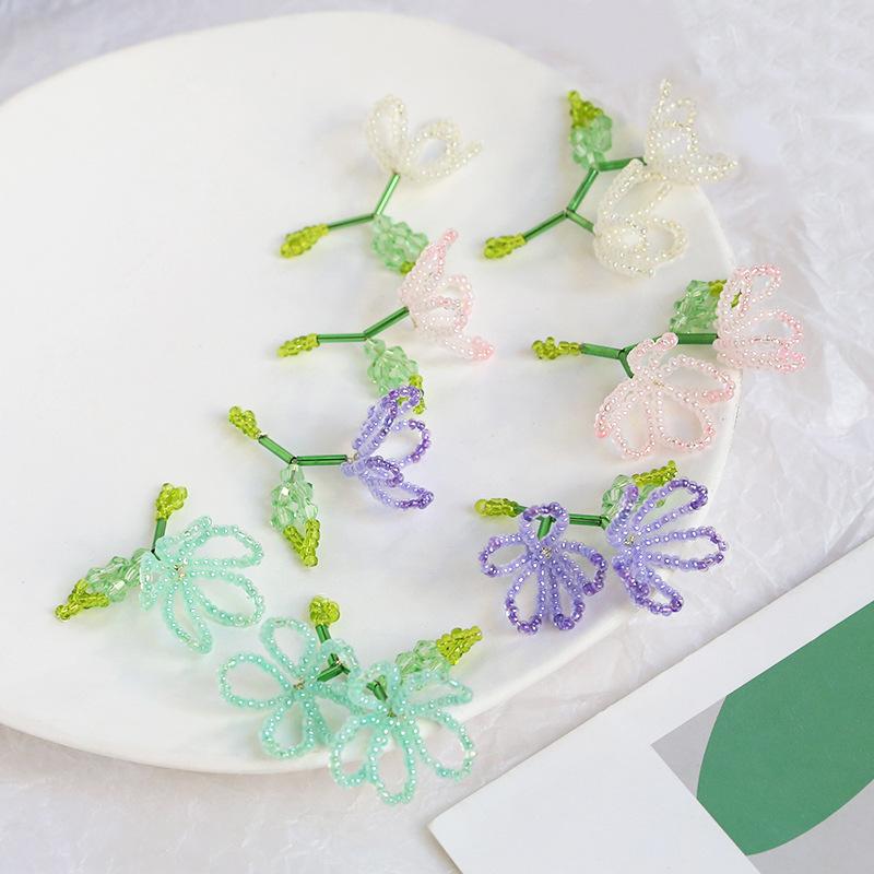 Colgante de flor con degradado tejido con cuentas de perla de cristal, joyería hecha a mano, pendientes, collar, accesorios, material