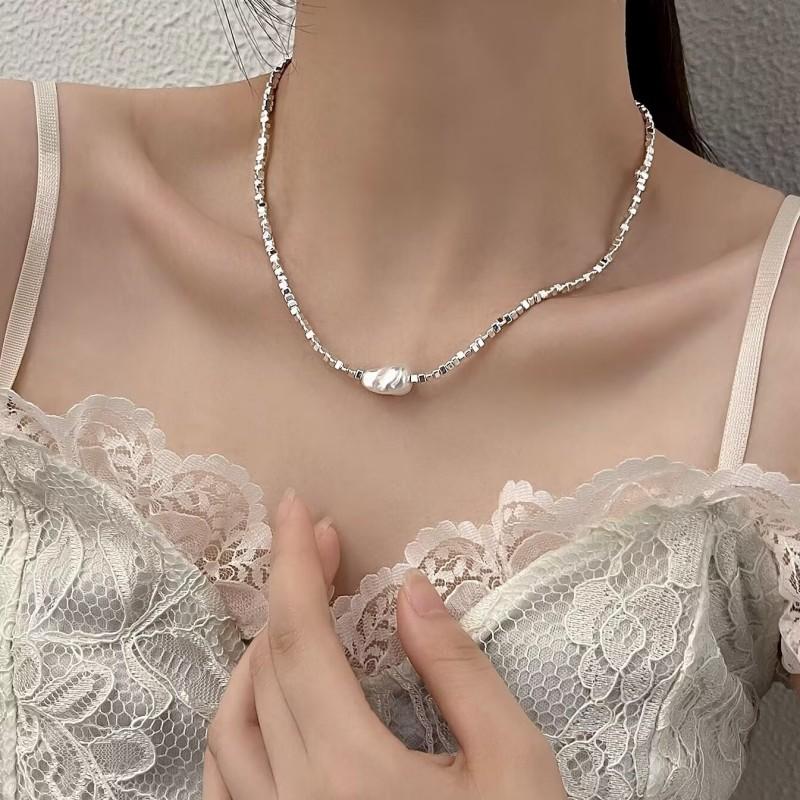 Collar de plata roto para mujer, diseño de alta calidad, estilo nicho, elegante, dulce y moderno, cadena para clavícula, celebridad de Internet.