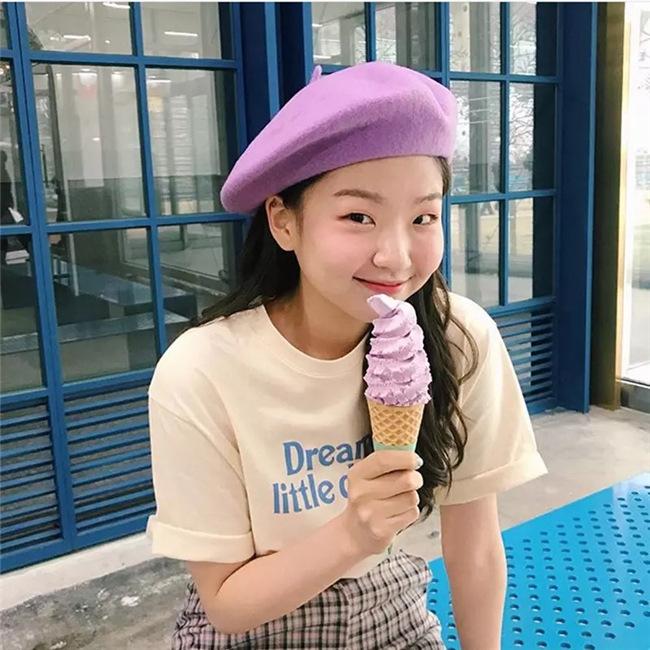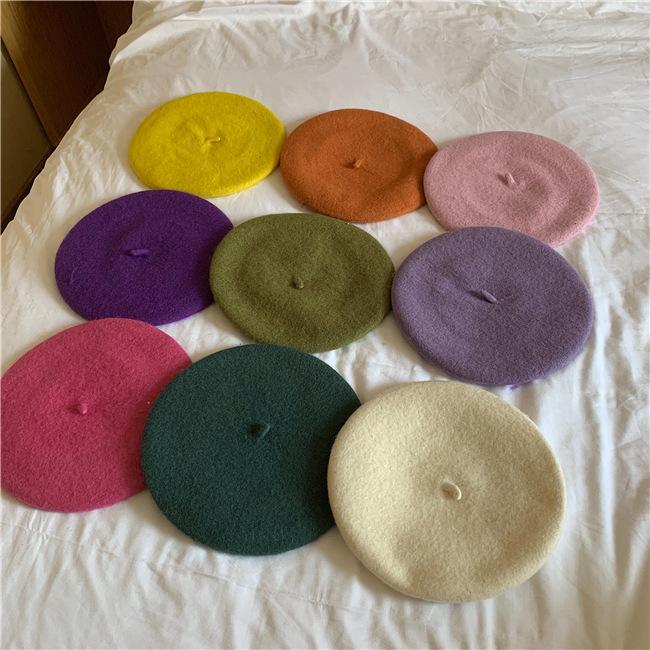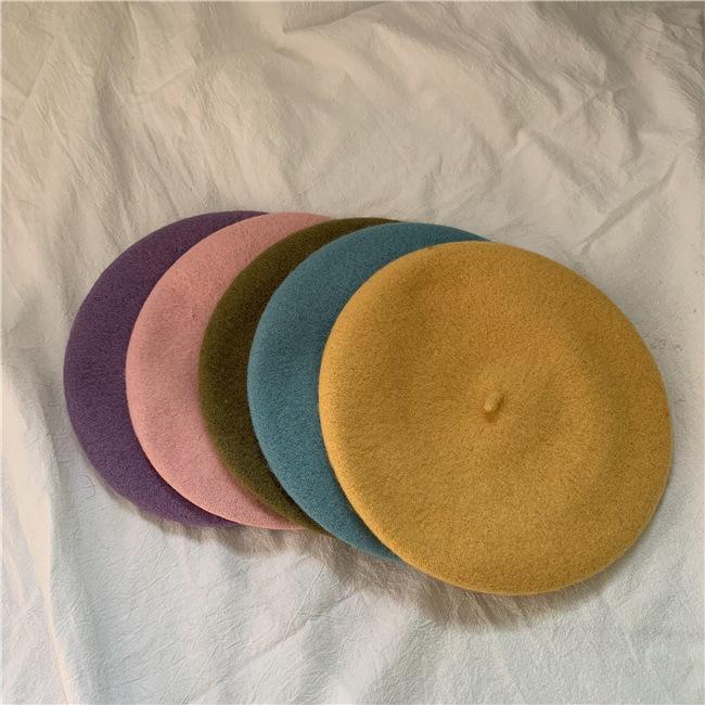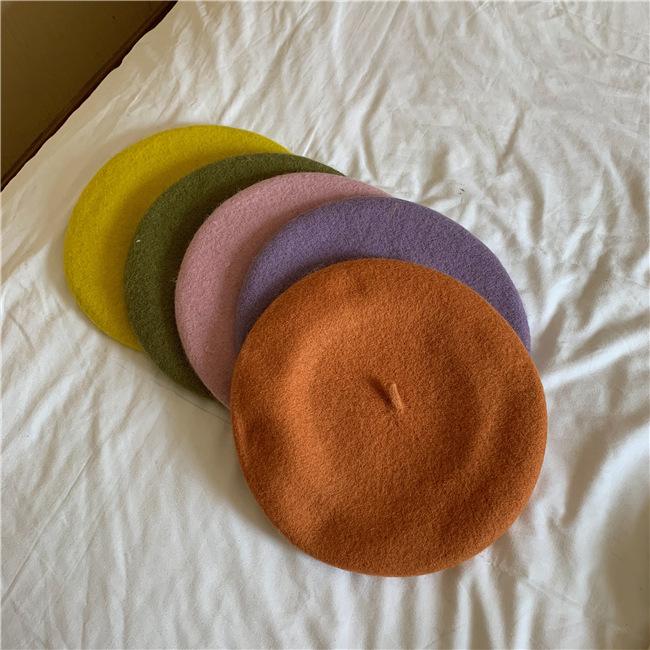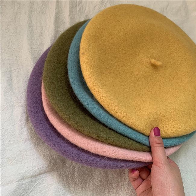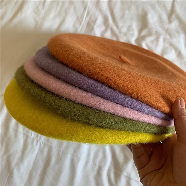 Boina artística de lana estilo japonés para otoño e invierno, color caramelo de Corea del Sur, sombrero de pintor combinable, boina retro británica a la moda