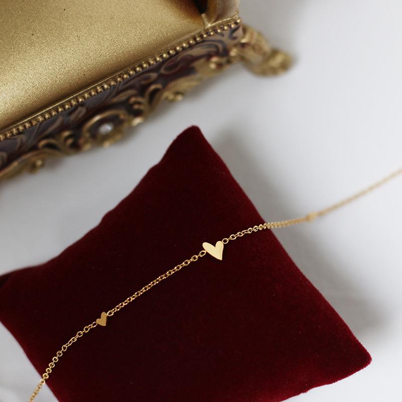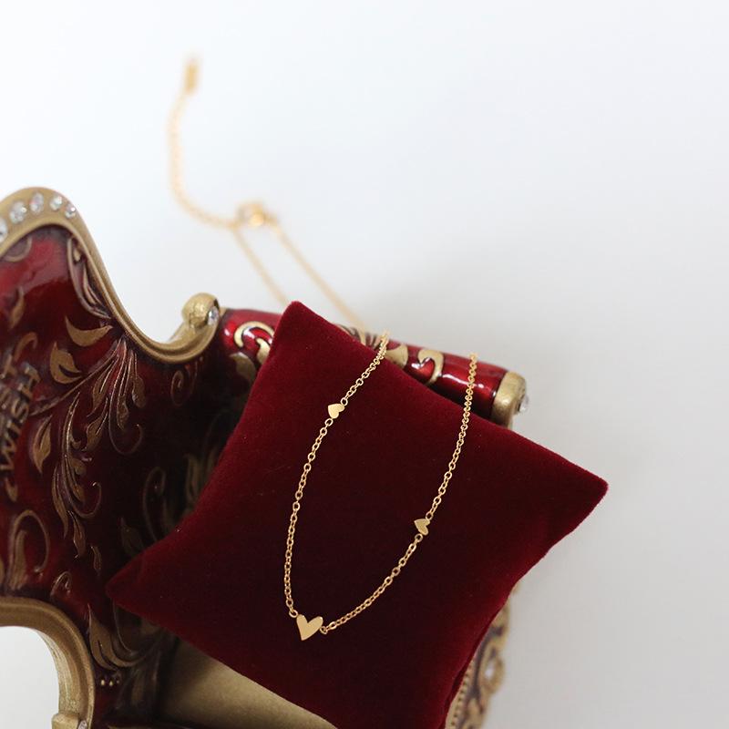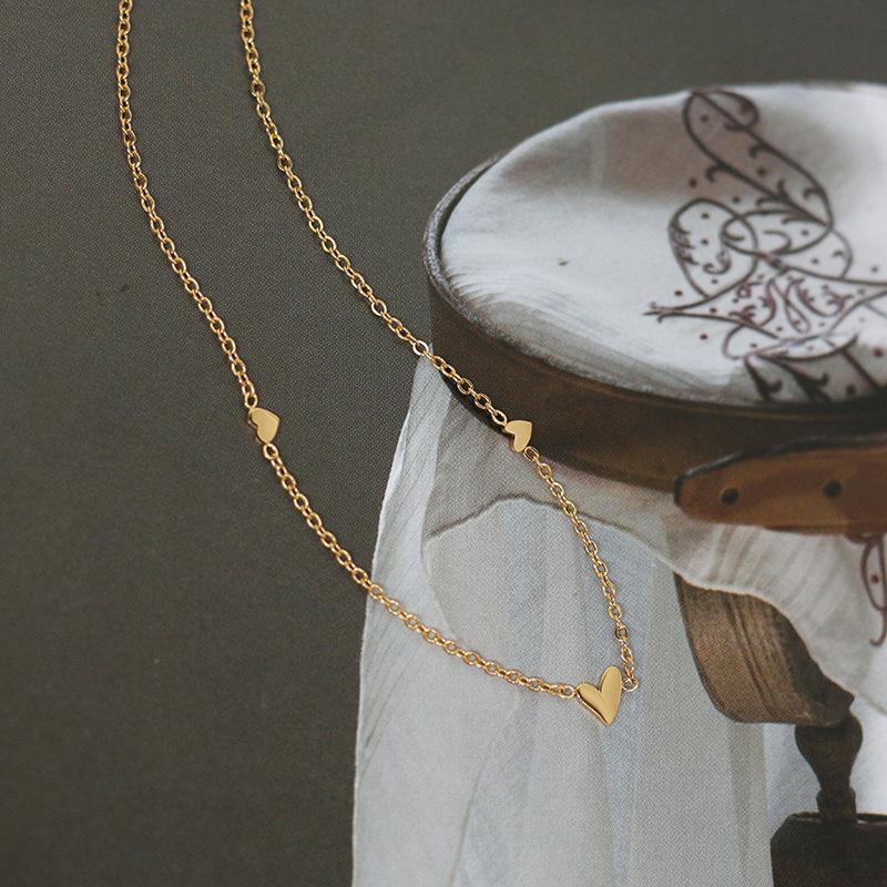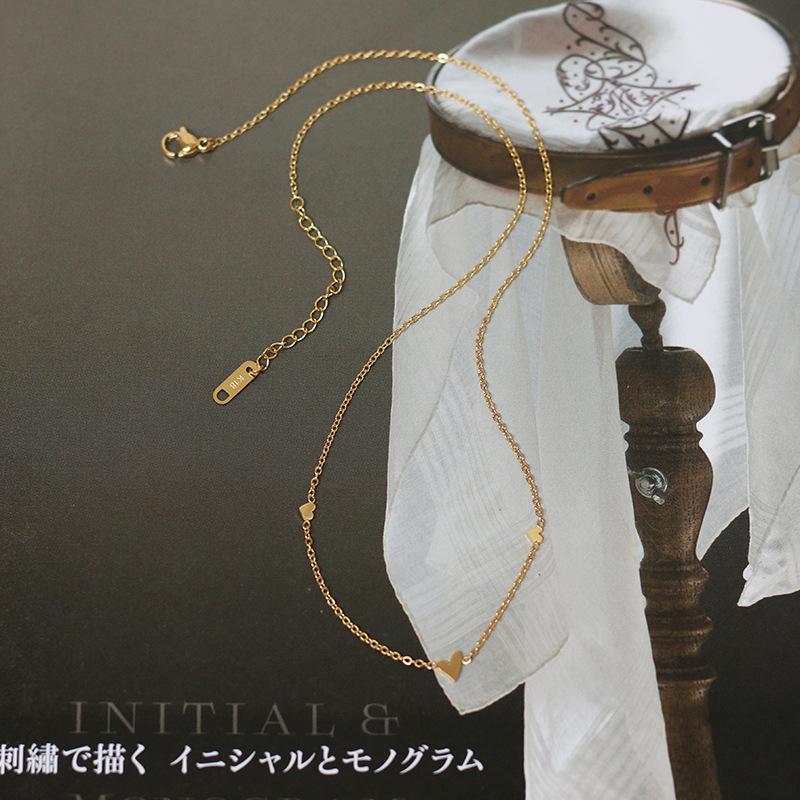 Collar de tres corazones japoneses, estilo Mori, artístico, pequeño y fresco, con cadena de clavícula de acero de titanio chapado en oro K, preservación del color.