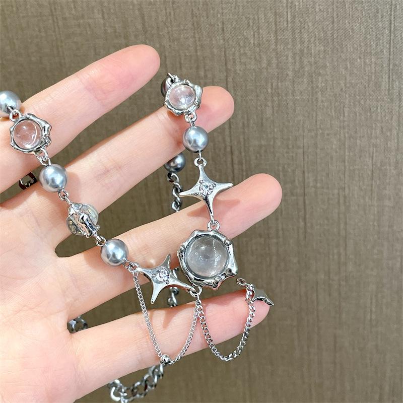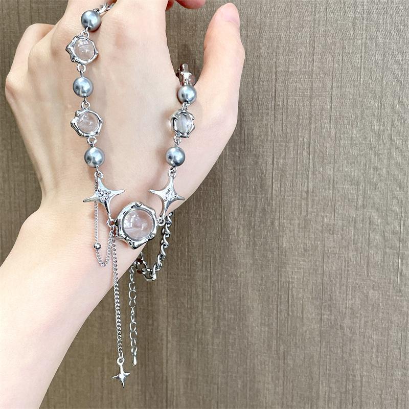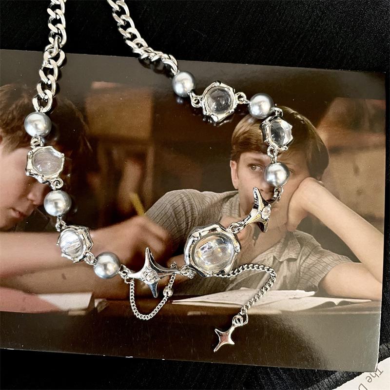 Collar de borlas de cristal con cuentas de estrella de alta calidad para hombre, cadena de clavícula con costura de perlas súper personal, collar de lujo ligero y moderno.
