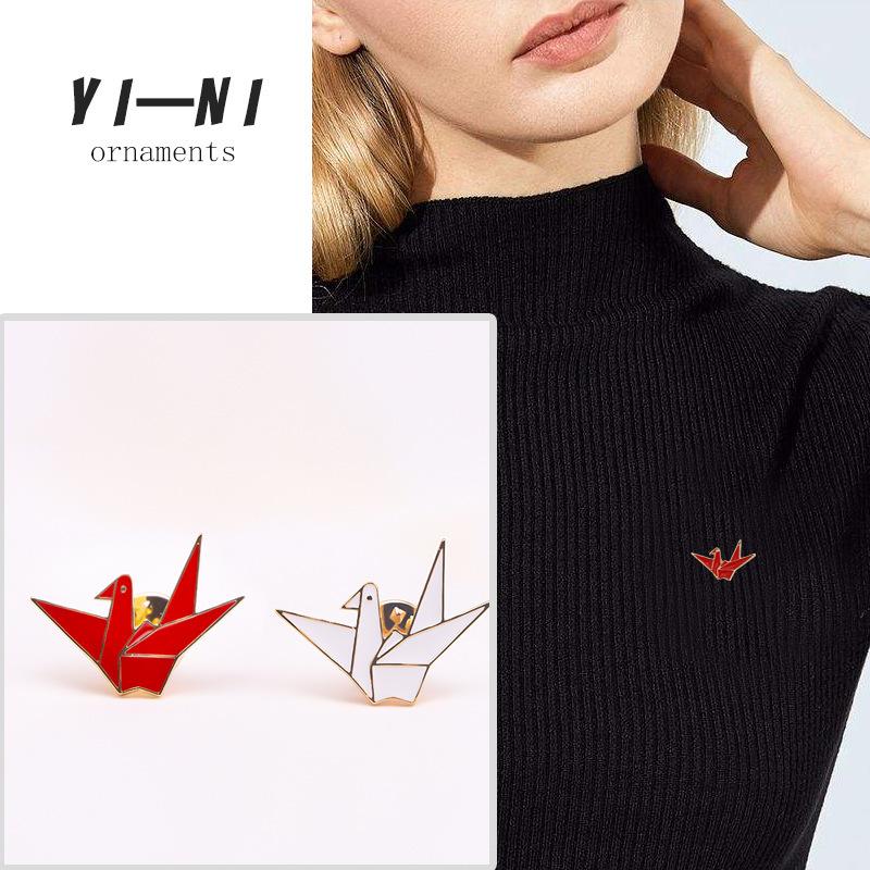 Broche de grulla de papel, accesorio sencillo para traje, escote, aguja decorativa antiexposición, insignia de cintura de aleación combinable de estilo coreano