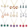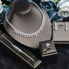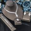 Conjunto de joyería de moda para traje, elegante collar de diamantes y circonitas, pendientes, anillo y combinación de joyas para banquetes nupciales.