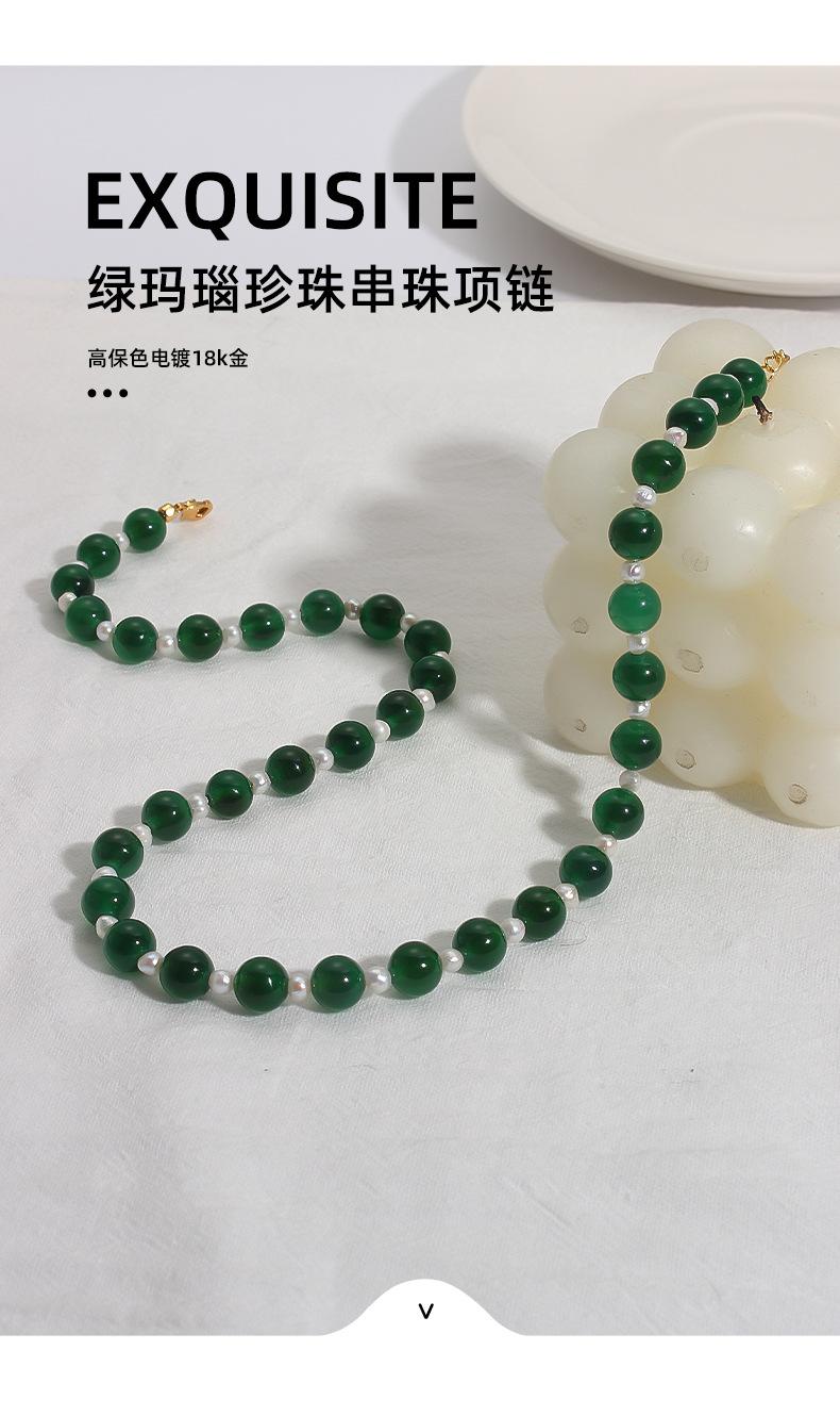Collar de perlas de agua dulce de ágata verde, nuevo estilo chino, accesorios de color contrastante, simple, de alta calidad, ligero, de lujo, estilo nacional, collar de cuentas