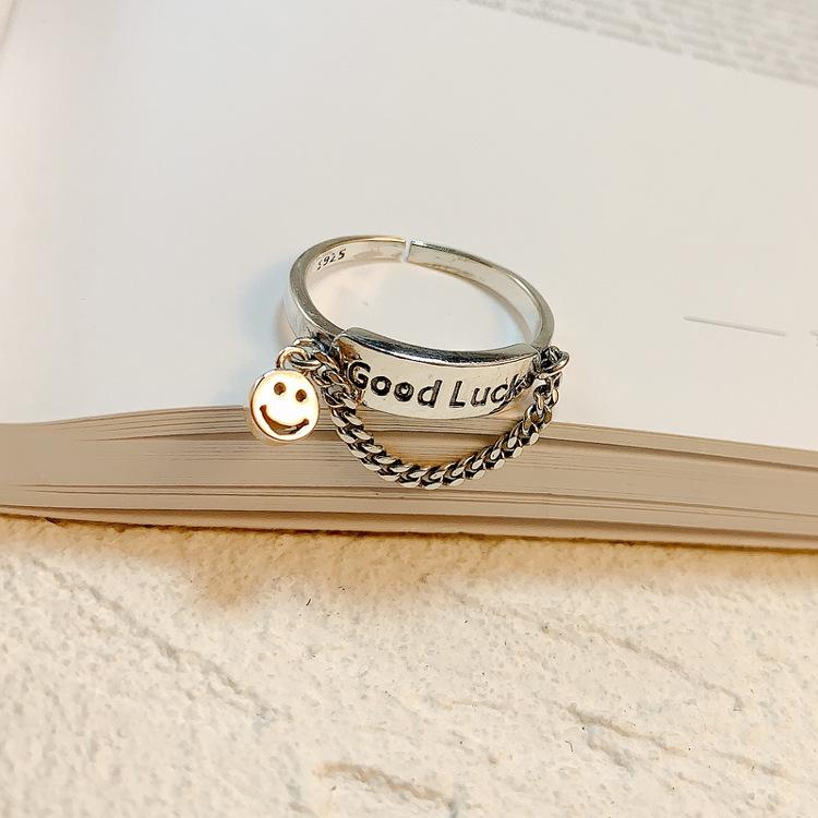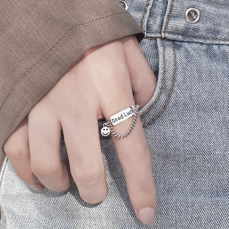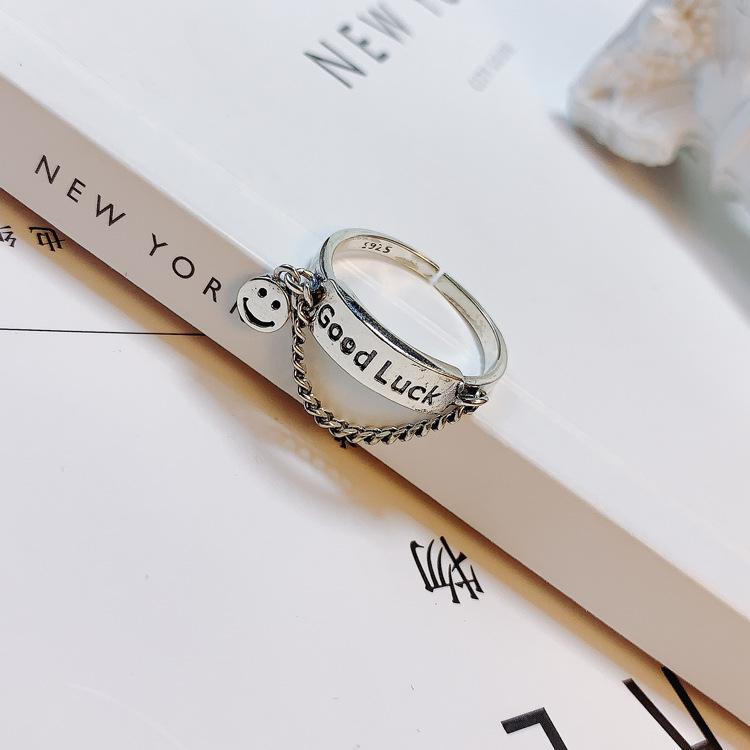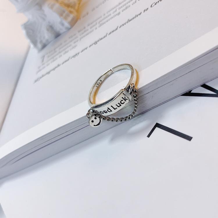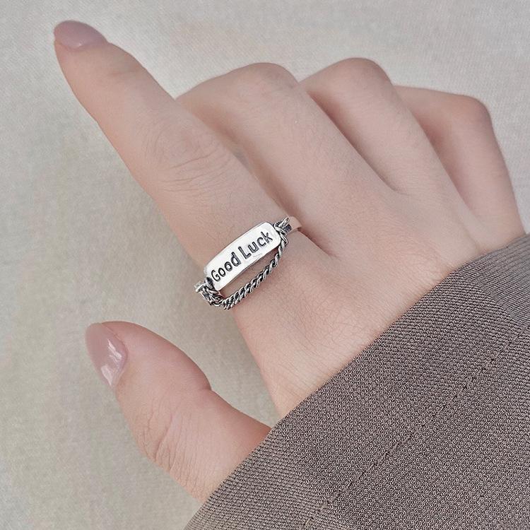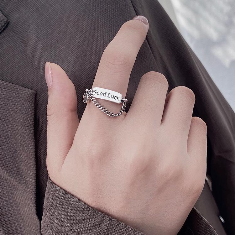 Anillo de Letra de Plata S925 Moderno y Cool para Mujer Retro Simple Cadena Creativo Anillo Abierto Anillo para Dedo Índice Moderno