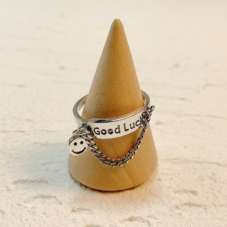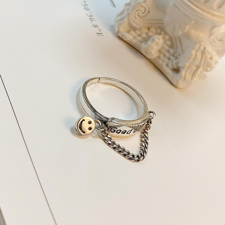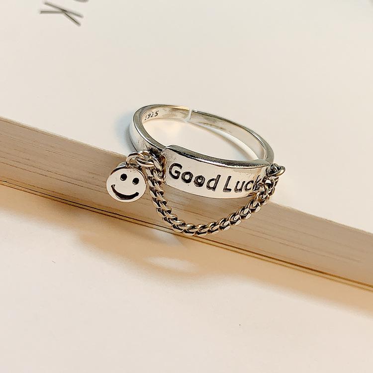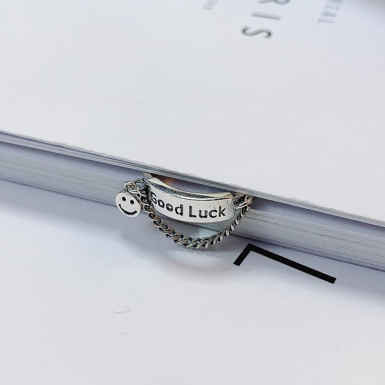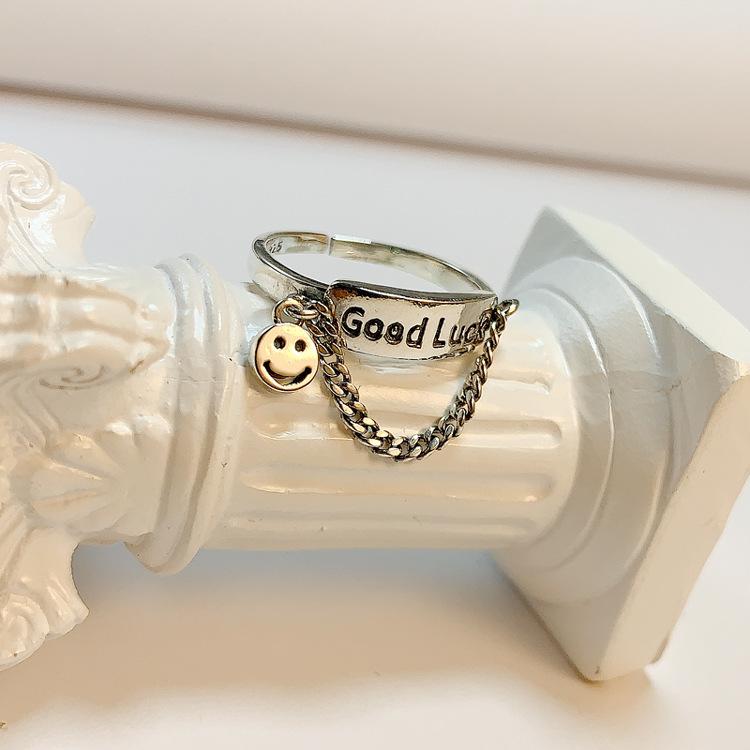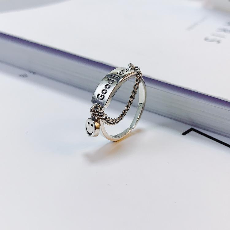 Anillo de Letra de Plata S925 Moderno y Cool para Mujer Retro Simple Cadena Creativo Anillo Abierto Anillo para Dedo Índice Moderno