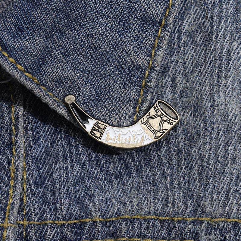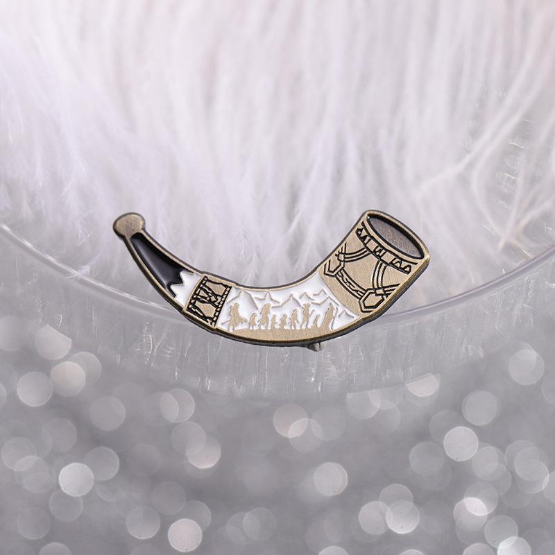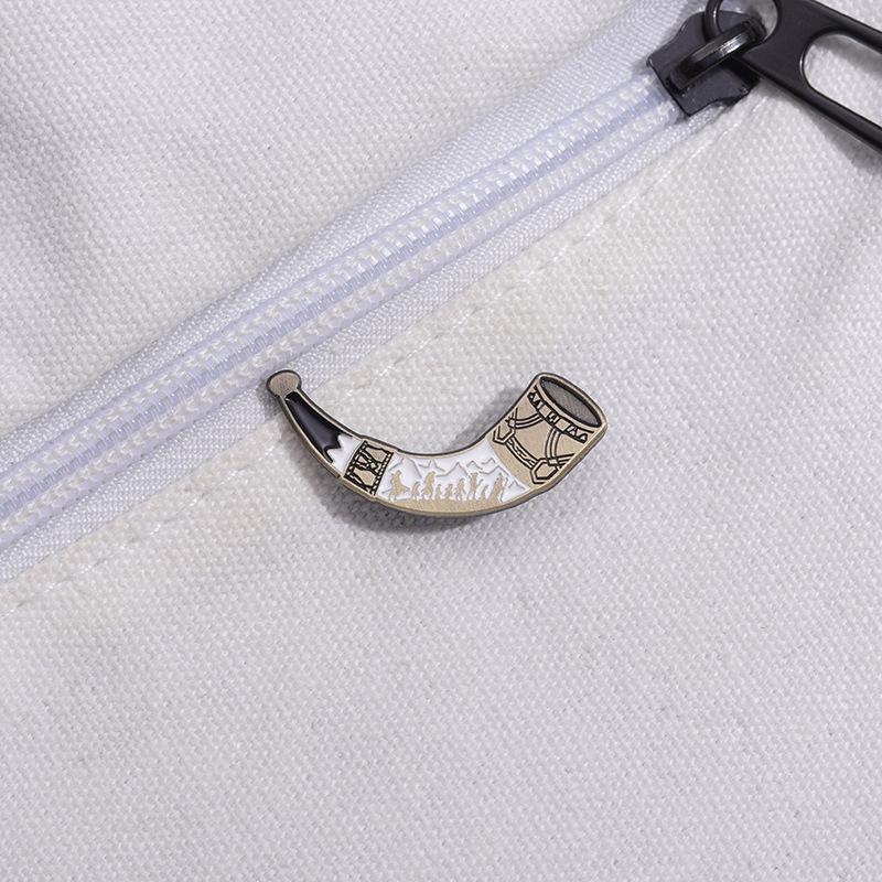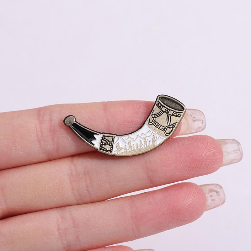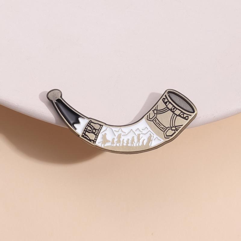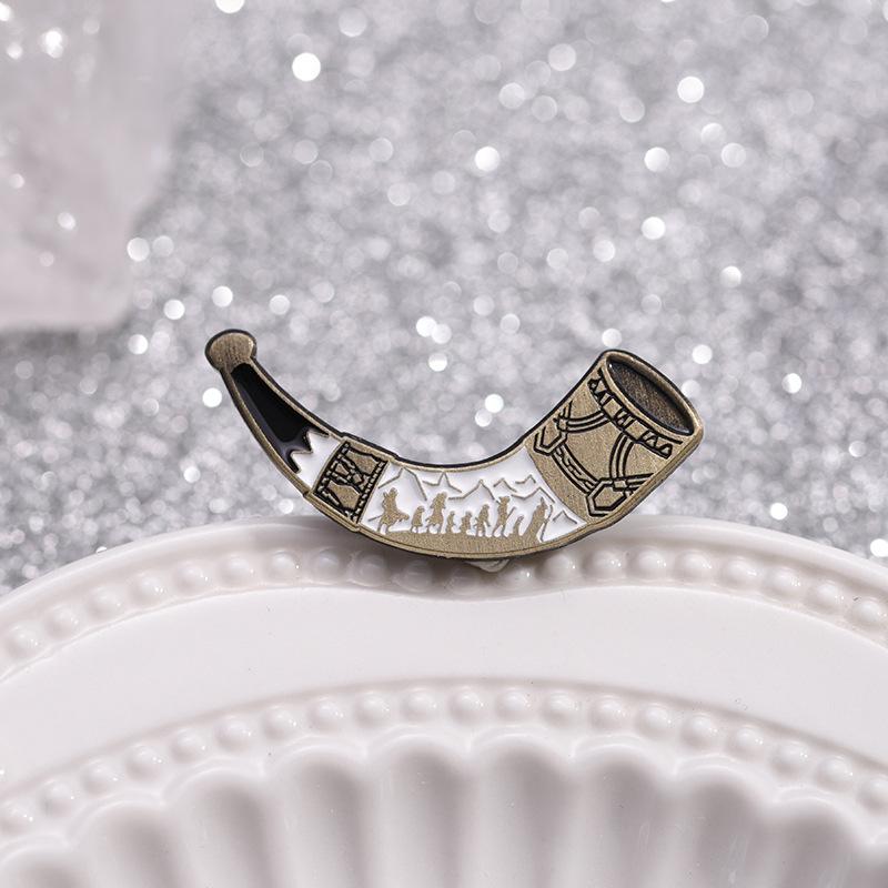 Broche con forma de cuerno de Boromir, accesorio para mochila, decoración, joyería, insignia, del Reino Gangduo de El Señor de los Anillos.