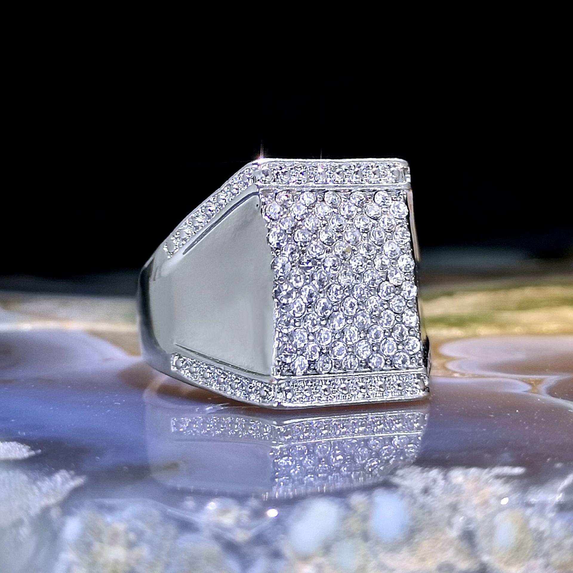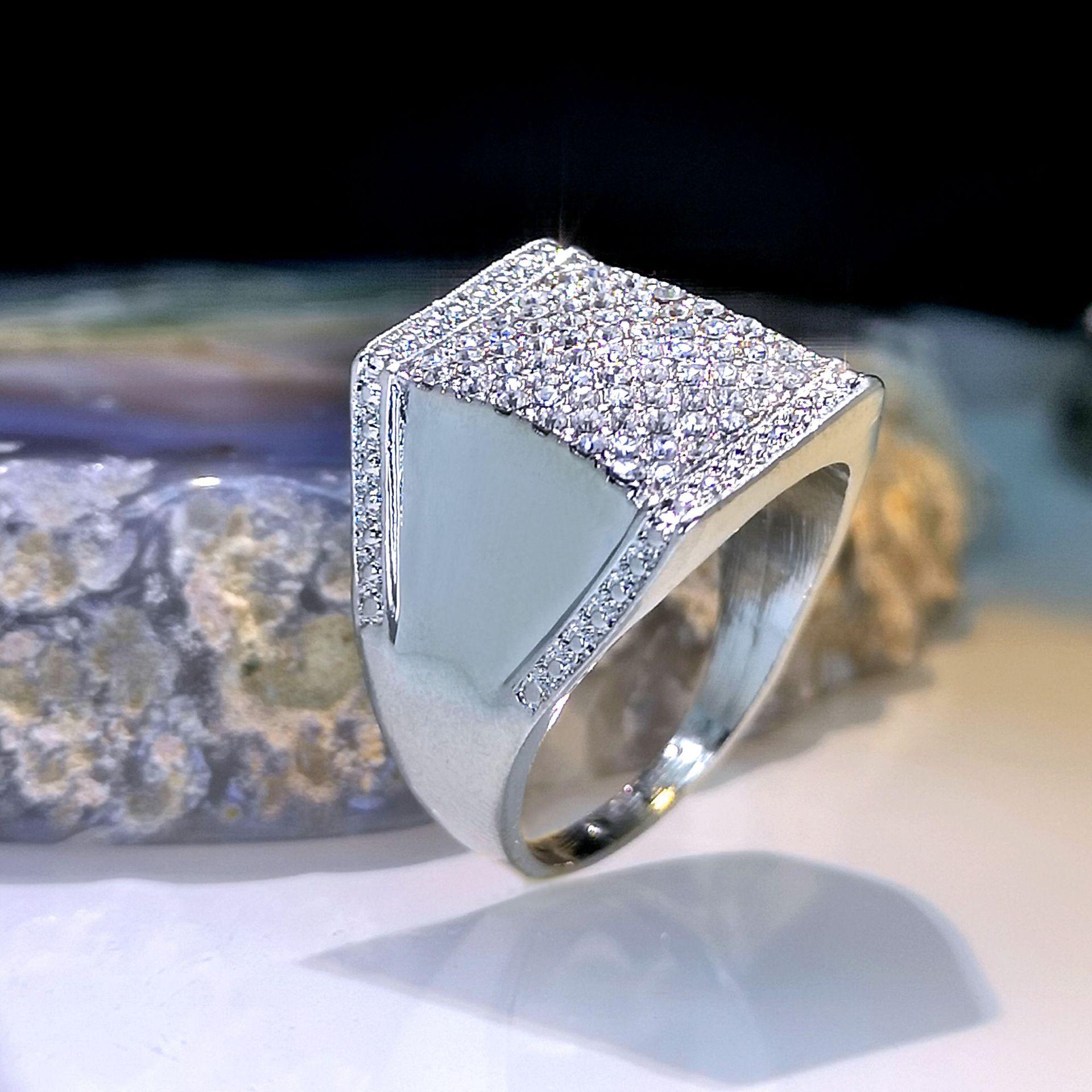 2023 nuevo TEMU comercio exterior más vendido estilo literario retro corte cuadrado taladro de punta circonita micro incrustada anillo para hombre