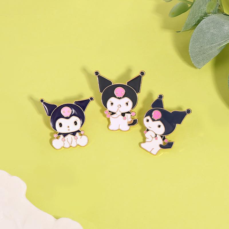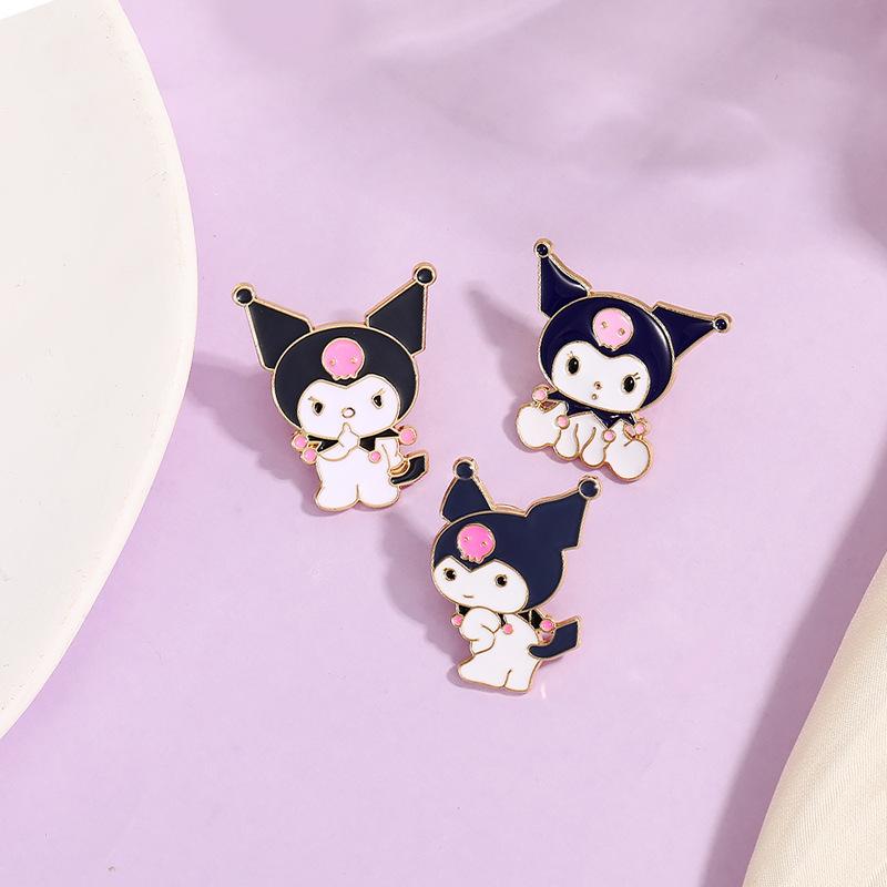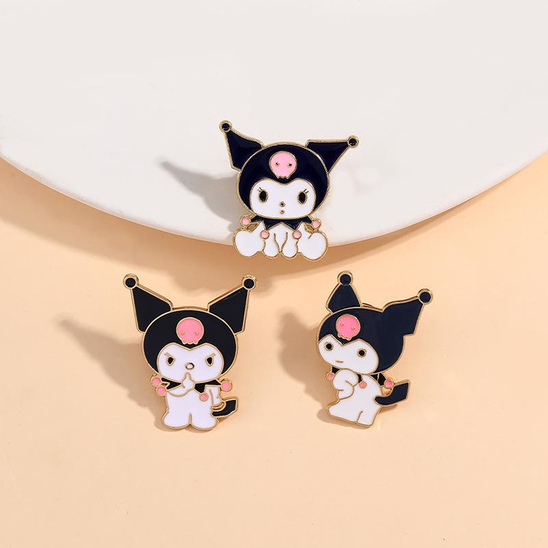 Broche de gato de la serie Coolomi de Sanrio con bonitas joyas de dibujos animados, insignia de metal japonesa simple para bolso.