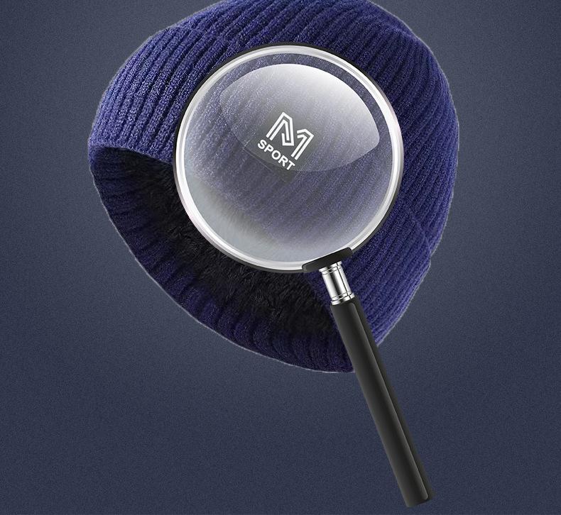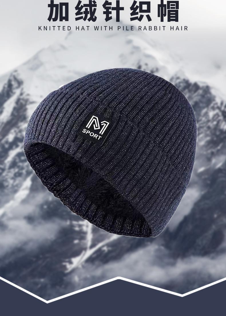 Gorro de punto para otoño e invierno, para deportes al aire libre, cálido gorro Baotou con dobladillo de terciopelo, color liso, con etiqueta de letras sencilla