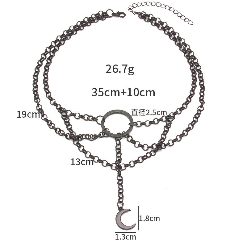 Black Ring Moon Pendant Multi-layer Clavicle Chain
