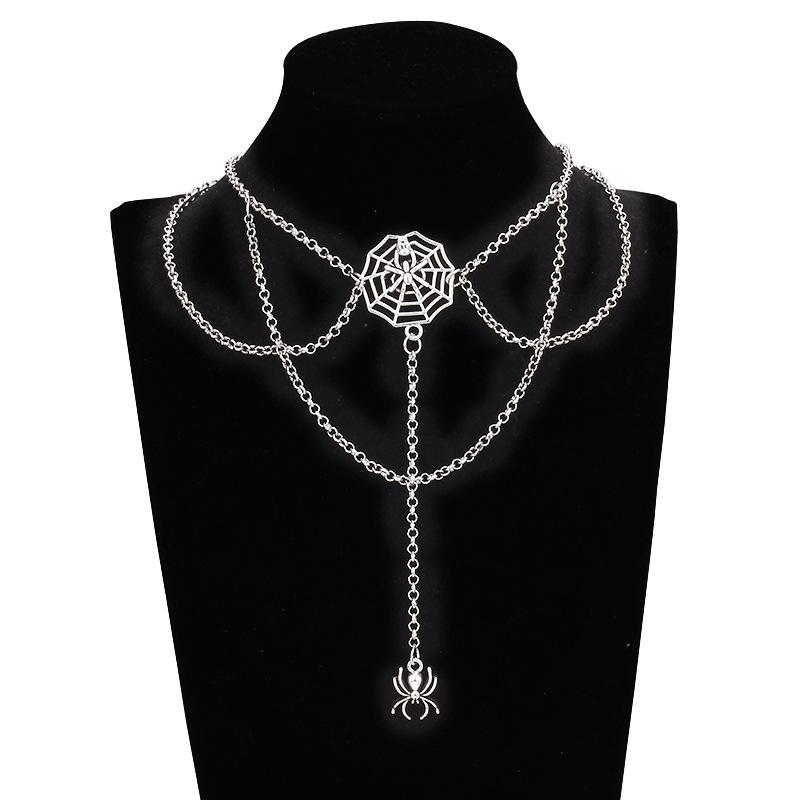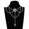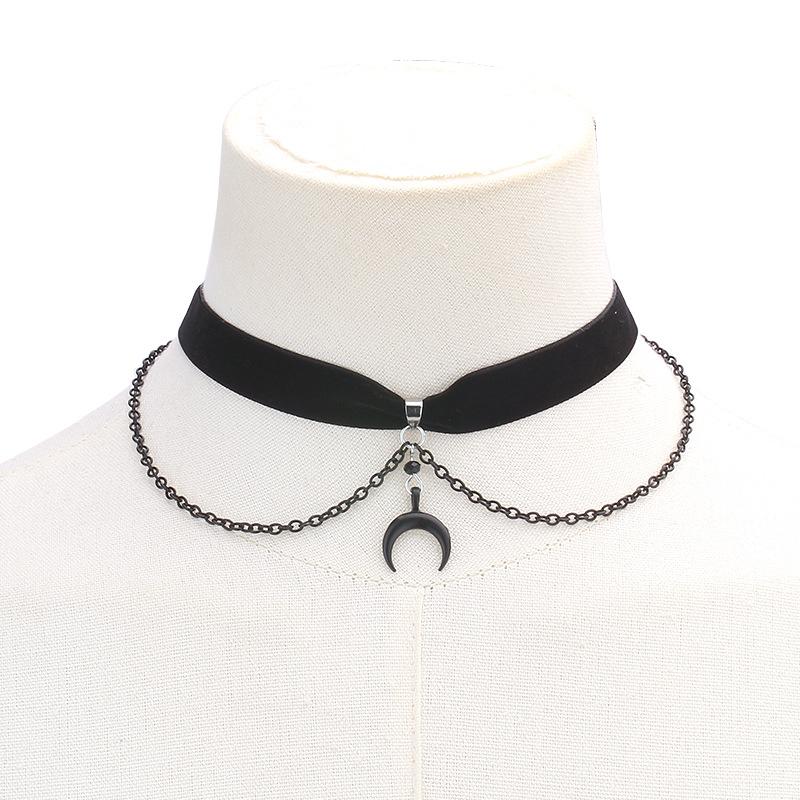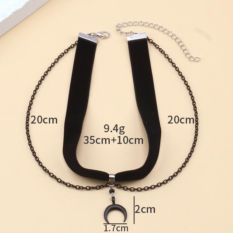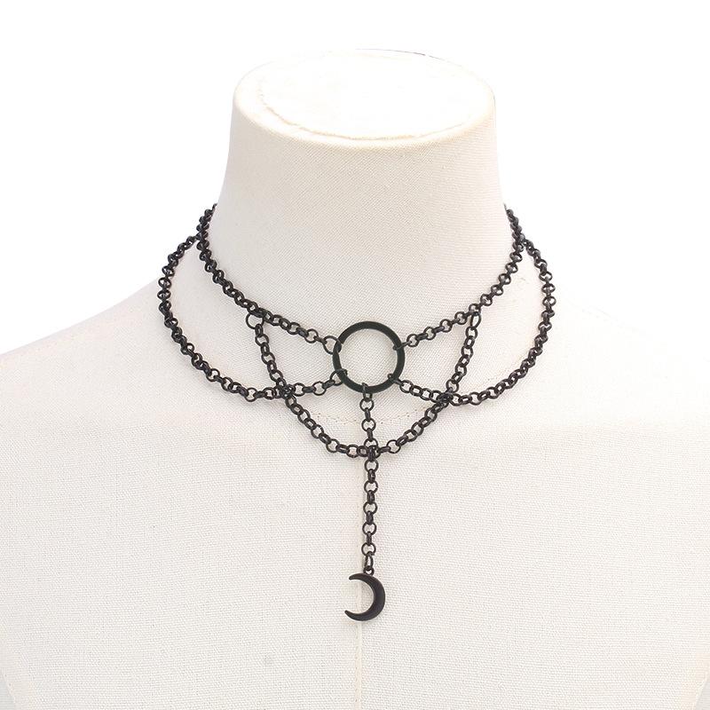 Spider web multilayer necklace, Black Ring Moon Pendant Multi-layer Clavicle Chain, velvet belt moon pendant c...