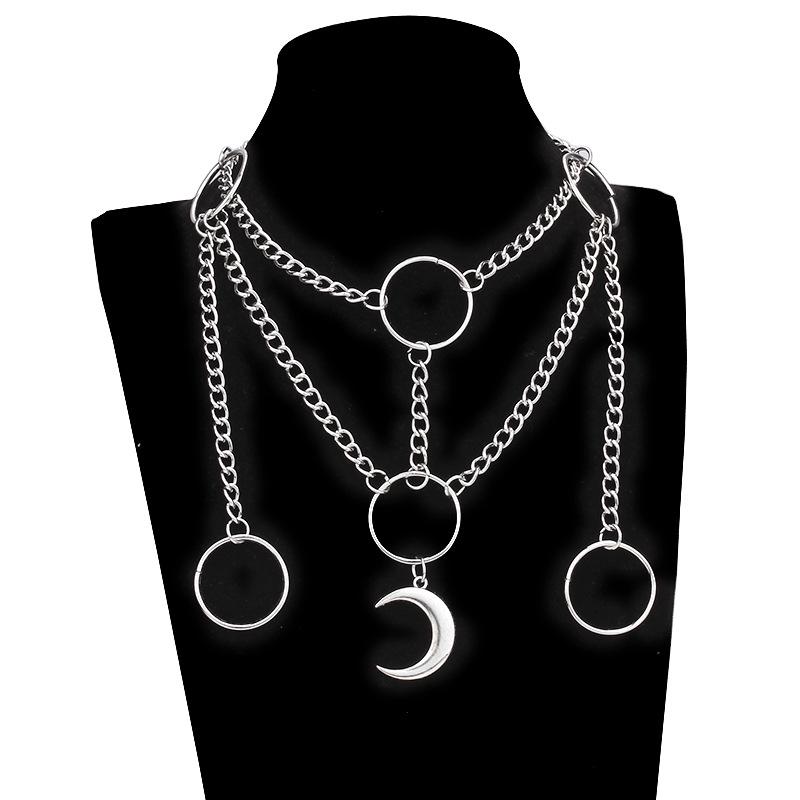 Joyería transfronteriza europea y americana Estilo Harajuku punk media luna cadena clavícula personalidad collar de borlas multicapa