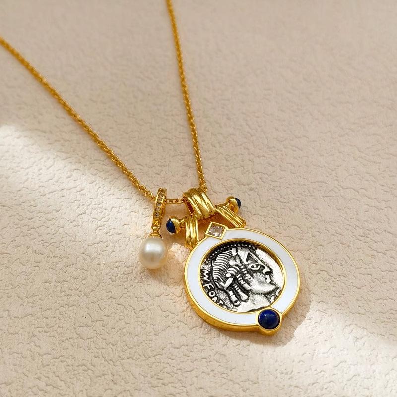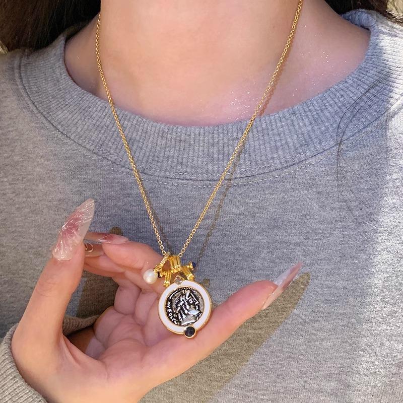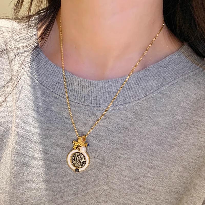 Collar de lujo con luz de perla y retrato de plata esterlina s925 retro europeo y americano para mujer, cadena de clavícula de alta calidad a juego exquisita y de moda