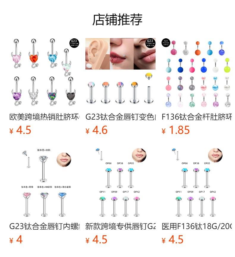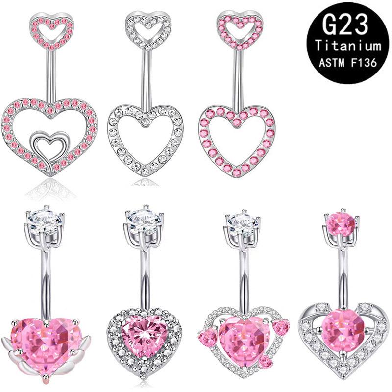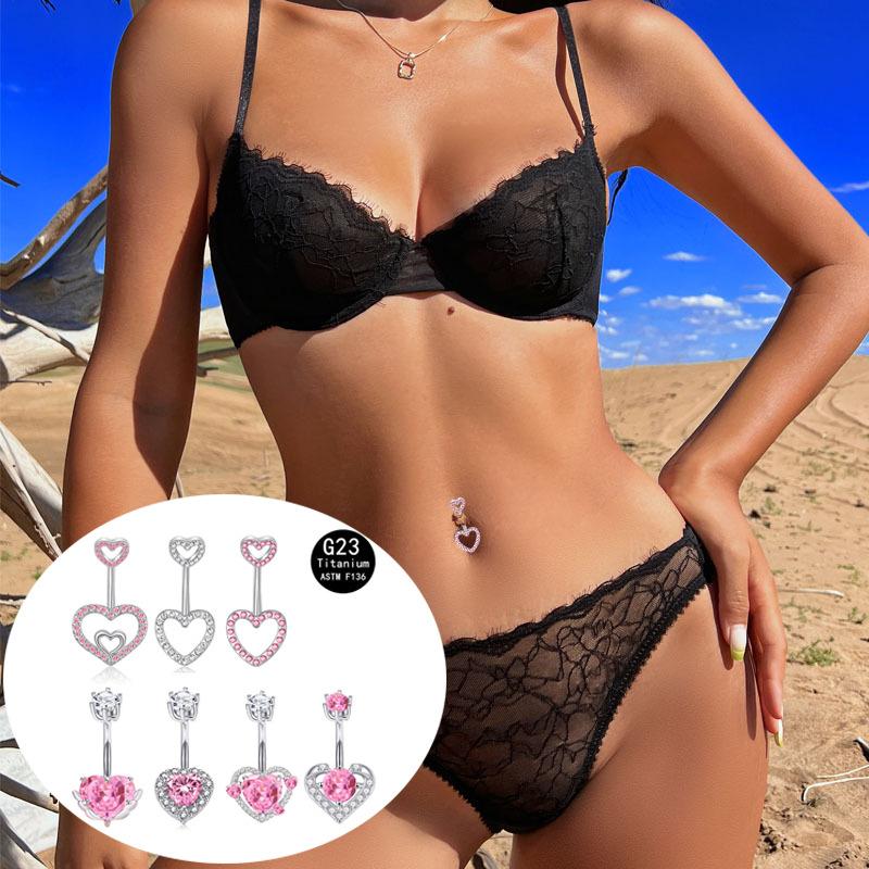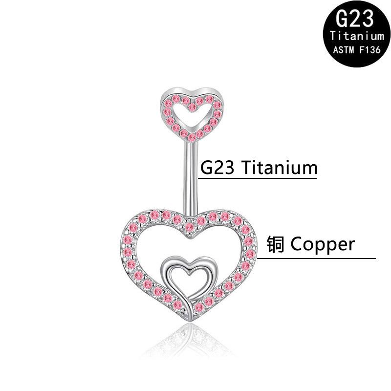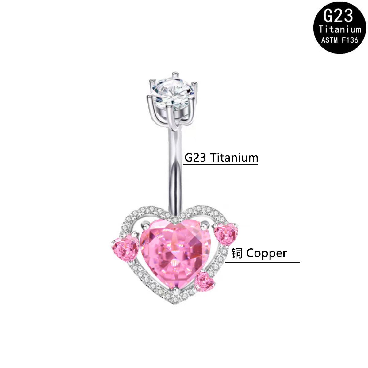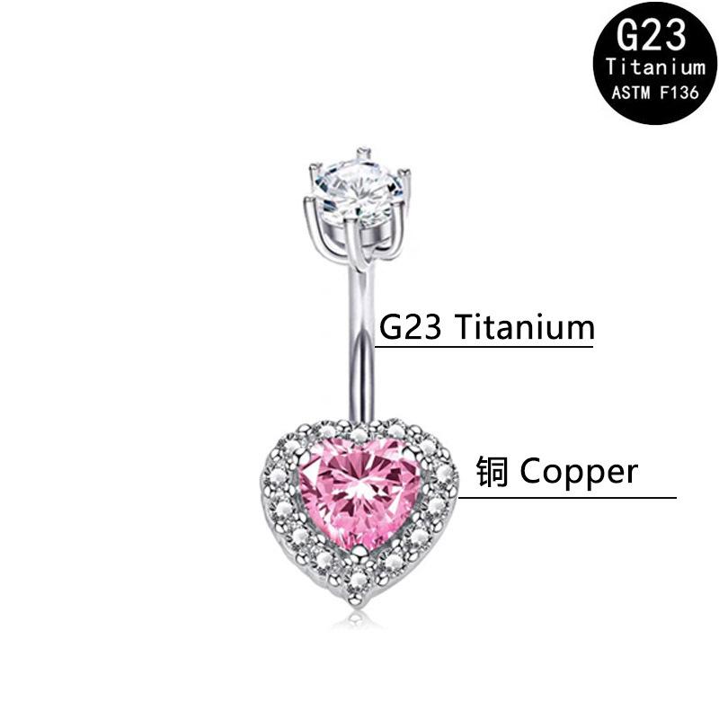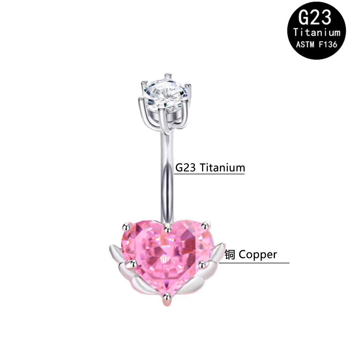 Piercing para ombligo con forma de corazón de melocotón y diamante, G23, hebilla de titanio, joyería de gran venta transfronteriza en Amazon.