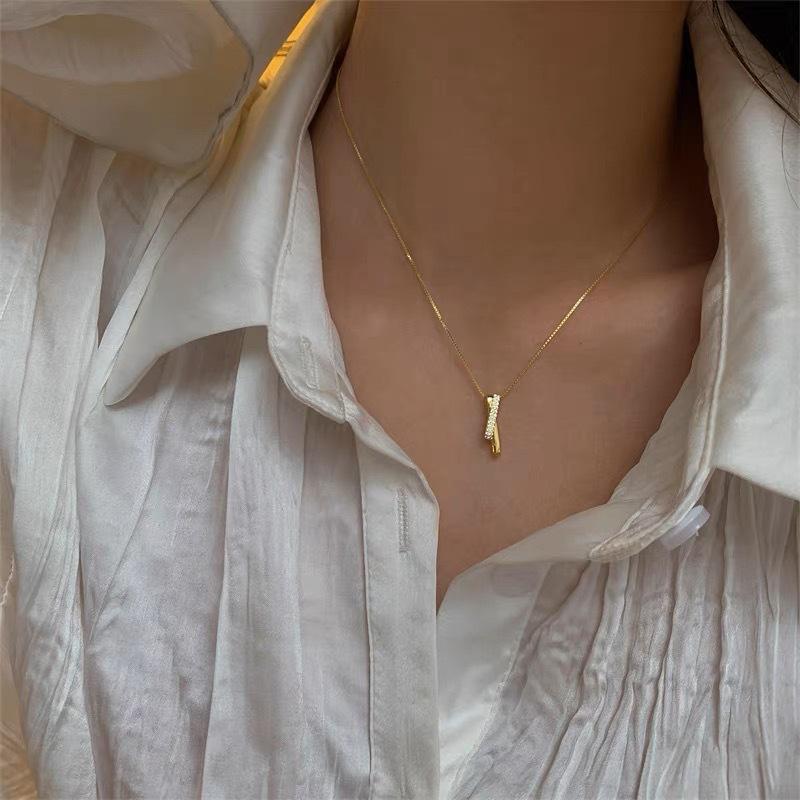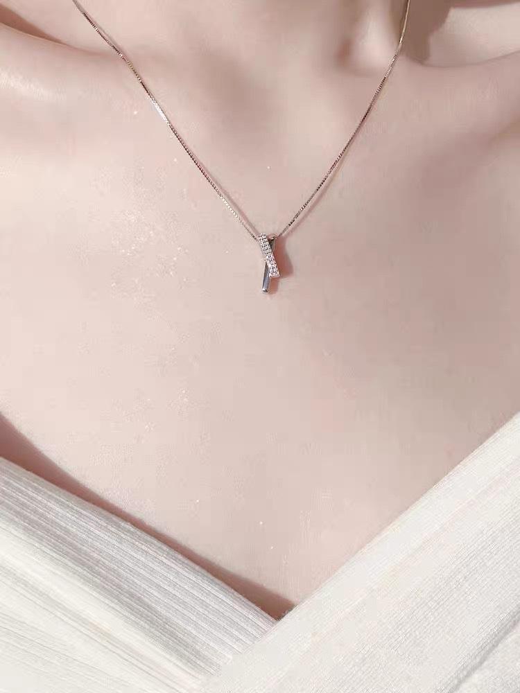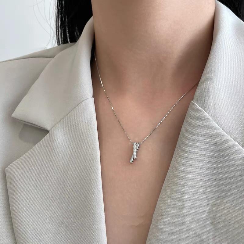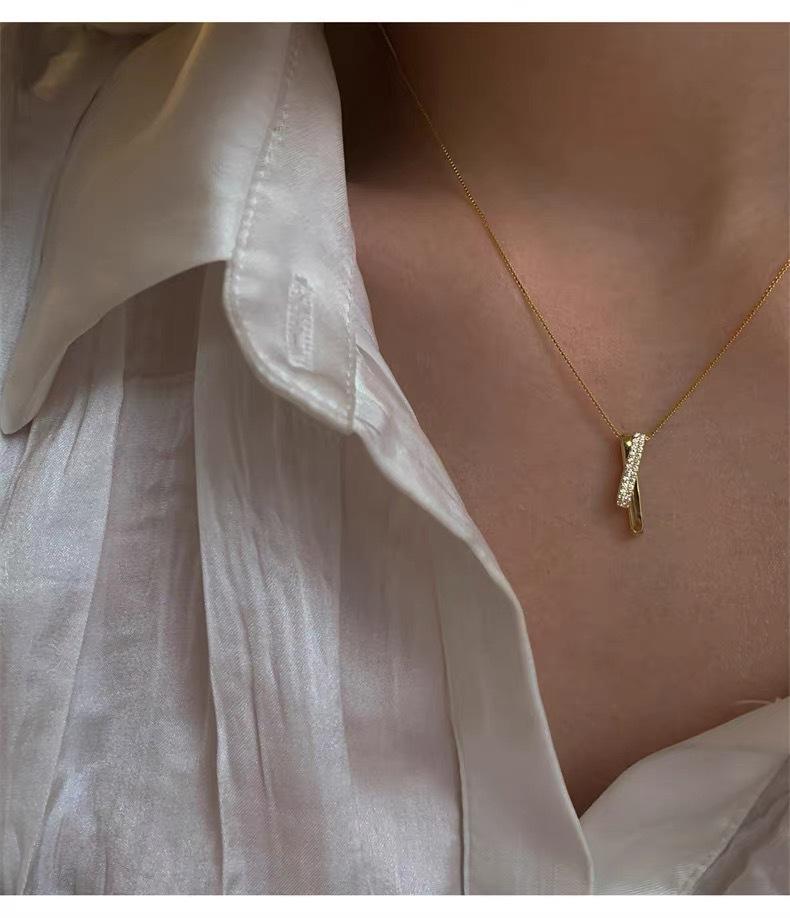 Collar de línea geométrica para mujer, diseño de nicho, estilo coreano, colgante de cruz simple, cadena de clavícula, estilo ins, temperamento que combina con todo.