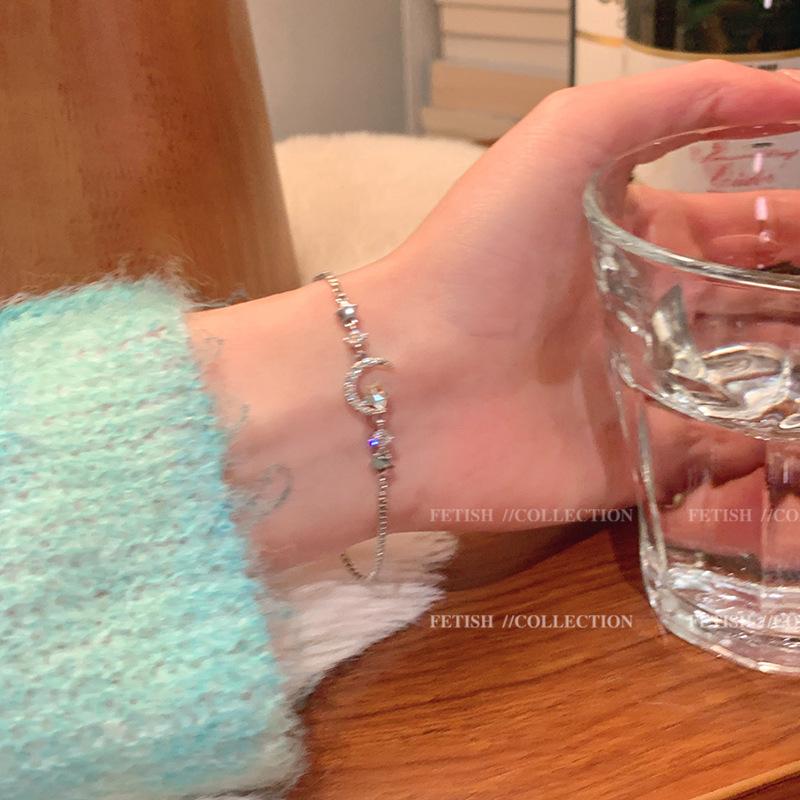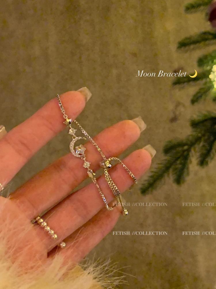 Pulsera de estrella y luna de circón estilo ins para niñas, lujosa y ligera, exquisita pulsera de alta gama que se puede extraer con temperamento, joyería de mano.