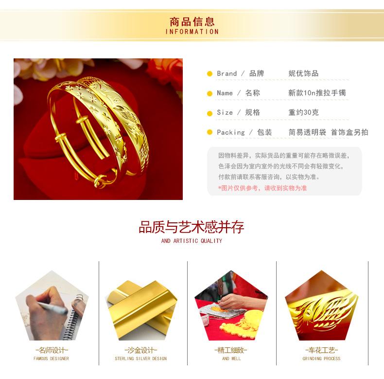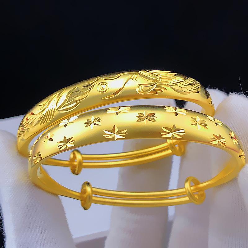 Joyería Niyou pulsera push-pull de dragón y fénix de oro arena para mujer, estrellas, flor de ciruelo, pulsera chapada en oro vietnamita al por mayor
