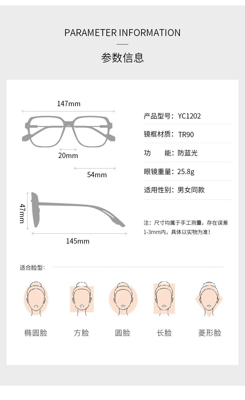 TR1202 nuevo armazón de gafas estilo coreano luz anti-azul con miopía moda celebridad de internet cara sencilla montura grande GM AA