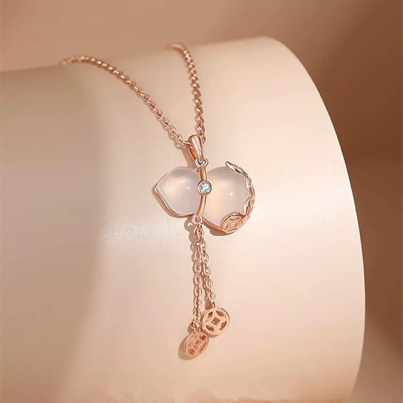 Collar de calabaza de calcedonia blanca, ligero, de lujo, nicho, gran sentido del dinero, calabaza de la fortuna, cadena de clavícula, regalo de cumpleaños para novia